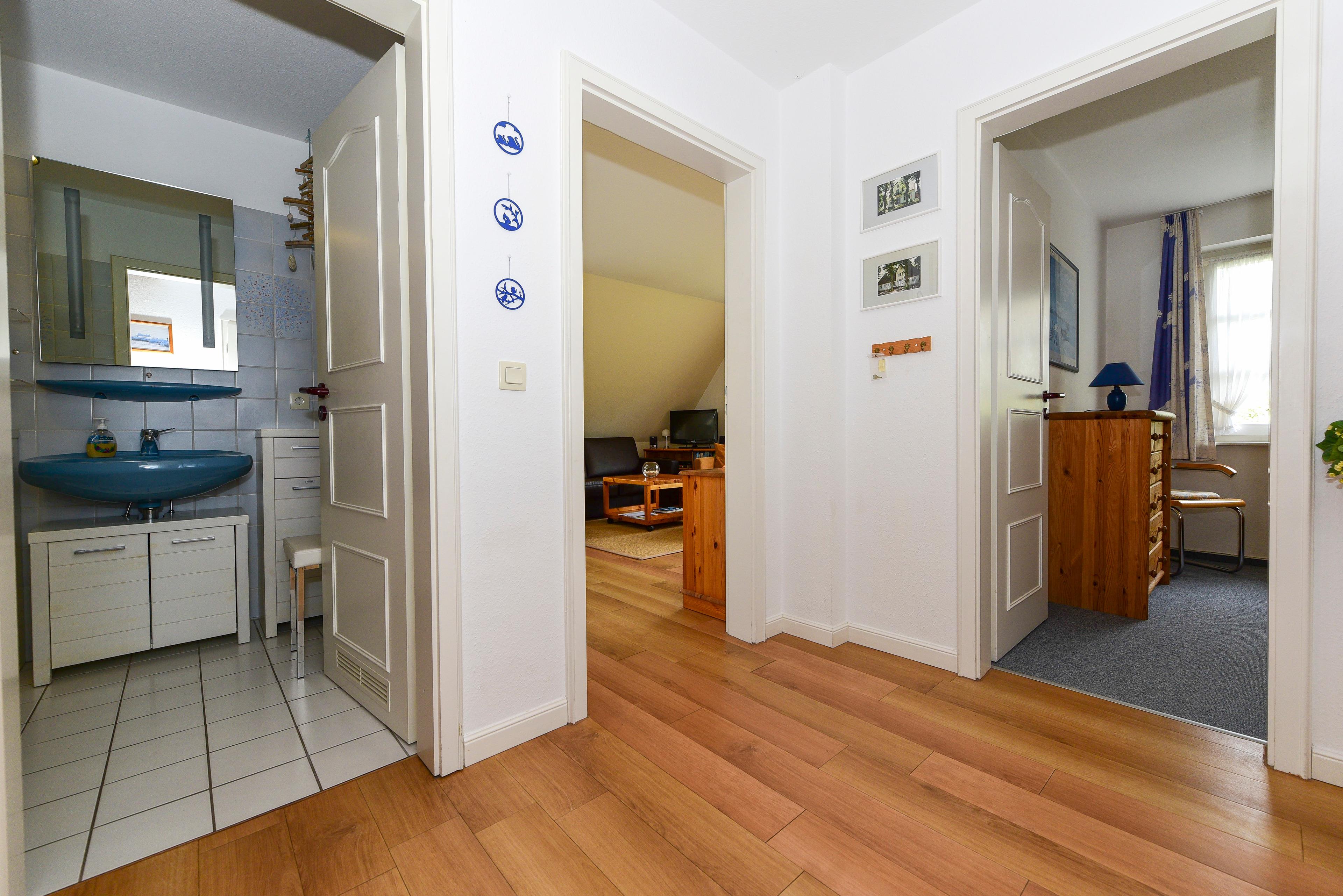 Hier erwartet Sie eine gemütliche Ferienwohnung im Obergeschoss des Hauses, nur wenige Schritte vom Strand entfernt. Starten Sie Ihren Tag mit einem Besuch beim Bäcker oder einem Spaziergang zum nahegelegenen Lebensmittelladen.