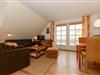 Im Wohnzimmer werden Sie von einer warmen Atmosphäre empfangen. Hier laden eine bequeme Couchgarnitur und ein Flachbildschirm zum Entspannen ein - perfekt für gemütliche Abende nach einem ereignisreichen Tag.