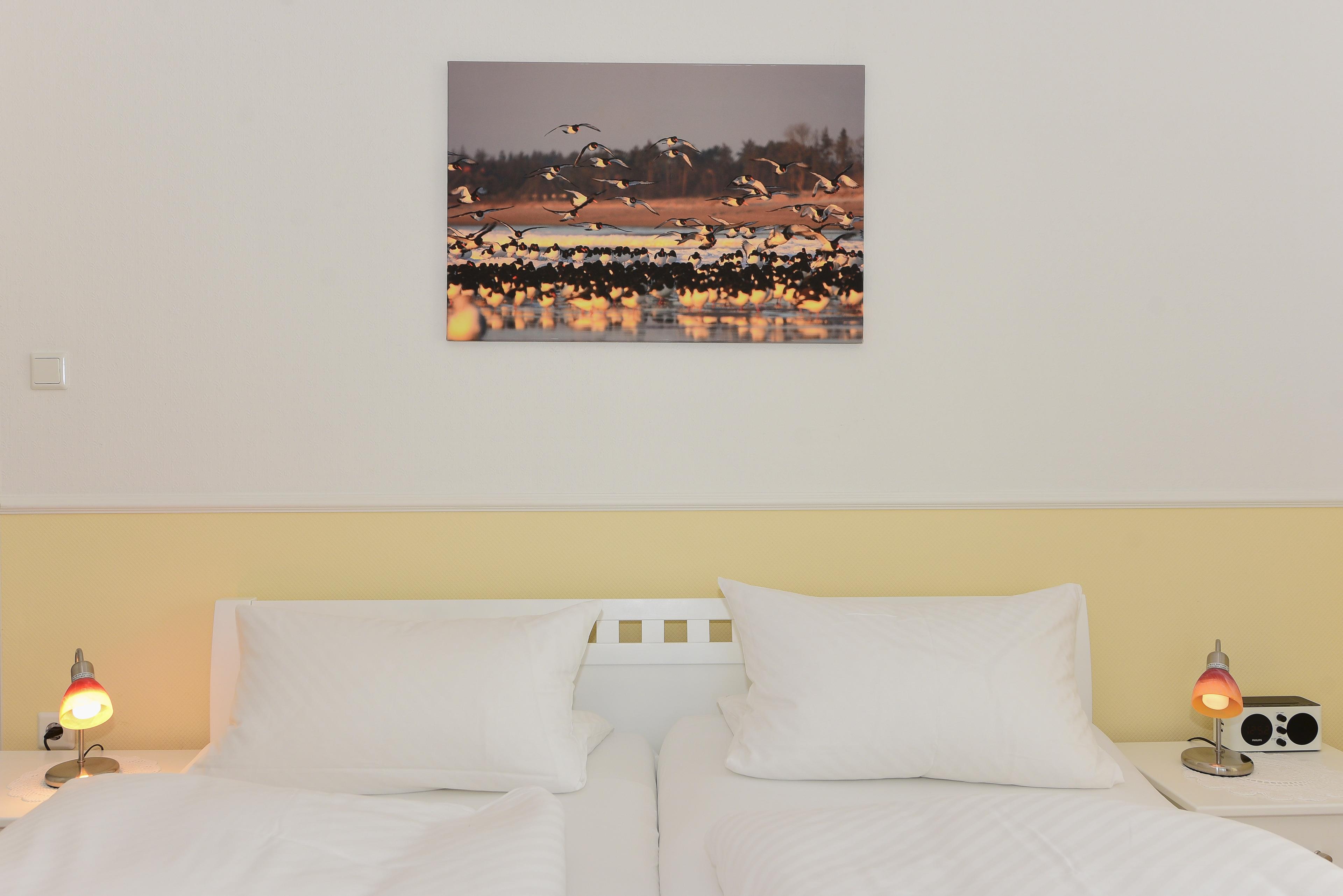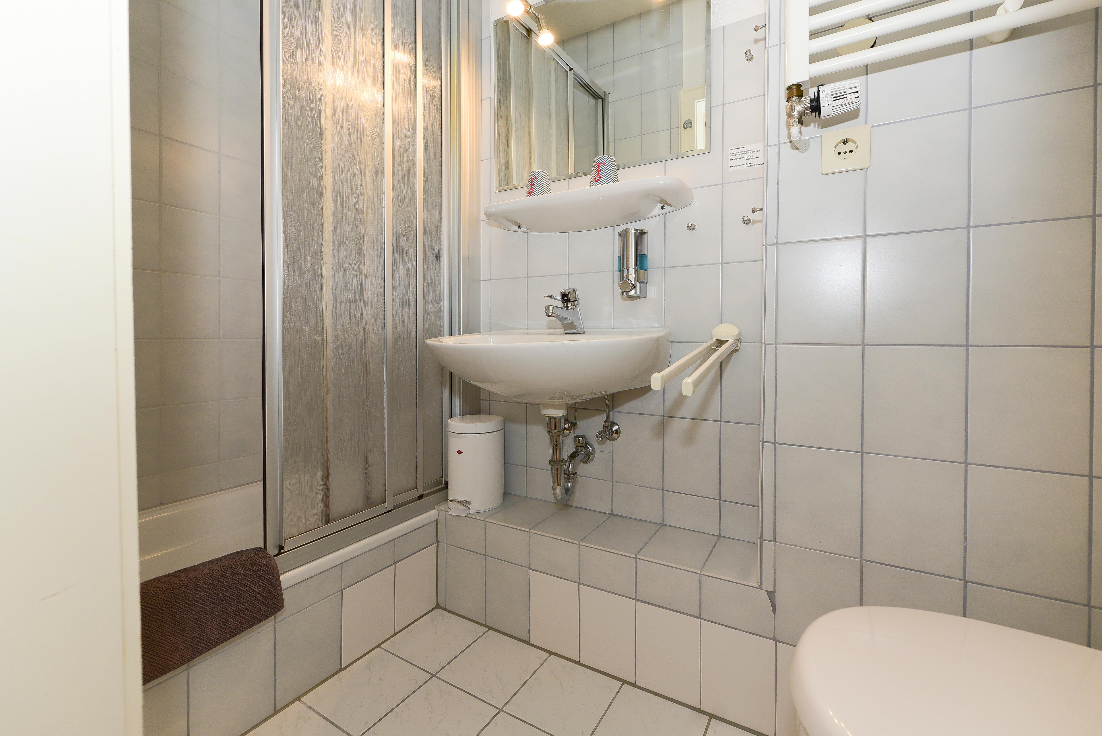 In diesem Doppelzimmer finden Sie ein bequemes Bett und ein eigenes Duschbad, das Ihnen erholsame Nächte garantiert. Die ruhige Atmosphäre sorgt für die perfekte Erholung nach einem langen Tag an der Nordsee.
