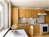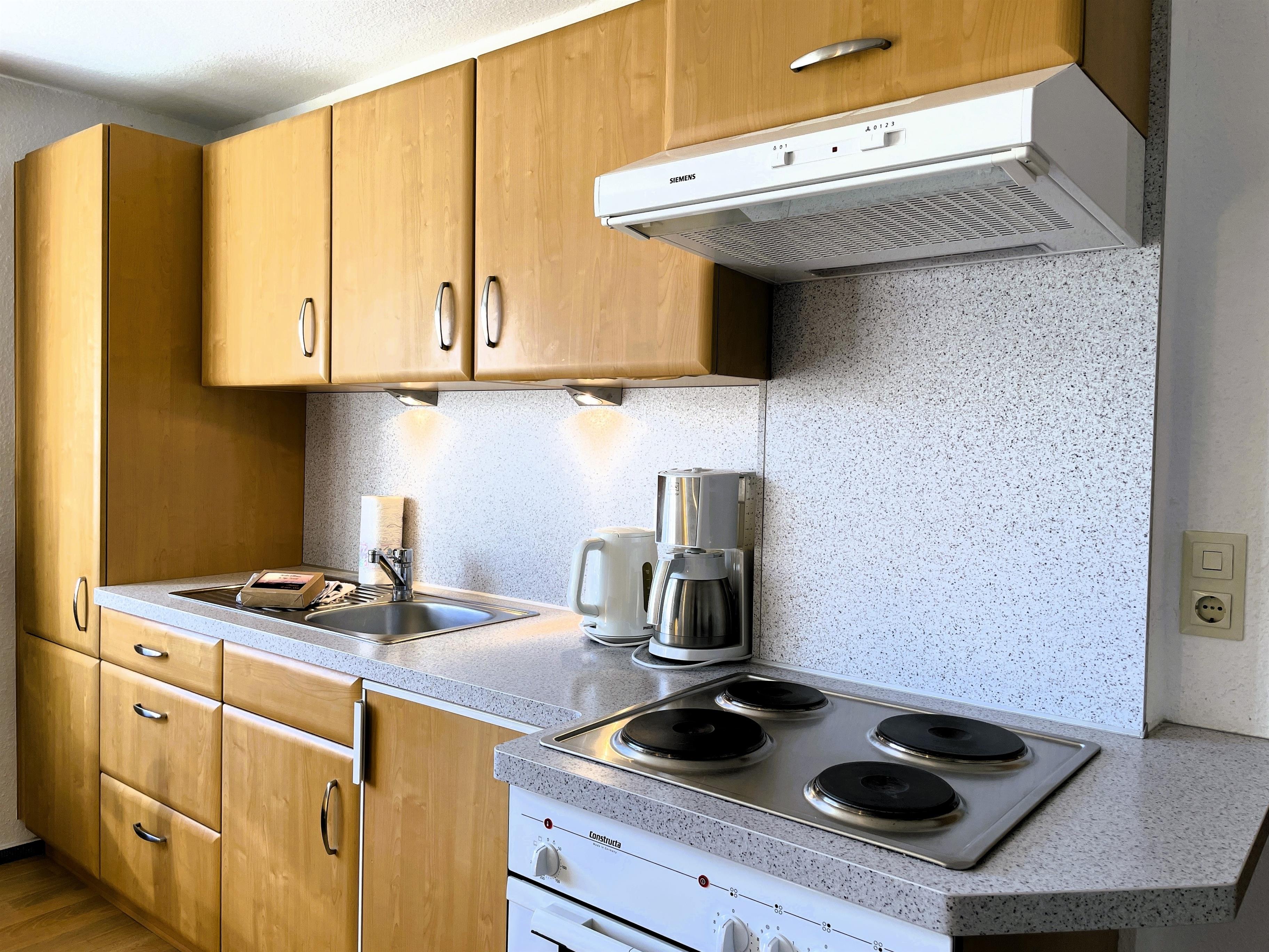 Sie verfügt über ein Schlafzimmer mit Doppelbett , ein Duschbad und ein Wohnzimmer (Schlafcouch 100 x 185 cm) mit integrierter, vollausgestatteter Küchenzeile. Das zur Wohnung gehörenden WC befindet sich im wohnungseigenen Flur.