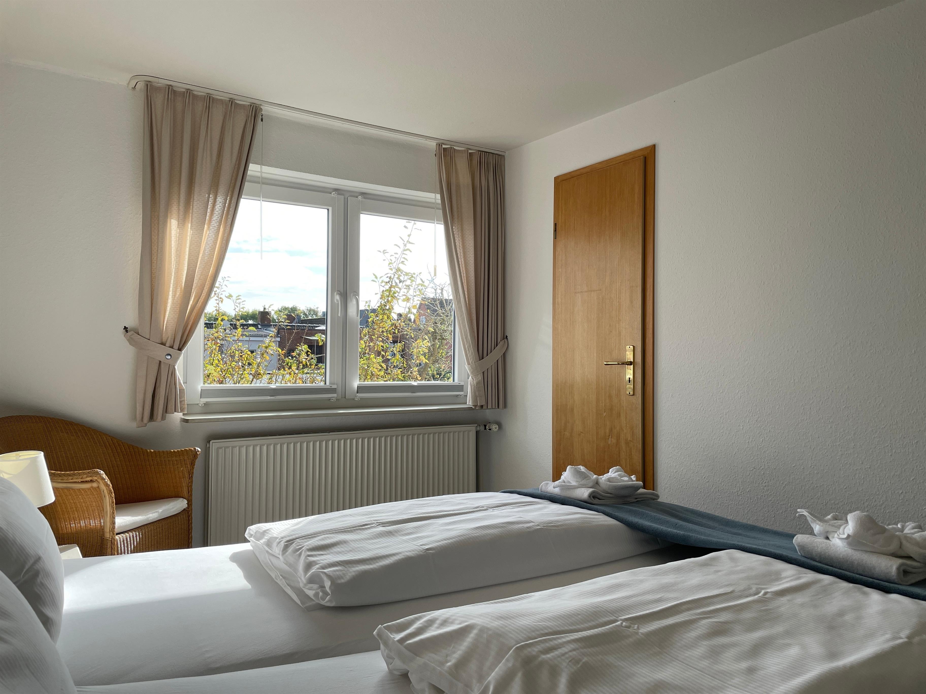 Die Wohnung Seeschwalbe für ein bis drei Personen befindet sich in einen Seitenstraße in der Fußgängerzone in der 1. Etage.
