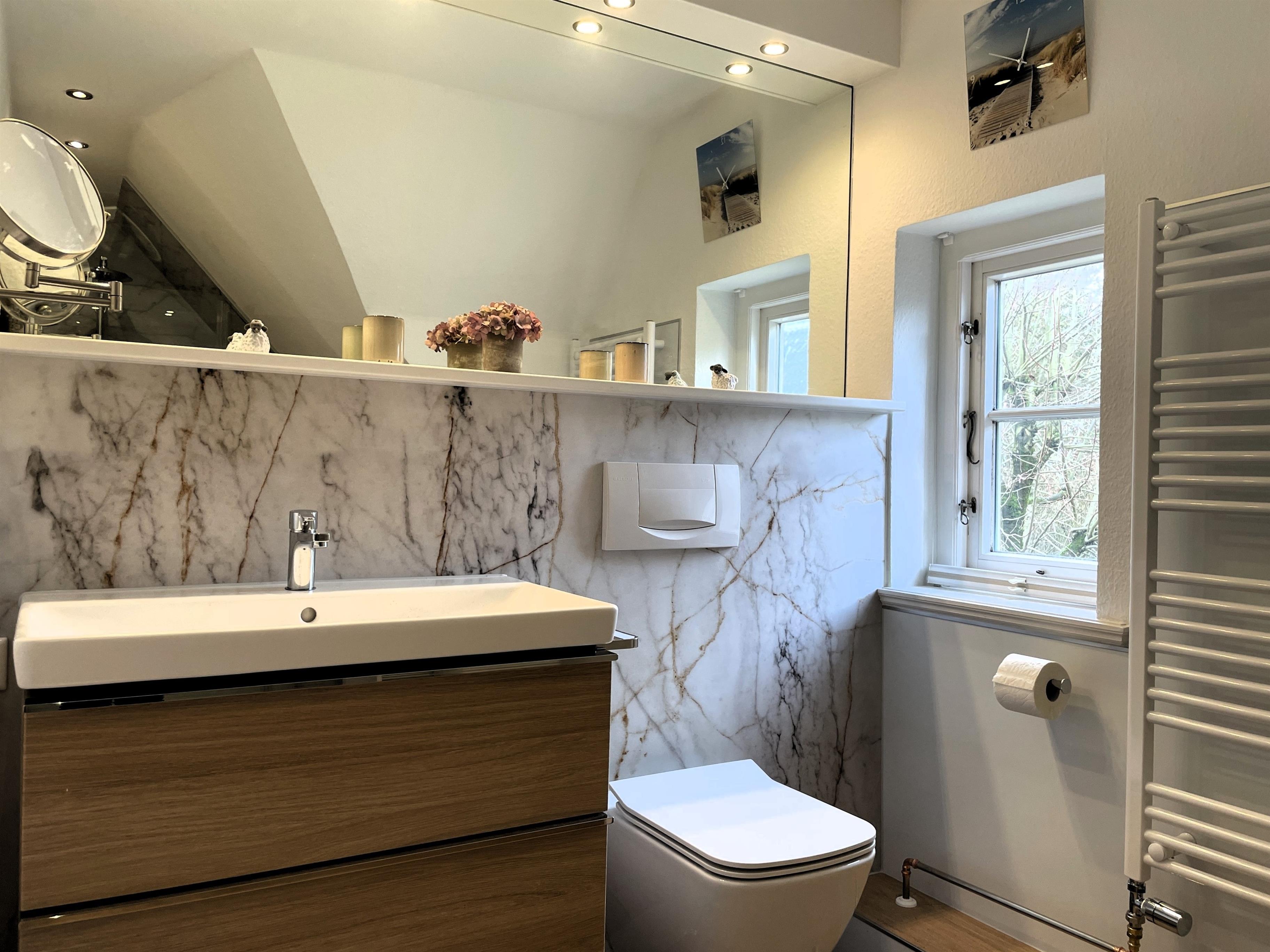 Gerne sind wir Ihre Gastgeber in unserer im Frühjahr 2022 umfassend renovierten Haushälfte Green Eilun 8 in der Strandstraße 8 in Wyk auf Föhr. Auf ca.75 qm bieten wir Ihnen eine helle und freundlich gestaltete Haushälfte verteilt über 4 Etagen. Über eine gut begehbare Wendeltreppe erreichen Sie in alle Räume. Das gesamte Haus ist ohne Teppichboden und der Wohnbereich sowie die Bäder verfügen über eine Fußbodenheizung.
