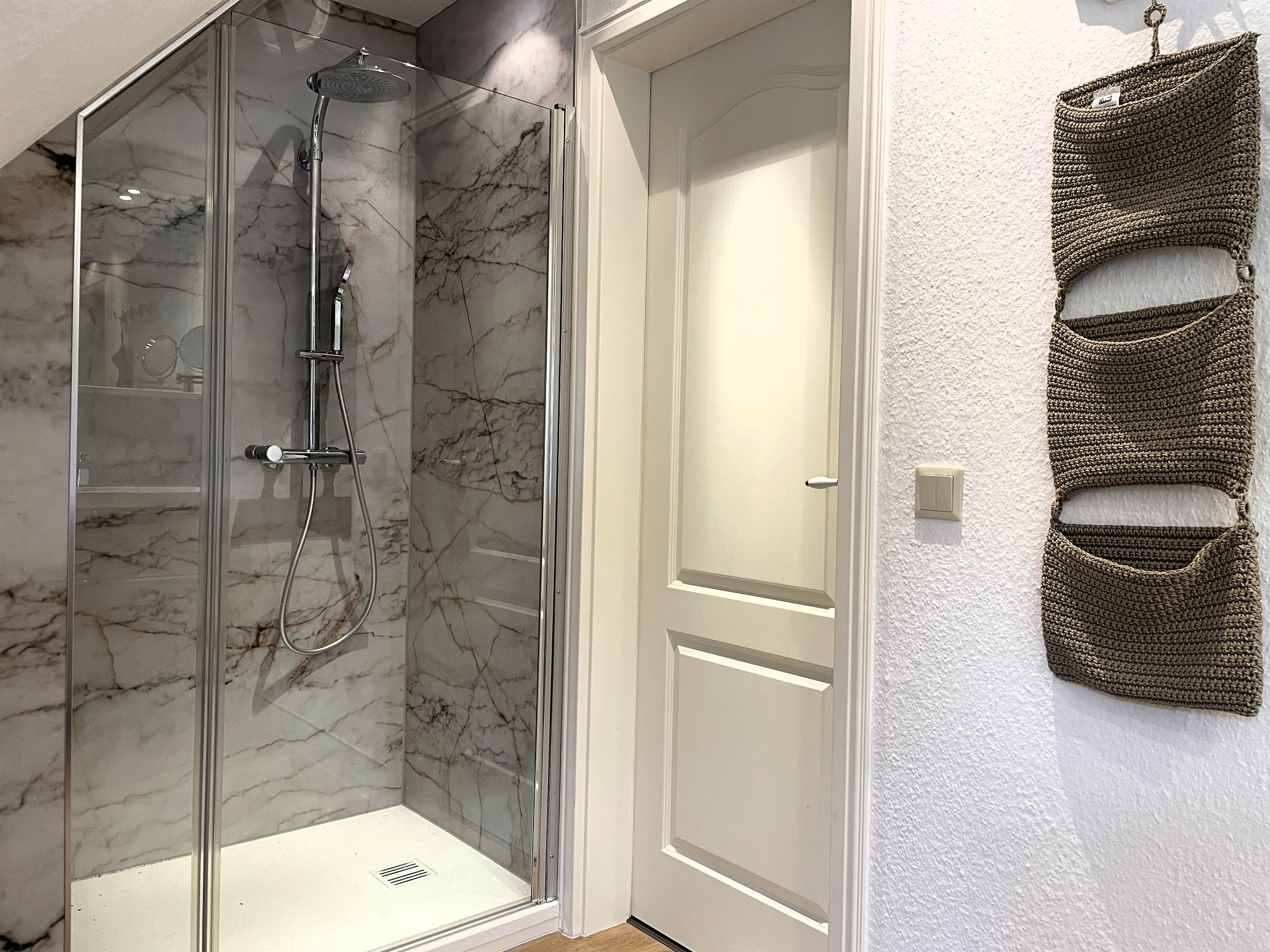Vom Wohnzimmer gelangen Sie direkt auf die schöne Südterrasse, die im Sommer erholsame Momente nach einem erlebnisreichen Urlaubstag verspricht. Im Obergeschoss befinden sich das geräumige Bad (renoviert in 2025) mit einer flachen Dusche und Fenster sowie ein Schlafzimmer mit Doppelbett (160 x200 cm) und Kleiderschrank. Besonders Kinder lieben die zwei Einzelbetten (90x200cm) im behaglichen Dachgeschoss, die Ecke an Ecke stehen und durch Schutzgitter auch Eltern ein gutes Gefühl geben. Im Untergeschoss befinden sich das dritte Schlafzimmer mit Boxspringdoppelbett (180 x200 cm), Kleiderschrank und einem zusätzlichem TV sowie ein kleines Duschbad und der Hauswirtschaftsraum. Die Waschmaschine und der Trockner stehen Ihnen zur kostenfreien Nutzung zur Verfügung.