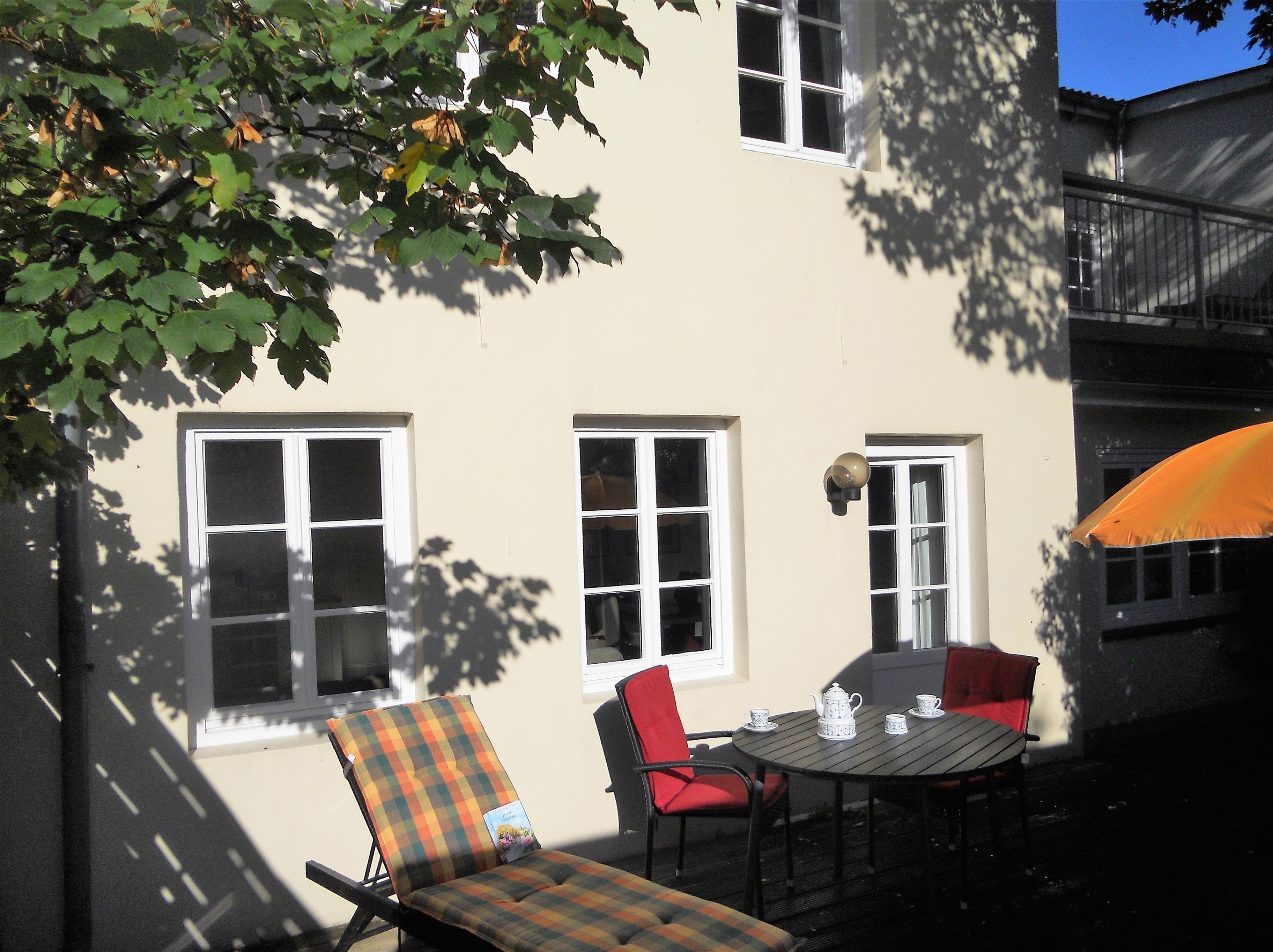 Das Galeriehaus ist ein historisches Gebäude von Wyk, welches außen immer noch den einstigen Charme von vergangenen Zeiten aufweist, doch innerhalb der Fassade umgebaut und renoviert wurde. Jetzt befinden sich im Galeriehaus 4 Wohnungen für je 2 Personen. Die zentrale Lage zur Innenstadt, dem Strand und der Nordsee, dem Meerwasserwellenbad Aqua Föhr und zu den Einkaufläden machen unsere Wohnungen im Galeriehaus sehr beliebt. Die Erdgeschoßwohnung PIcasso lädt Sie und auf Wunsch Ihren Hund zu herrlichen Urlaubstagen ein. Der gemütliche Wohnraum, die Essecke und die Küche sind harmonisch aufeinander abgestimmt und das offene Wohnkonzept verleiht der Wohnung seinen besonderen Charme. Liebevolle Accessoires, der Flachbild-TV, eine Stereoanlange, die einladende Essecke mit Freischwingerstühlen und die gut ausgestattete Küche mit Ceranfeld-Backofen, Dunstabzugshaube, Kühlschrank mit Gefrierfach, Kaffeemaschine (Senseo Duo) und Wasserkocher sorgen dafür, dass man sich sogleich wohlfühlt. Vom Wohnzimmer aus gehen Sie auf die Terrasse, die sich geschützt liegend im Hinterhof befindet und im Sommer mit Gartenmöbeln bestückt ist ( ca. von April bis September). Das Schlafzimmer mit Boxspringbett, Spiegel und geräumigen Kleiderschrank wirkt behaglich. Das modern gestaltete Bad ist ansprechend und funktional.