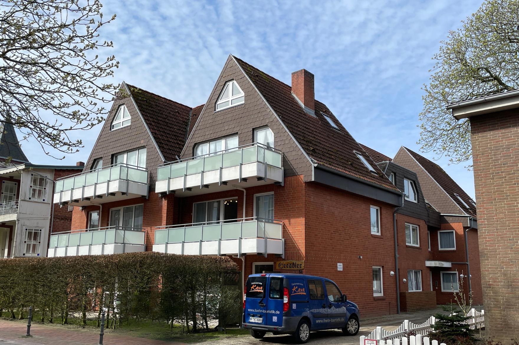 Die Ferienhausanlage Seeadler befindet sich in der verkehrsberuhigten Zone am Sandwall nur wenige Meter von Cafés, Restaurants, den kleinen Föhrer Geschäften und natürlich dem Strand und dem Meer entfernt.