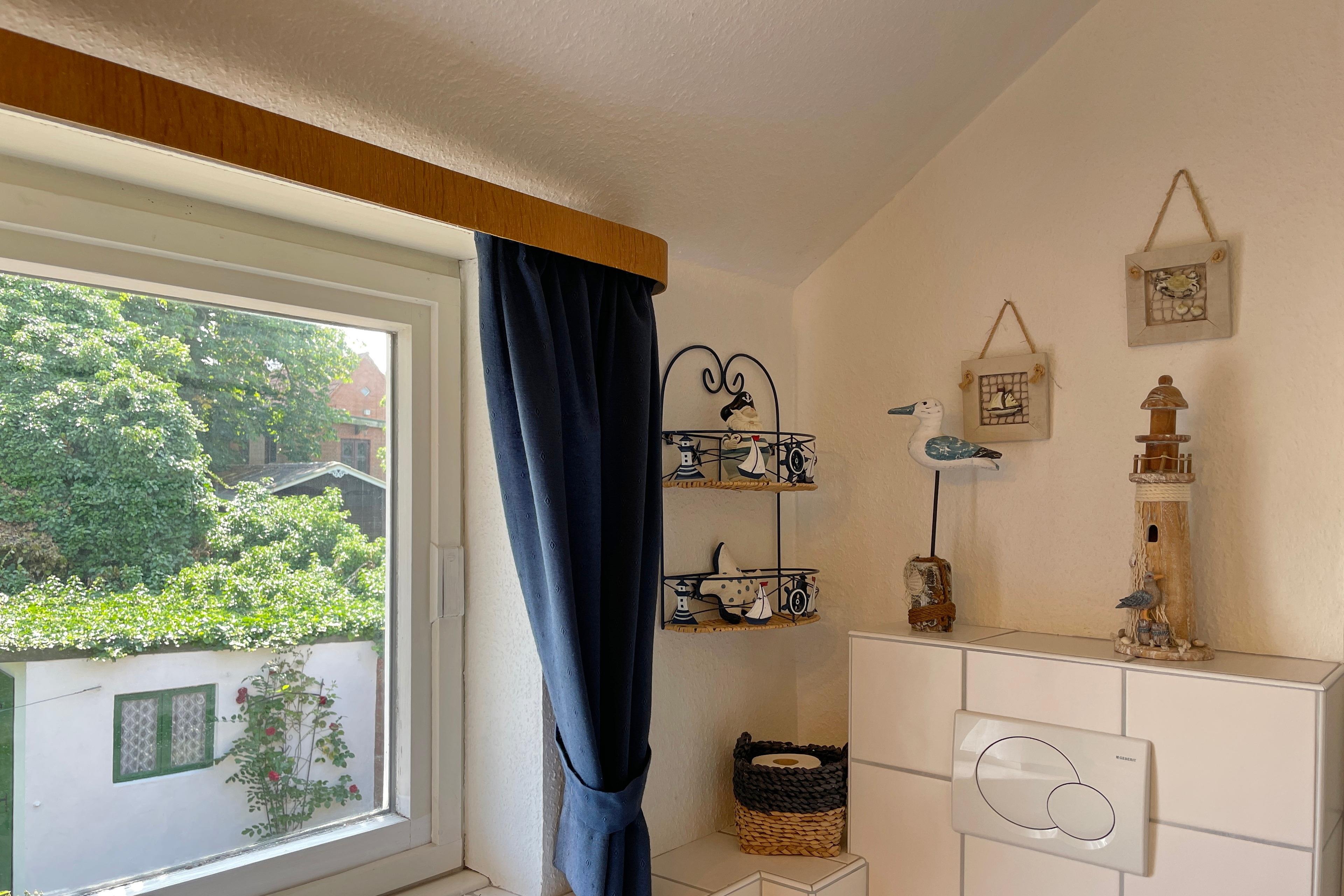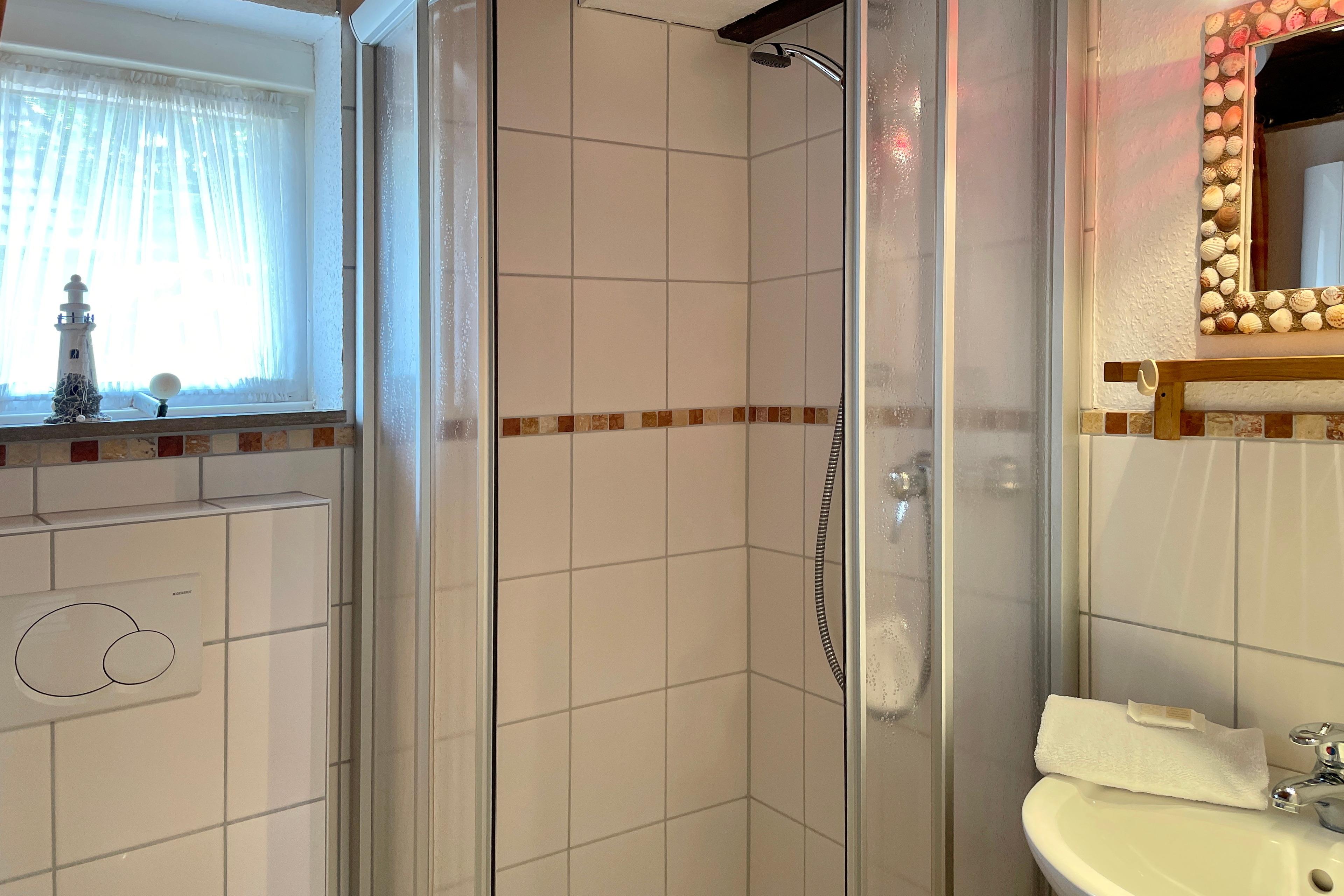 In der Hafenstasse im Herzen von Wyk liegt das gemütliche Haus Stamp, nur wenige Minuten vom Strand und vom Hafen entfernt. Alle wichtigen Versorgungseinrichtungen wie Bäckereien und Supermärkte befinden sich in unmittelbarer Umgebung, ebenso wie die Fußgängerzone und die Strandpromenade mit Boutiquen, Cafés, Kino, Restaurants und vielem mehr! Das Domizil Stamp ist ein reetgedecktes Friesenhaus für 6 Personen und heißt Sie mit seinem friesischen Charme Willkommen. Erleben Sie die friesische Gemütlichkeit und Gastfreundschaft in Ihrem Domizil. Im Erdgeschoss befinden sich 2 Schlafräume, eines mit Doppelbett (140 x 200 cm), das andere mit 2 Einzelbetten (80 x200 cm) und einem zusätzlichem Waschbecken. Das gemütliche Wohnzimmer mit WLAN, Musikanlage und Flachbild-TV lädt zum Entspannen ein und wirkt behaglich. Die Wohnküche mit Essplatz, Geschirrspüler, Backofen, Mikrowelle, Kaffeemaschine und vielem mehr führt Sie auf die Terrasse und den Garten, wo Sie herrliche Sonnenstunden im Sommer verbringen können. Eine kleine Besonderheit stellt die altfriesische Durchreiche ins Wohnzimmer dar. Auf beiden Etagen befindet sich ein Duschbad, das funktional und liebevoll gestaltet wurde. Das dritte Schlafzimmer mit einem Doppelbett (180 x 200cm) und einem zusätzlichem Kojenbett (80 x 180 cm) erreichen Sie über die Treppe, die zum ersten Obergeschoss führt. Hier gibt es weiterhin einen zusätzlichen Wohnraum mit einem weiteren Kojenbett (80x180cm), der sich hervorragend eignet, wenn Sie sich einmal zurückziehen möchten.