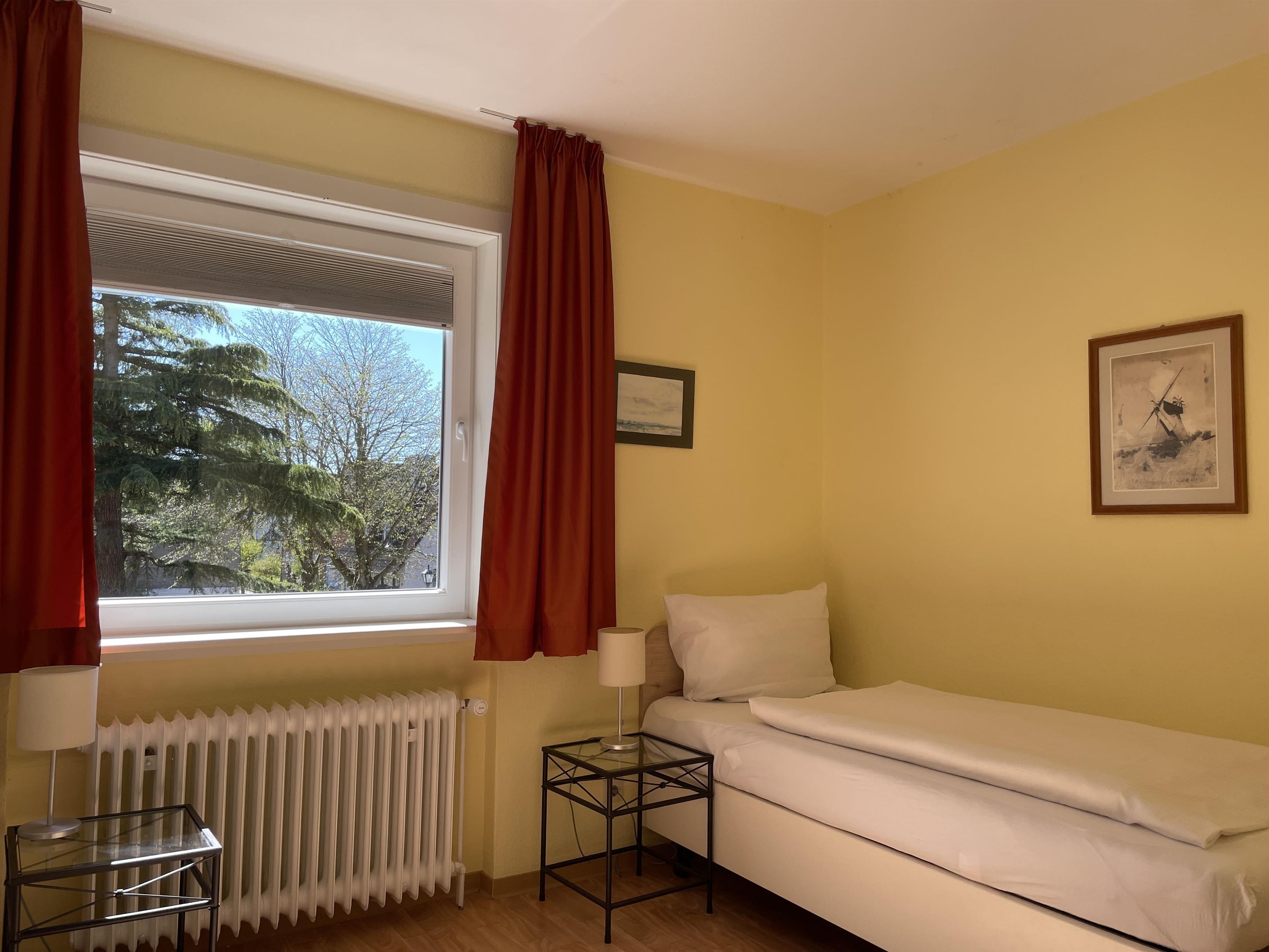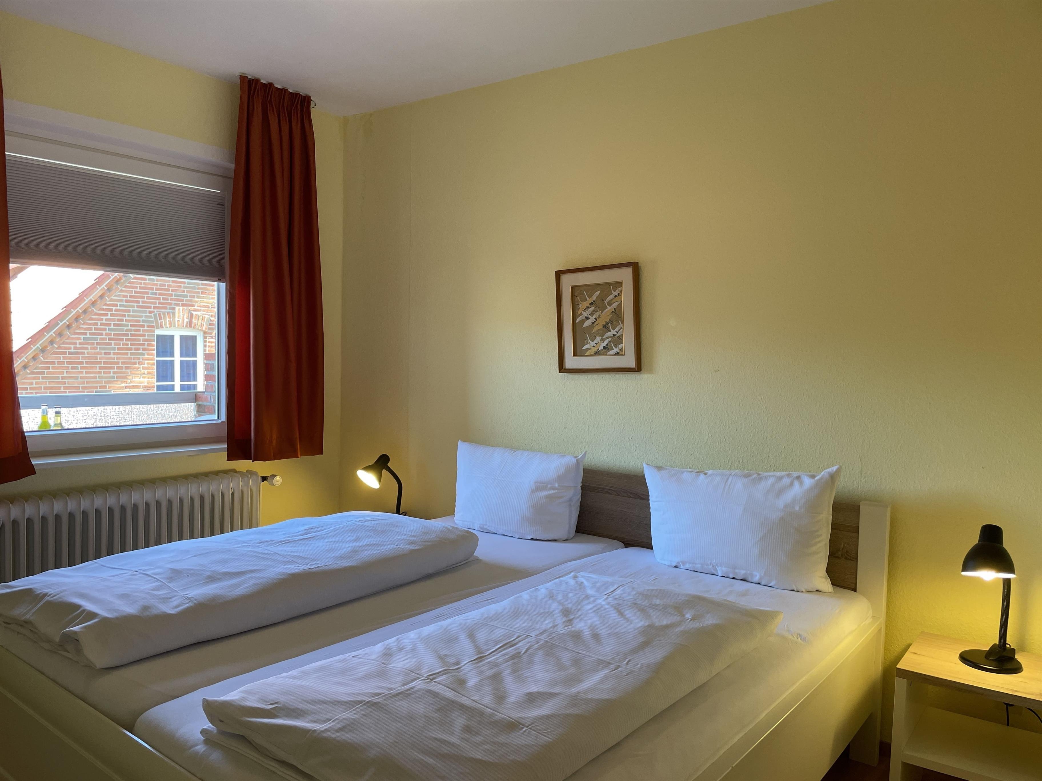 Im ersten Obergeschoß liegt die Altstadtwohnung 1 und ist mit zwei Schlafzimmern ideal geeignet für kleine Familien. So haben KInder im Schlafzimmer mit zwei Einzelbetten ihr eigenes Reich, während Eltern im Schlafzimmer mit Doppelbett auschlafen könnten. Das Bad ist mit einer Dusche ausgestattet. Das freundlich eingerichtete Wohnzimmer ist hell und geräumig, genießen Sie hier Zeit mit der ganzen Familie zusammen. Die integrierte Küchenzeile ist gut ausgestattet, so dass Sie sich wunderbar zu Hause versorgen möchte, wenn Sie nicht mal eben hinaus vor die Tür möchten, wo sich eine Vielzahl an Cafés und Restaurants befindet. Weiterhin gehört zu der Wohnung ein Südwestbalkon mit einem malerischen Blick auf die Wyker Altstadt..