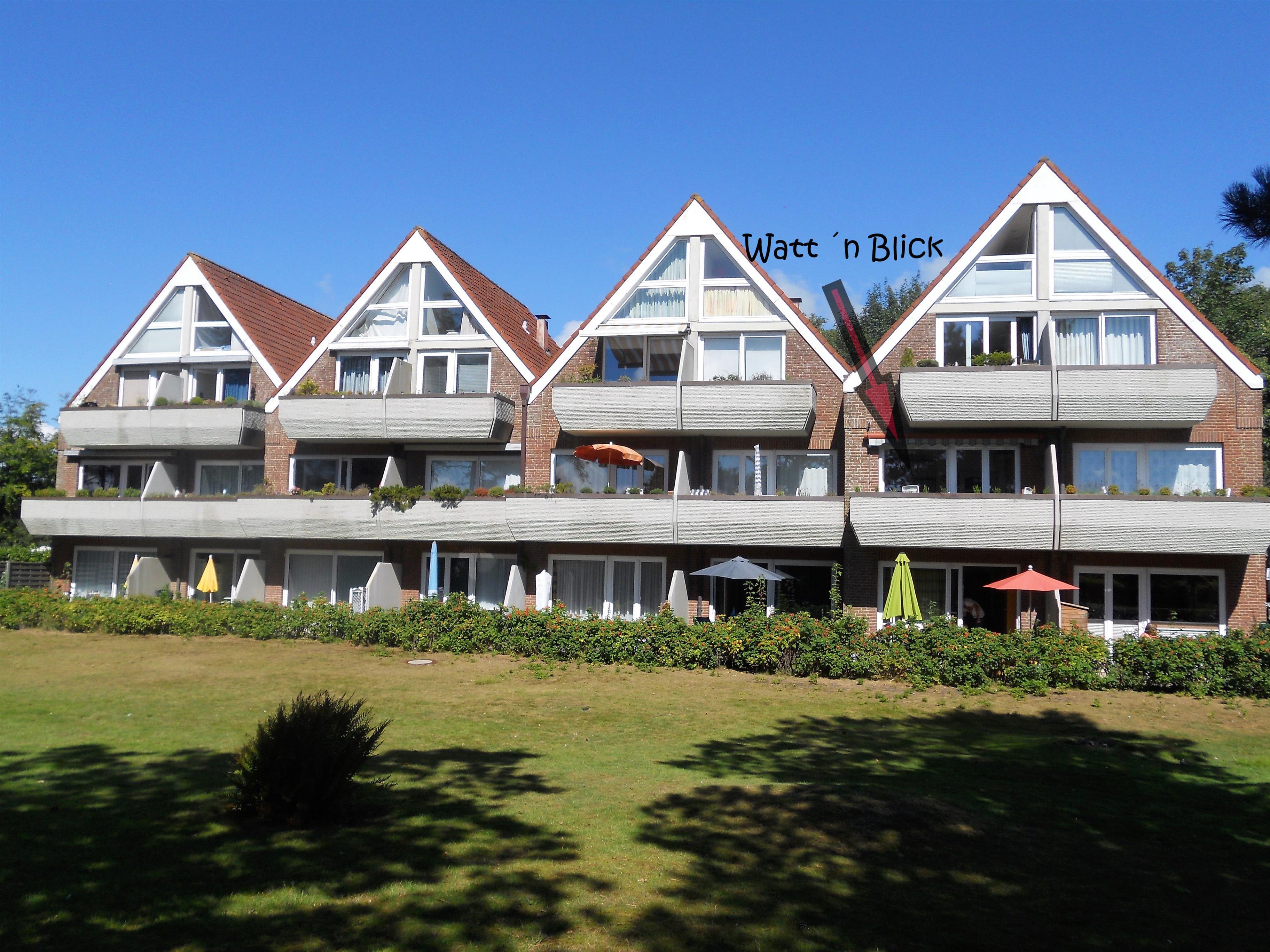In einer schönen und gepflegten Anlage mehrerer Reihenhäuser befindet sich unsere Wohnung "Watt'n Blick" sehr ruhig gelegen und nur wenige Gehminuten entfernt vom Meer und dem Wyker Leuchtturm .