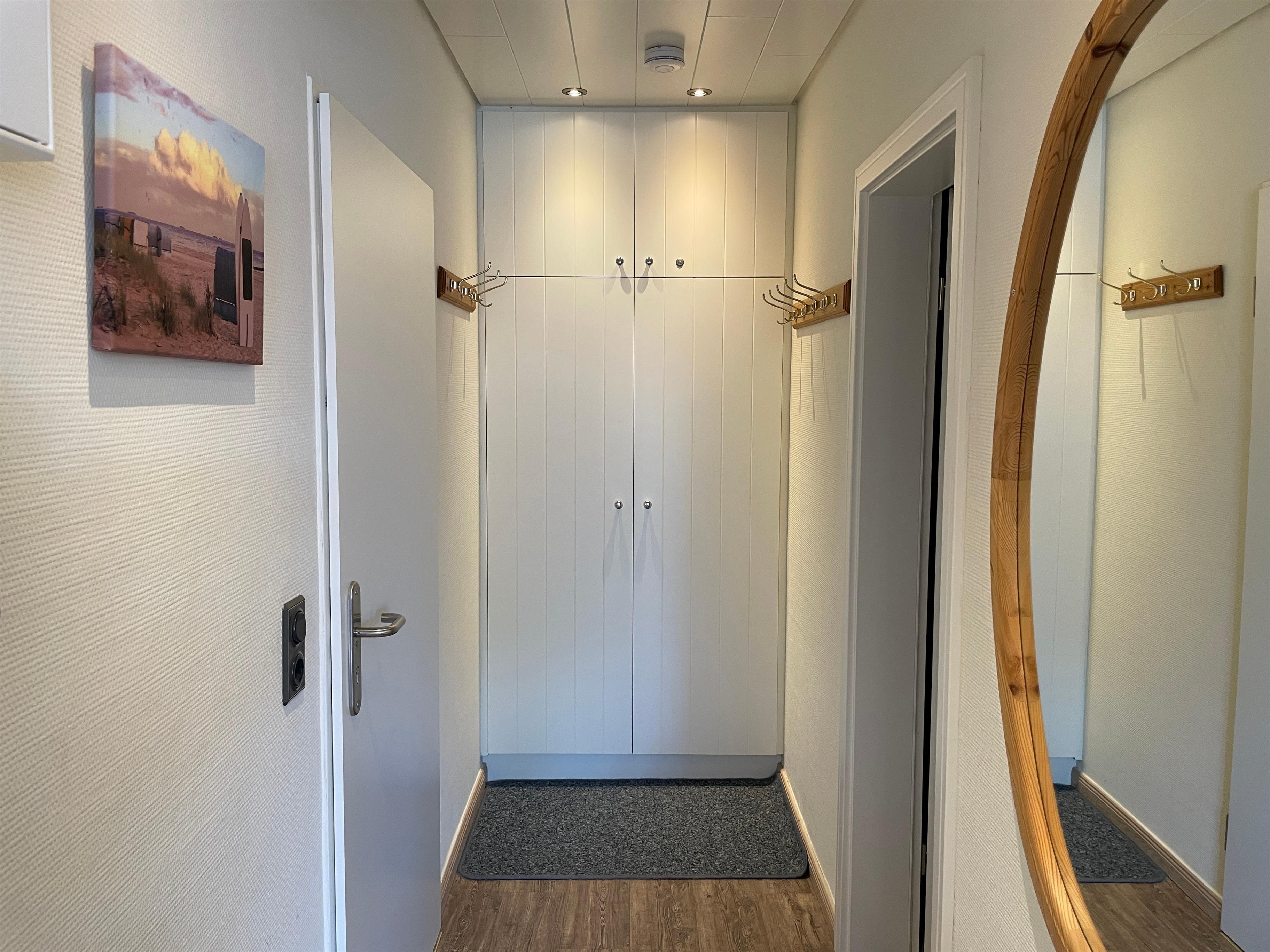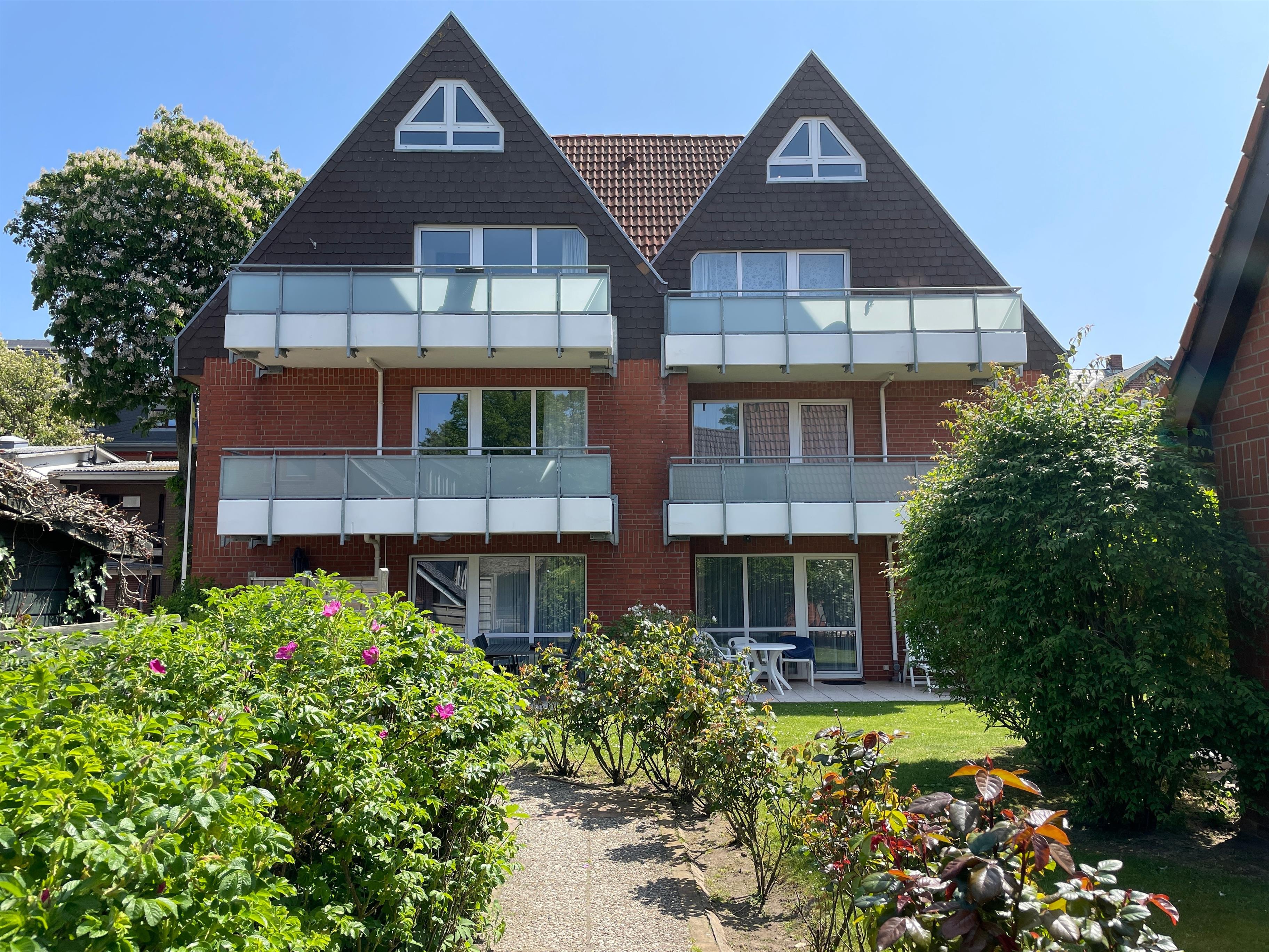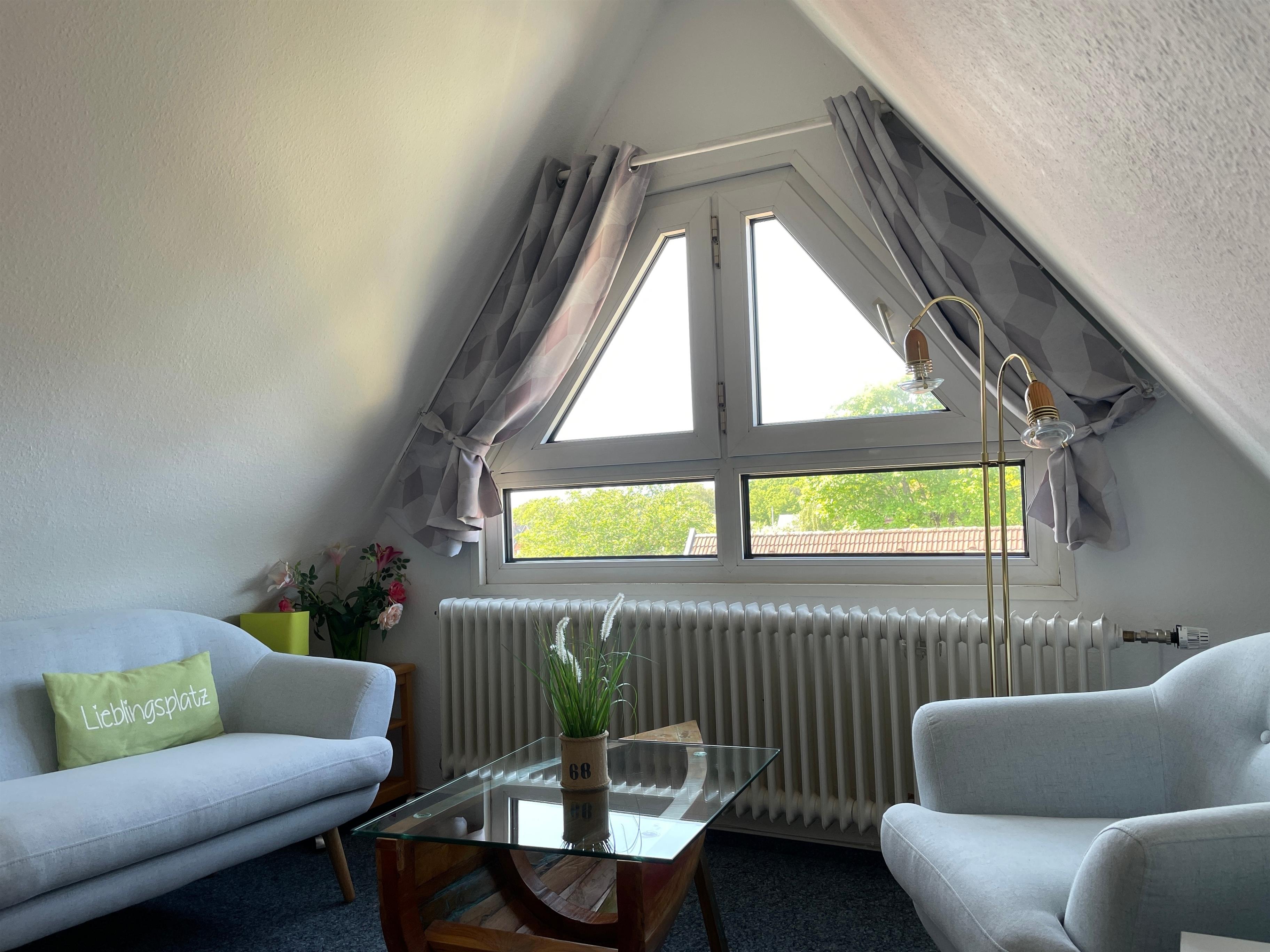 Die Ferienhausanlage Seeadler liegt in der verkehrsberuhigten Zone am Sandwall nur wenige Meter von Cafés, Restaurants, den kleinen Föhrer Geschäften und natürlich dem Strand und dem Meer entfernt. Auf der zweiten Etage der gepflegten Ferienhausanlage befindet sich unsere Wohnung Seeadler 15 und erstreckt sich über zwei Etagen. Während sich im unteren Teil der charmanten Maisonettewohnung das gemütliche Schlafzimmer mit zwei Einzelbetten (90x200cm), das helle Duschbad mit Waschtisch und Waschmaschine und der einladende Wohnbereich mit WLAN, einer Playstation 4, Smart-TV, Festnetztelefon, einem bequemen Schlafsofa (170x190cm) und der integrierten gut ausgestatteten Küchenzeile befindet, können Sie sich im oberen Teil der Wohnung wunderbar zurückziehen , um in der liebevoll eingerichteten Leseecke vielleicht den neu gekauften Föhrkrimi zu lesen oder ein anderes TV-Programm zu genießen. Im Dachgeschoss befindet sich auch ein Doppelbett (keine offizielle Übernachtungsmöglichkeit). Die Wohnung ist mit viel Freude von den Eigentümern hergerichtet wurden, so dass sich unsere Gäste rundherum wohlfühlen können. Besonders im Sommer lädt jedoch auch der Balkon mit Südwest- Ausrichtung zum Relaxen ein.