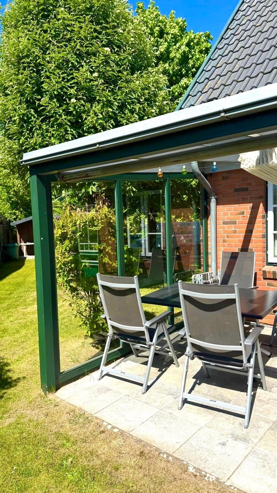 Richtige Urlaubsstimmung kommt auf der schönen Terrasse der Ferienwohnung auf. Im Urlaub kochen? Los geht´s, die Küche ist gut ausgestattet, sogar mit einer Spülmaschine.