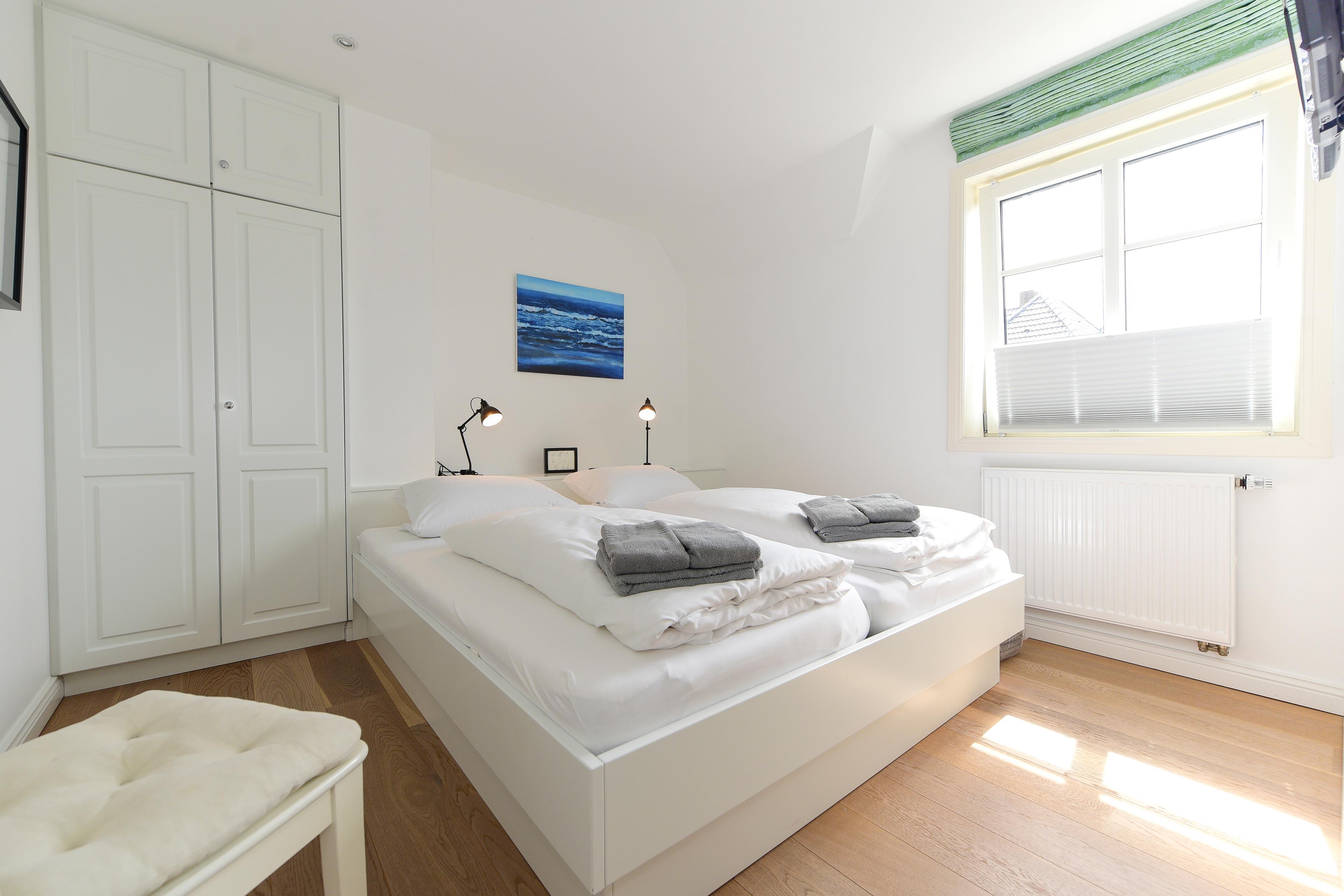 Das Haus befindet sich in einer ruhigen Nebenstraße, nur wenige Gehminuten von der Innenstadt von Wyk entfernt.