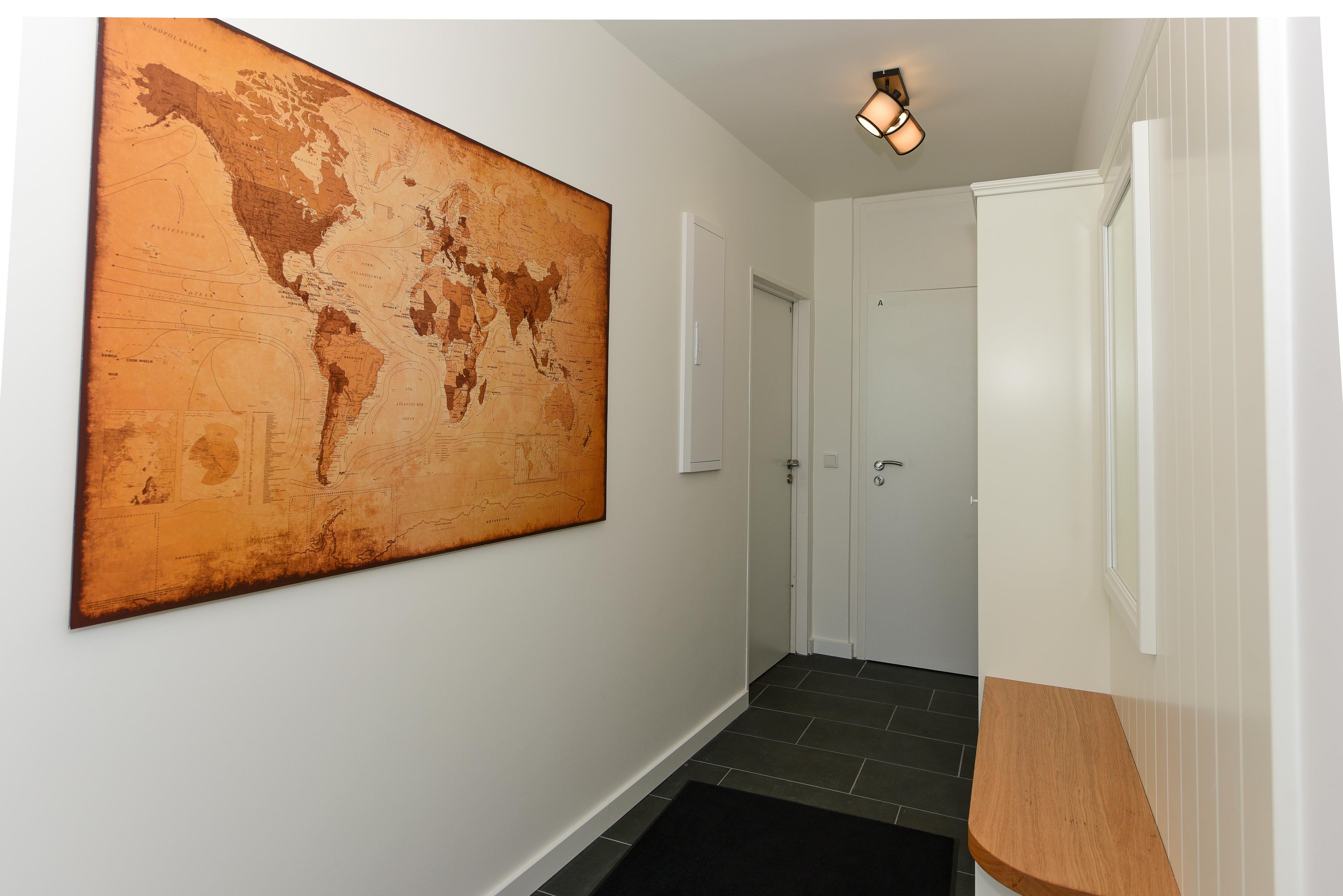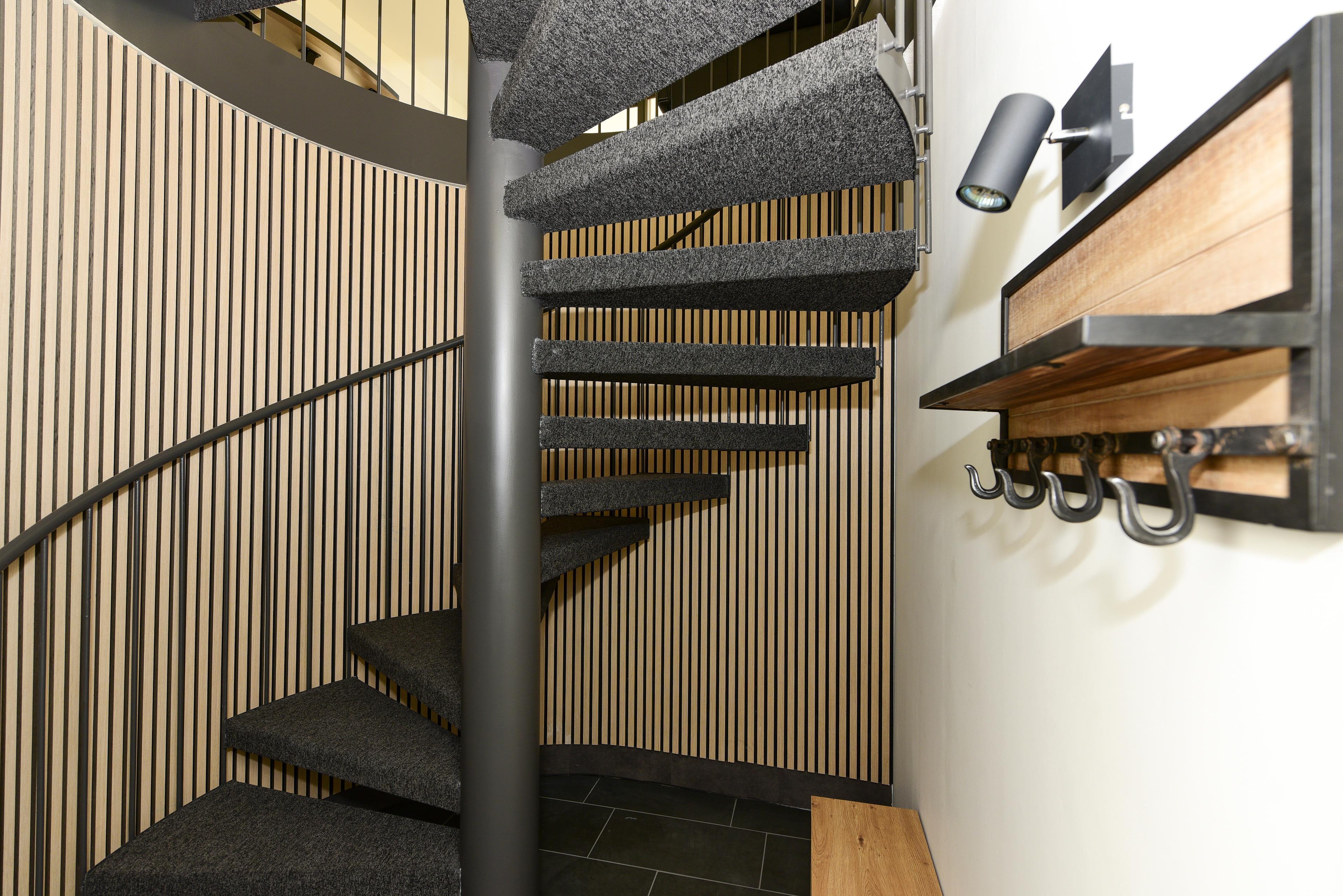 Die 2023 frisch renovierte und modernisierte Ferienwohnung D1A erreichen Sie vom hellen Vorflur über eine Wendeltreppe.