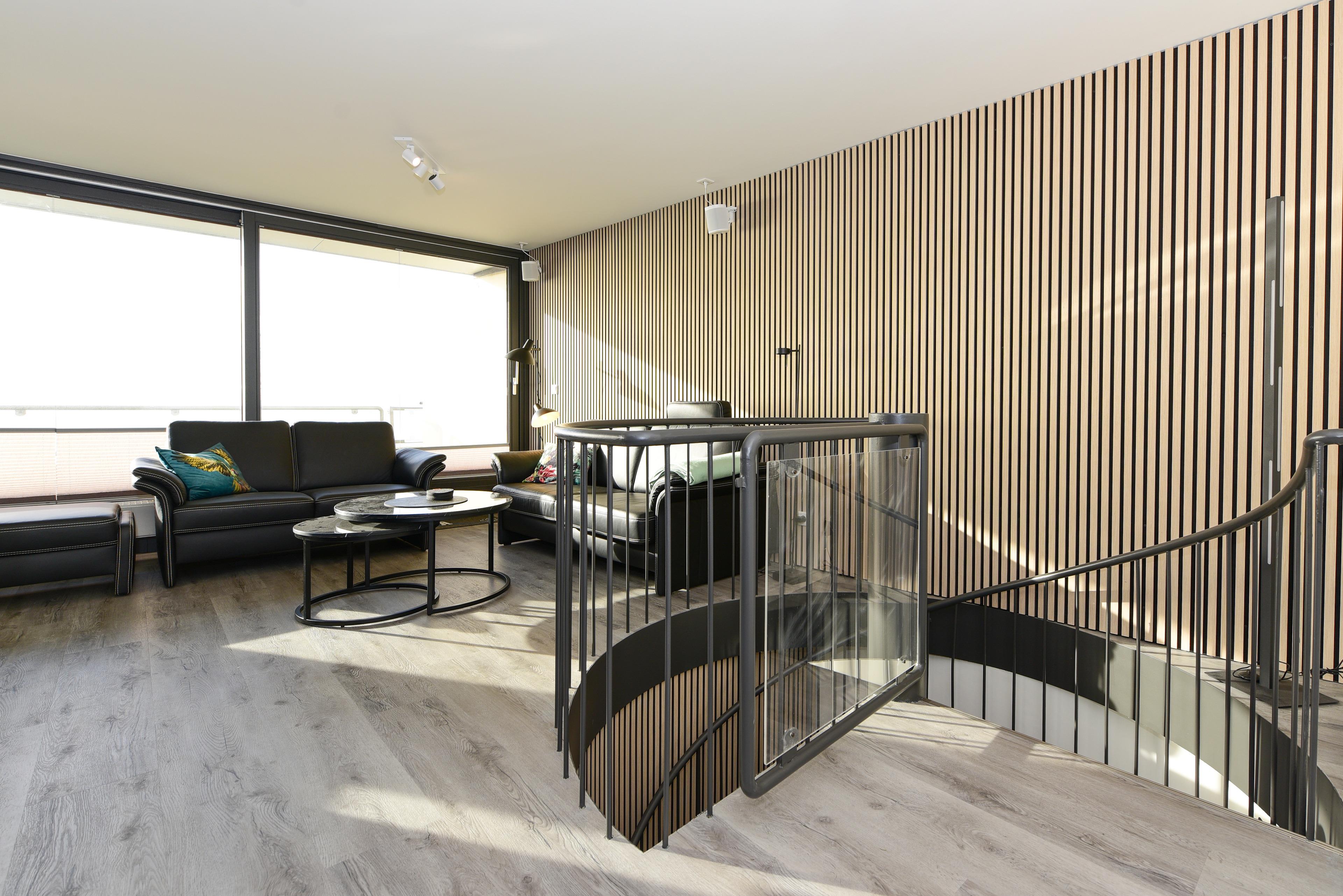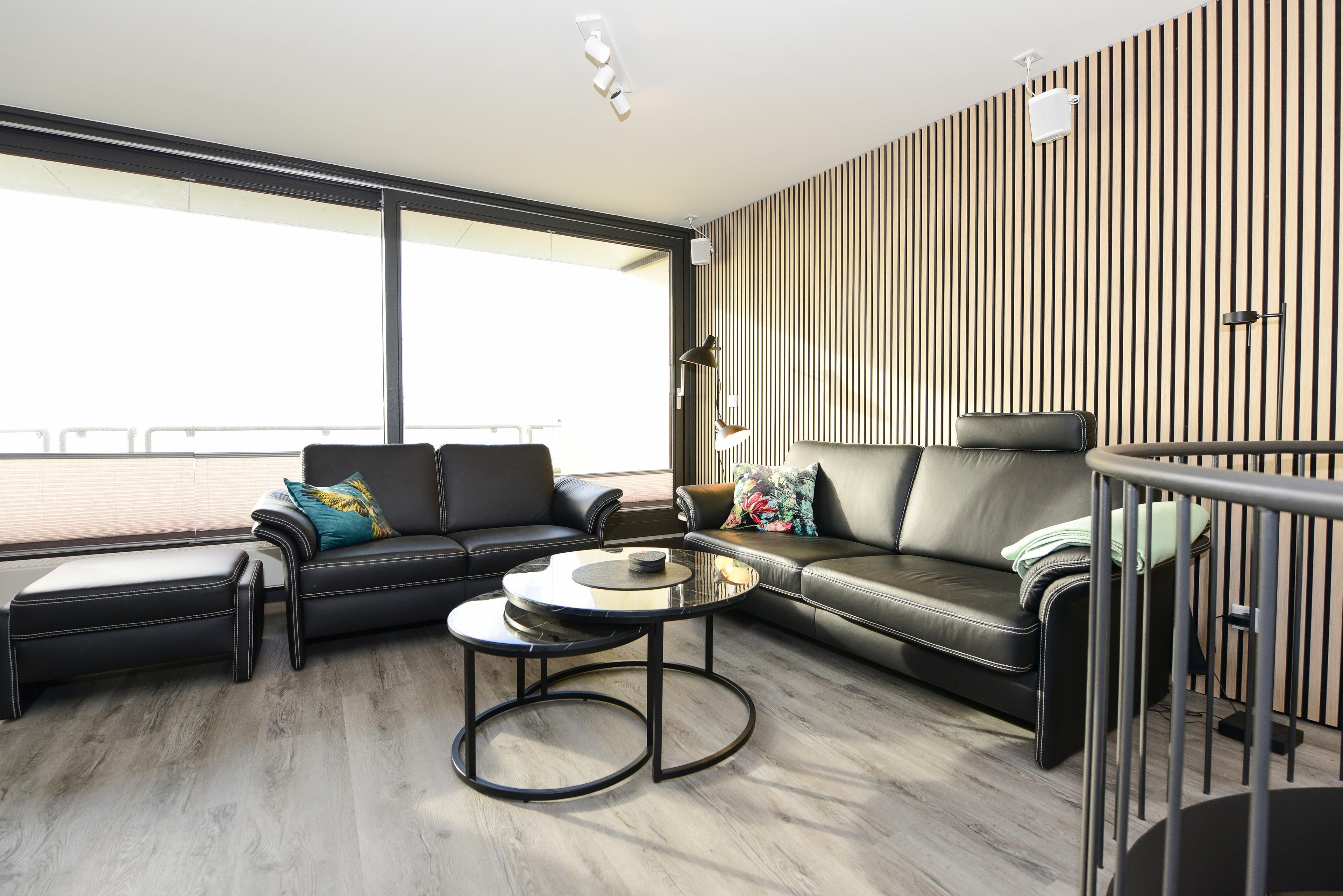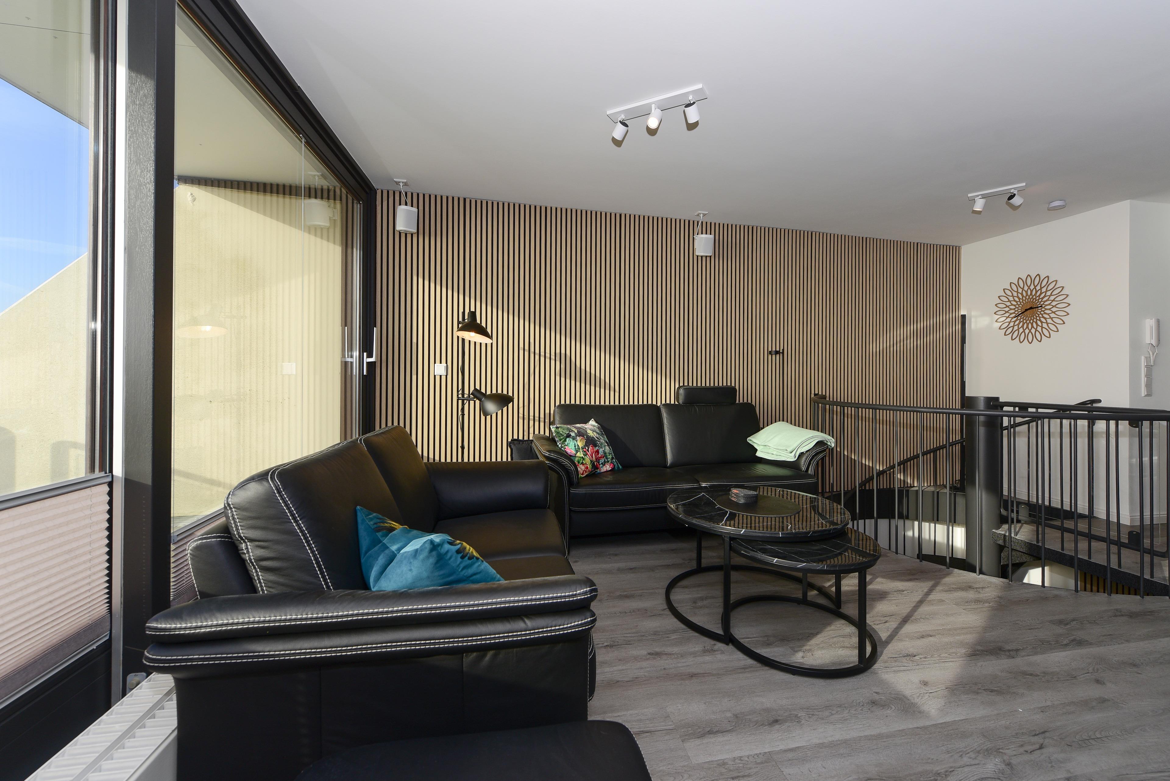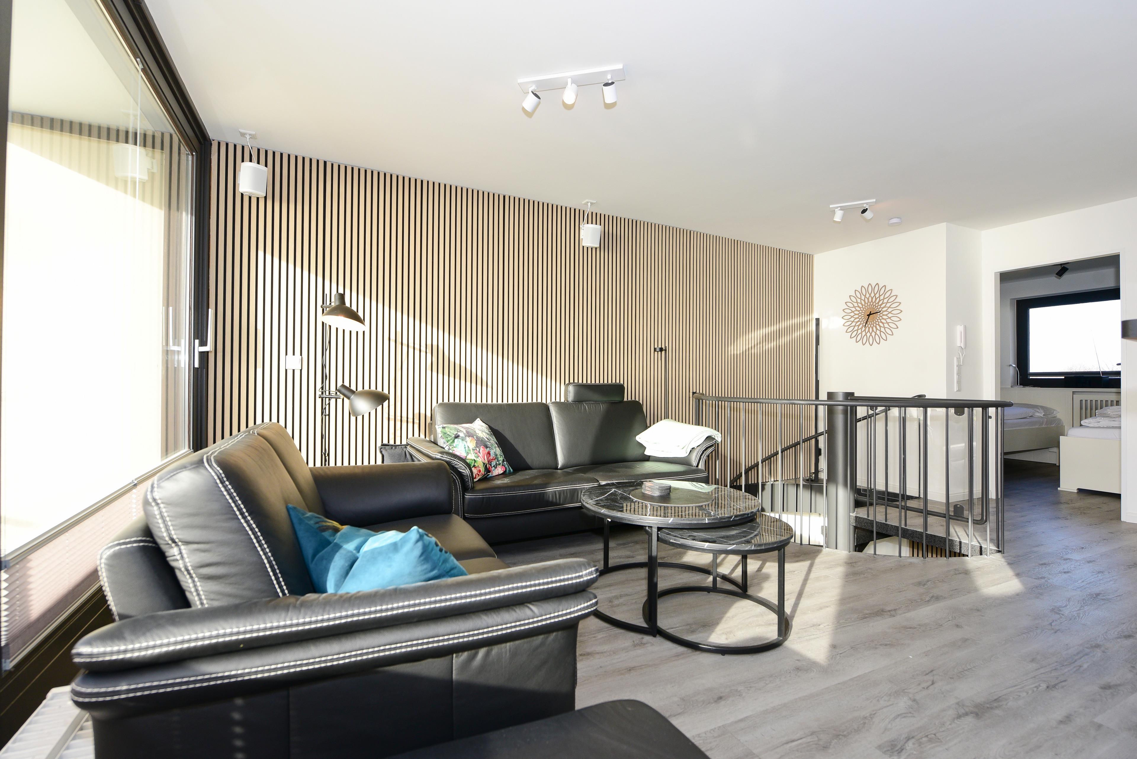 Im Wohnbereich erwarten Sie moderne Unterhaltungstechnik und eine bequeme Sitzgarnitur - perfekt für gemütliche Abende nach einem ereignisreichen Tag.