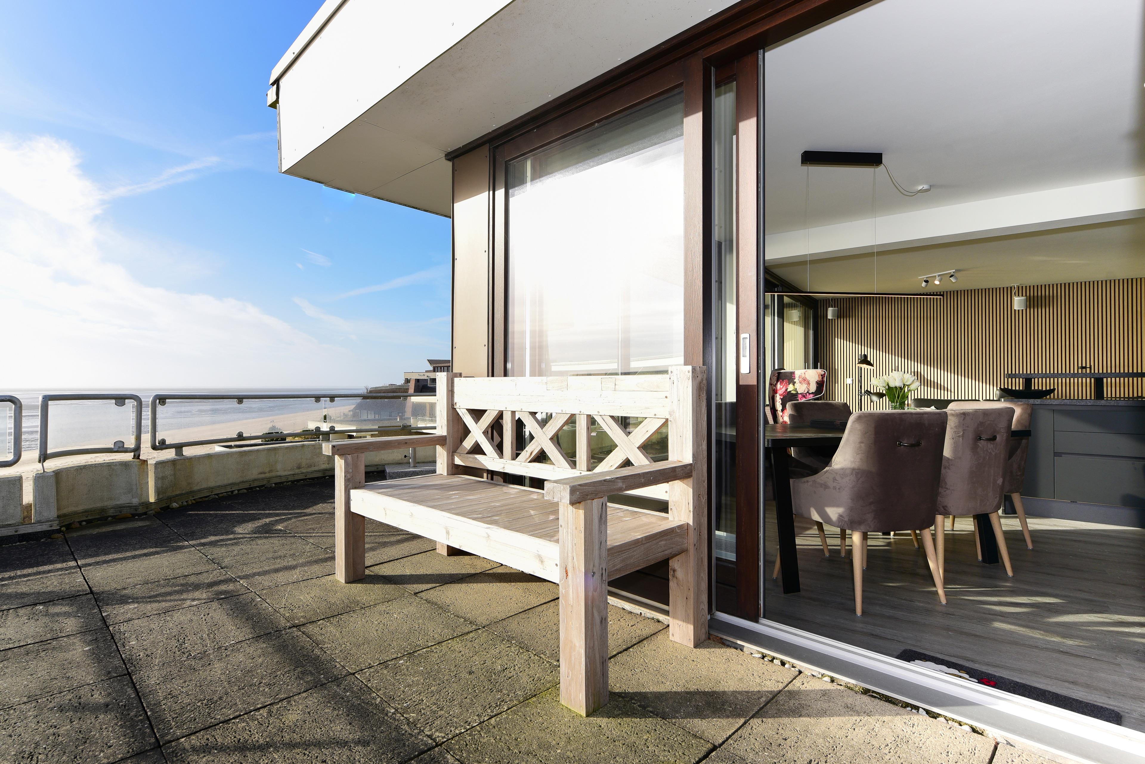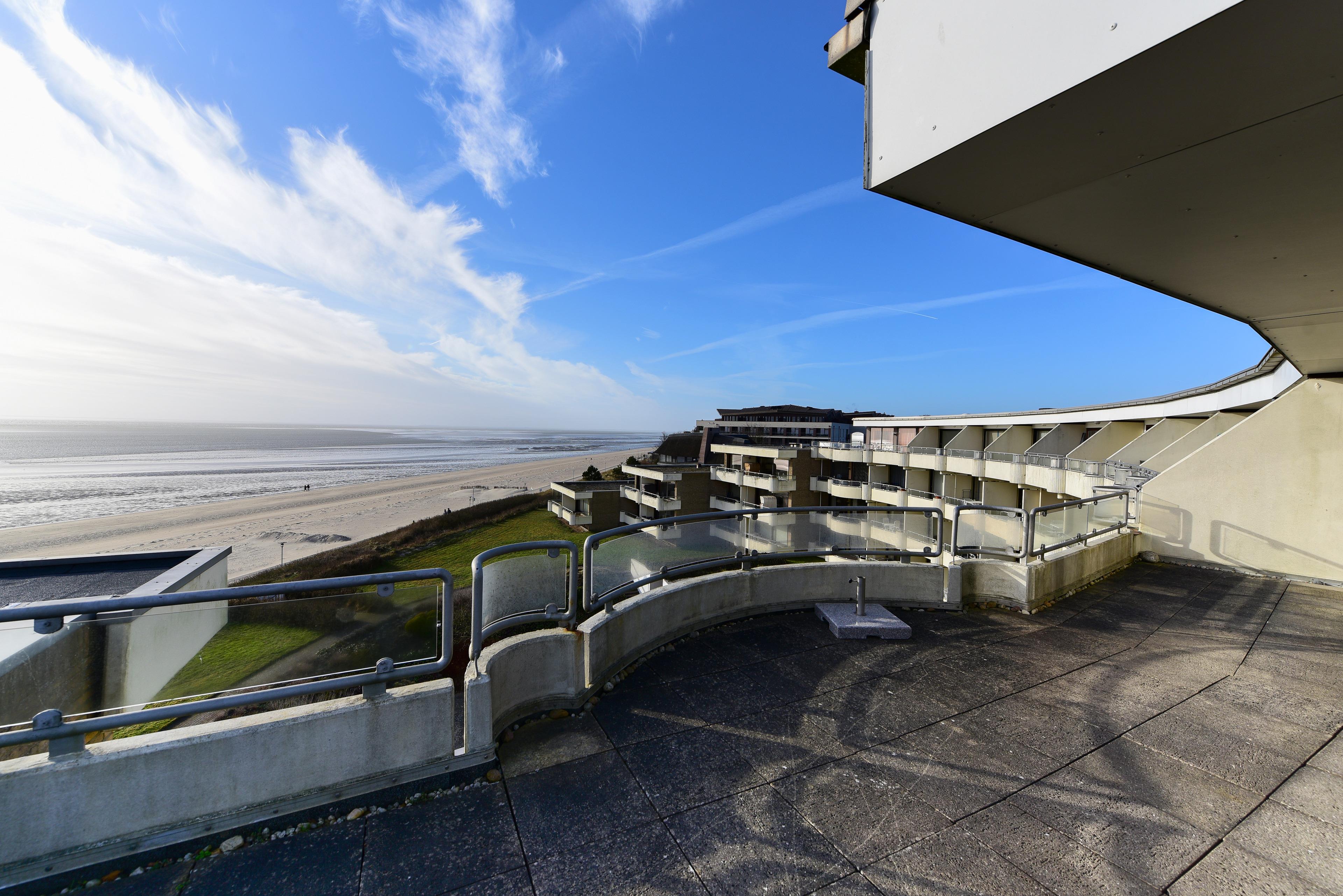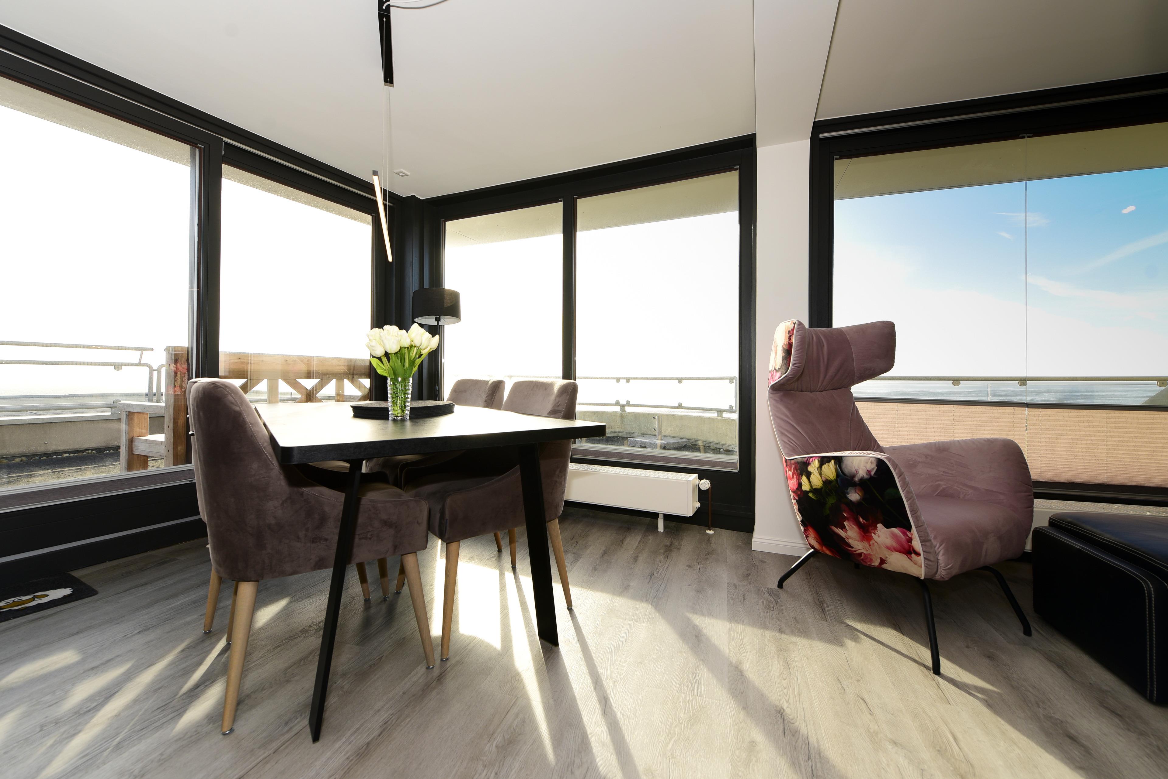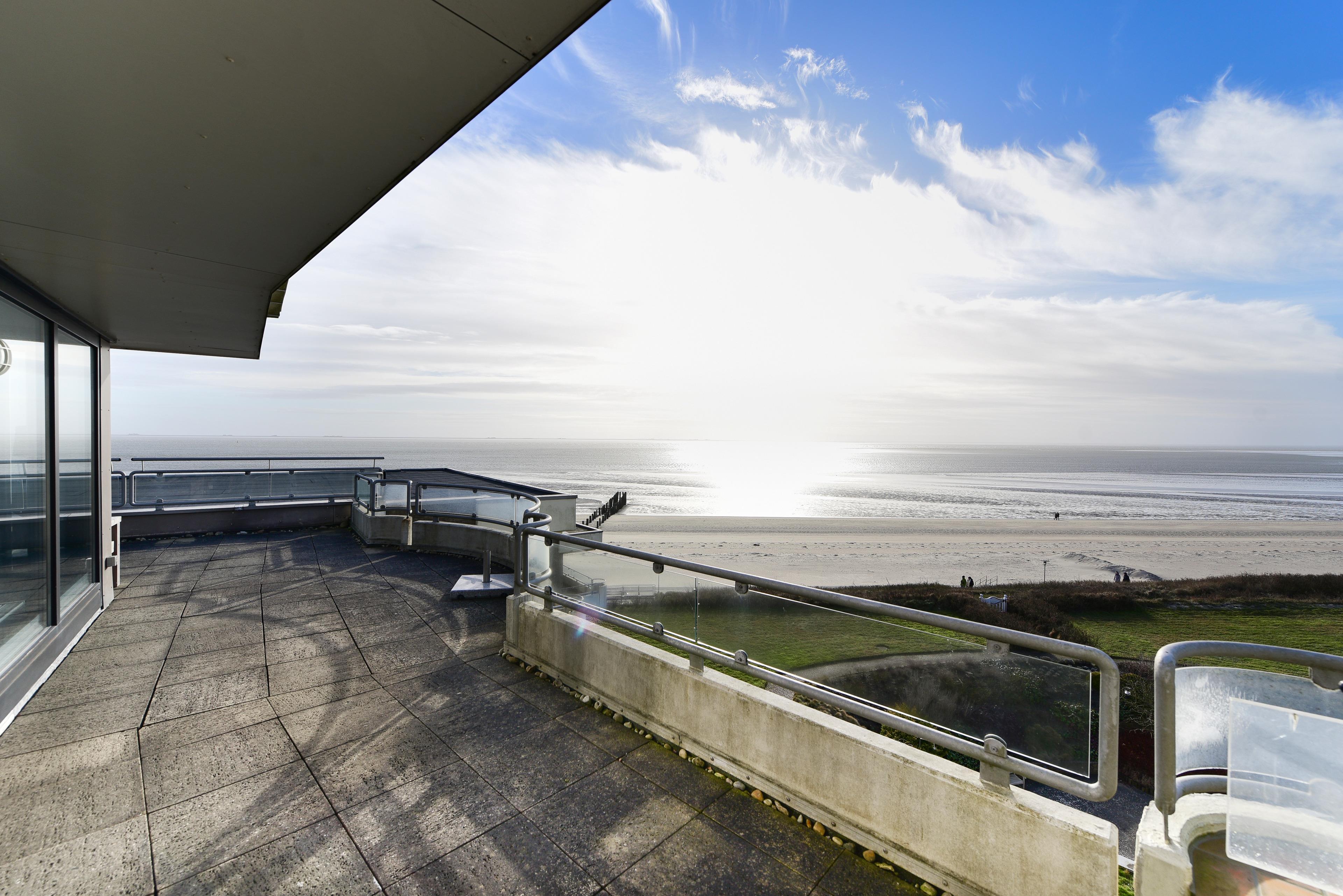Genießen Sie den unverbauten Panoramablick auf die Nordsee und die Halligwelt - ob durch das große Fenster oder vom Balkon aus.