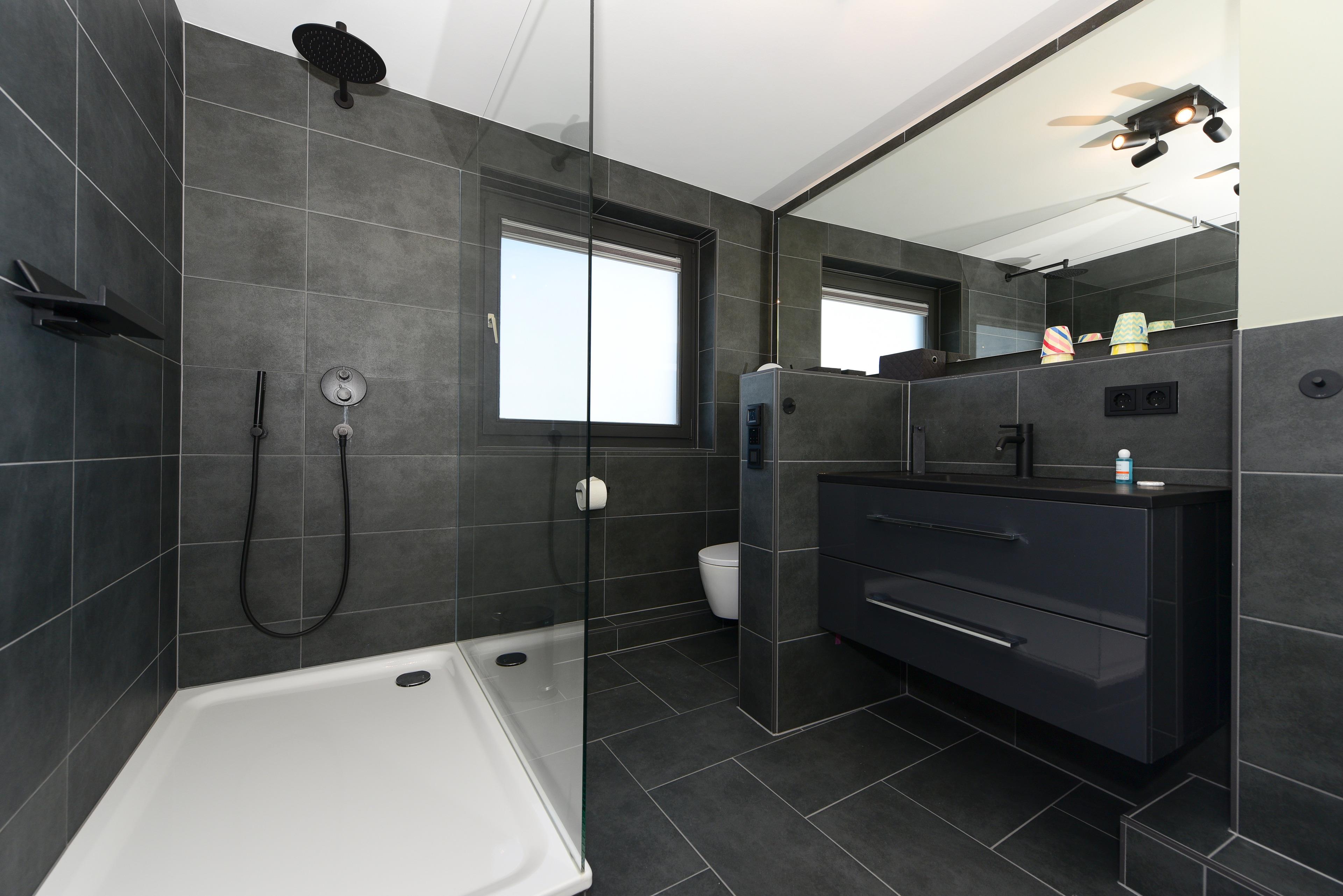 Das moderne Duschbad lädt zum Wohlfühlen ein. ausgestattet mit einer luxuriösen Regendusche, Fußbodenheizung, Haartrockner und sogar einer Waschmaschine, bietet es alles, was Sie für einen entspannten Aufenthalt benötigen.