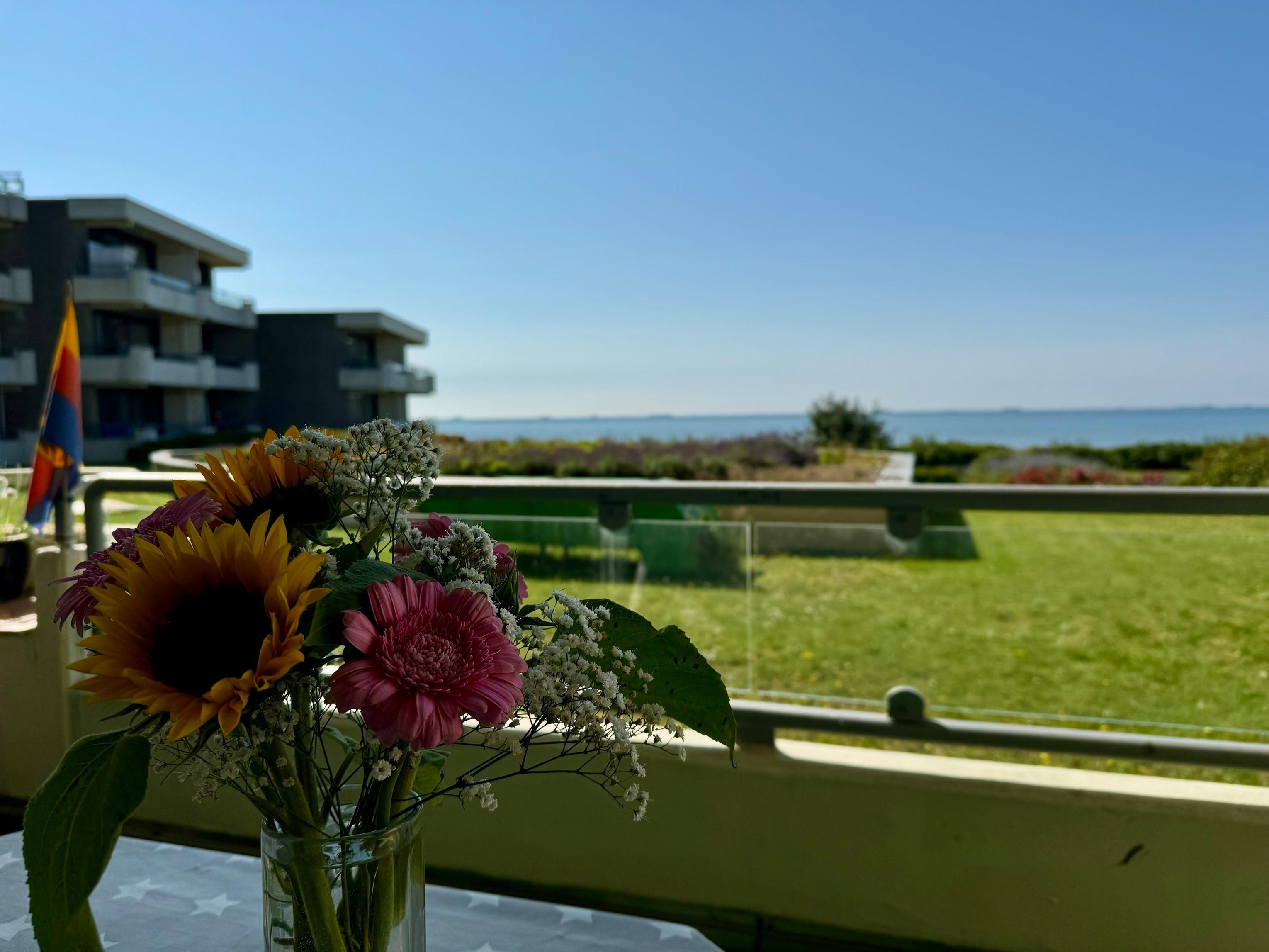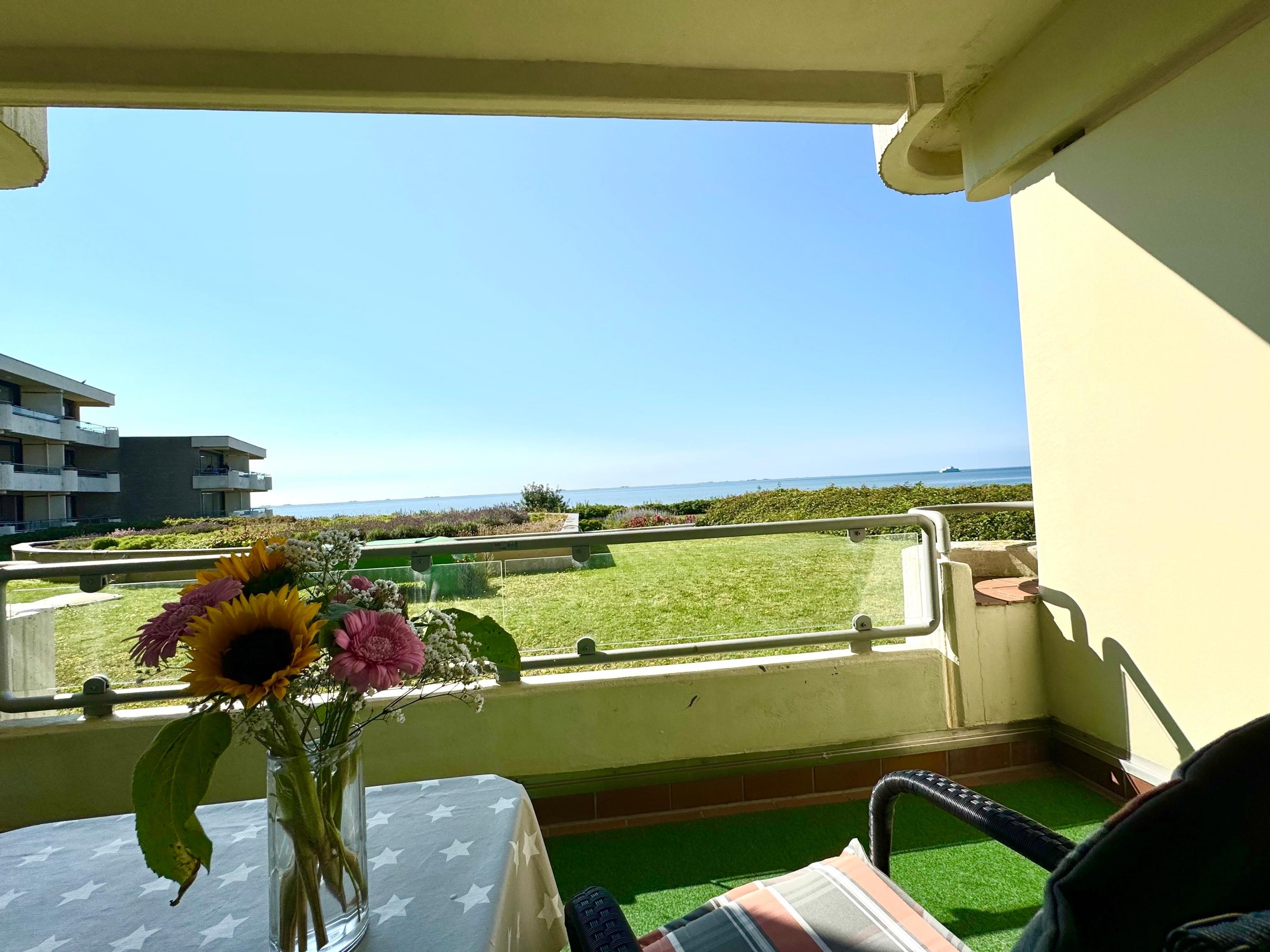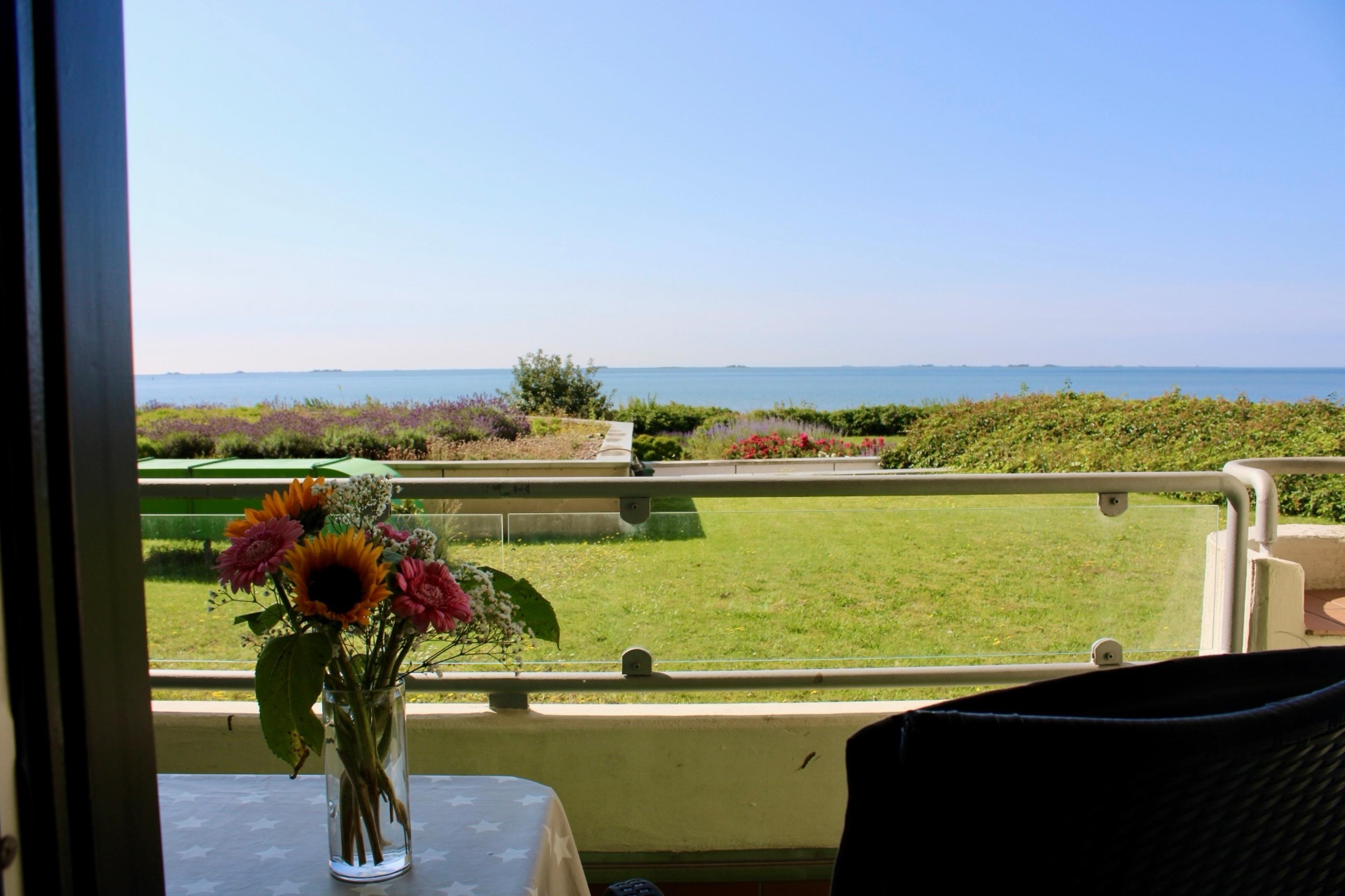 Beginnen Sie den Morgen mit einem Balkonfrühstück in der Sonne und genießen den weiten Blick auf die Halligen und zur Insel Amrum, beobachten Sie die Fähren und Segelboote und entspannen bei den Sonnenstunden. Auch ein Sundowner am Abend und gemütliche Stunden mit "Mee(h)rblick" runden die Urlaubsstimmung ab.