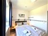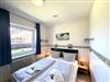 Ein separates Schlafzimmer mit Doppelbett und einem großzügigen Kleiderschrank bietet einen Rückzugsort für die Nacht. Für eine dritte Person kann das Schrankbett im Wohnzimmer mit wenigen Handgriffen aufgeklappt werden.