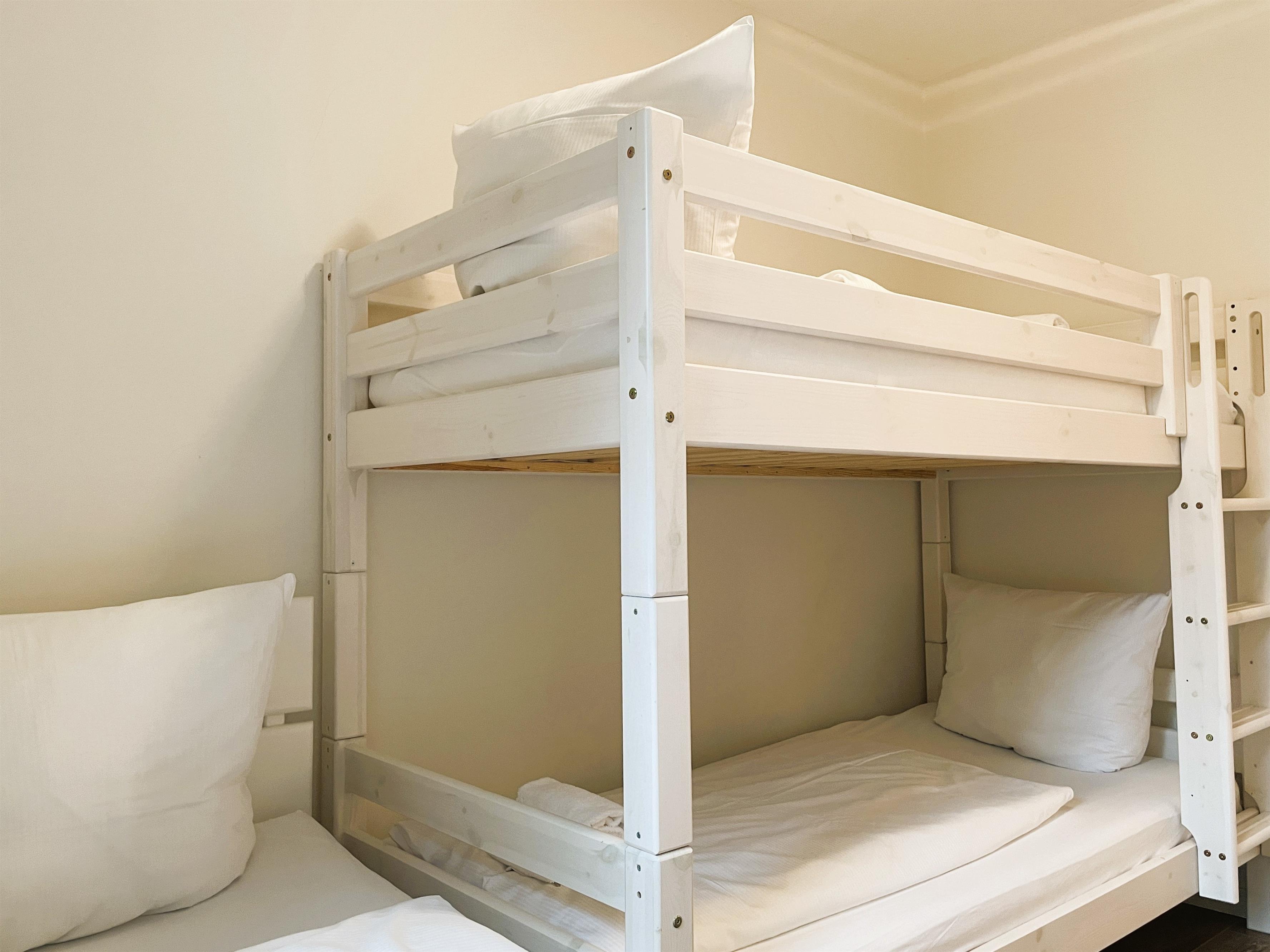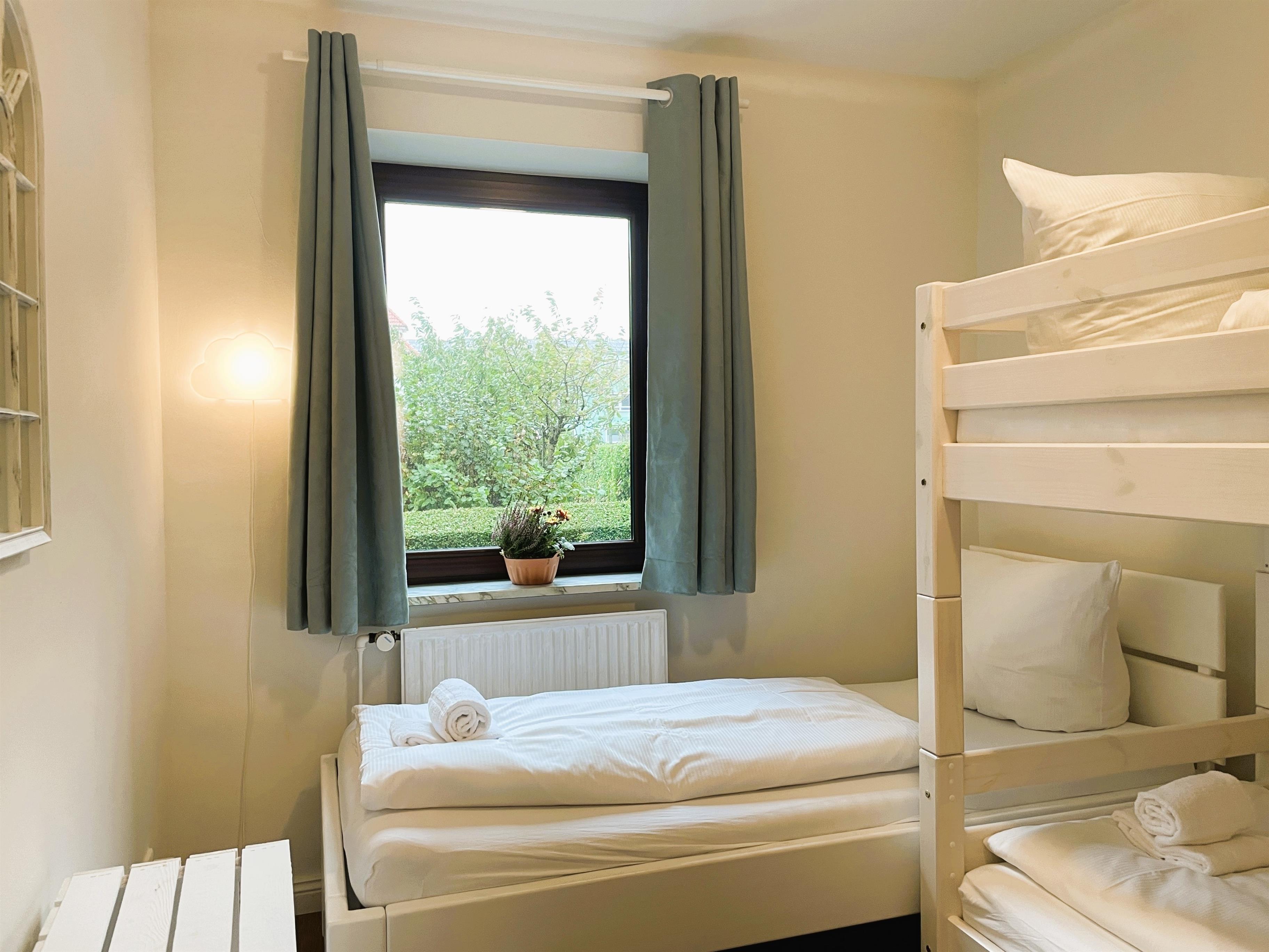 Das Hauptschlafzimmer ist mit einem Doppelbett ausgestattet, während das zweite Schlafzimmer ein Einzelbett sowie ein Etagenbett in Erwachsenengröße bietet. Das Badezimmer ist mit einem Vollbad, WC und zwei Waschplätzen ausgestattet und sorgt für zusätzlichen Komfort. Genießen Sie Ihren Aufenthalt in unserer komfortablen Ferienwohnung und erleben Sie Entspannung pur! Buchen Sie jetzt und sichern Sie sich Ihren perfekten Urlaub!