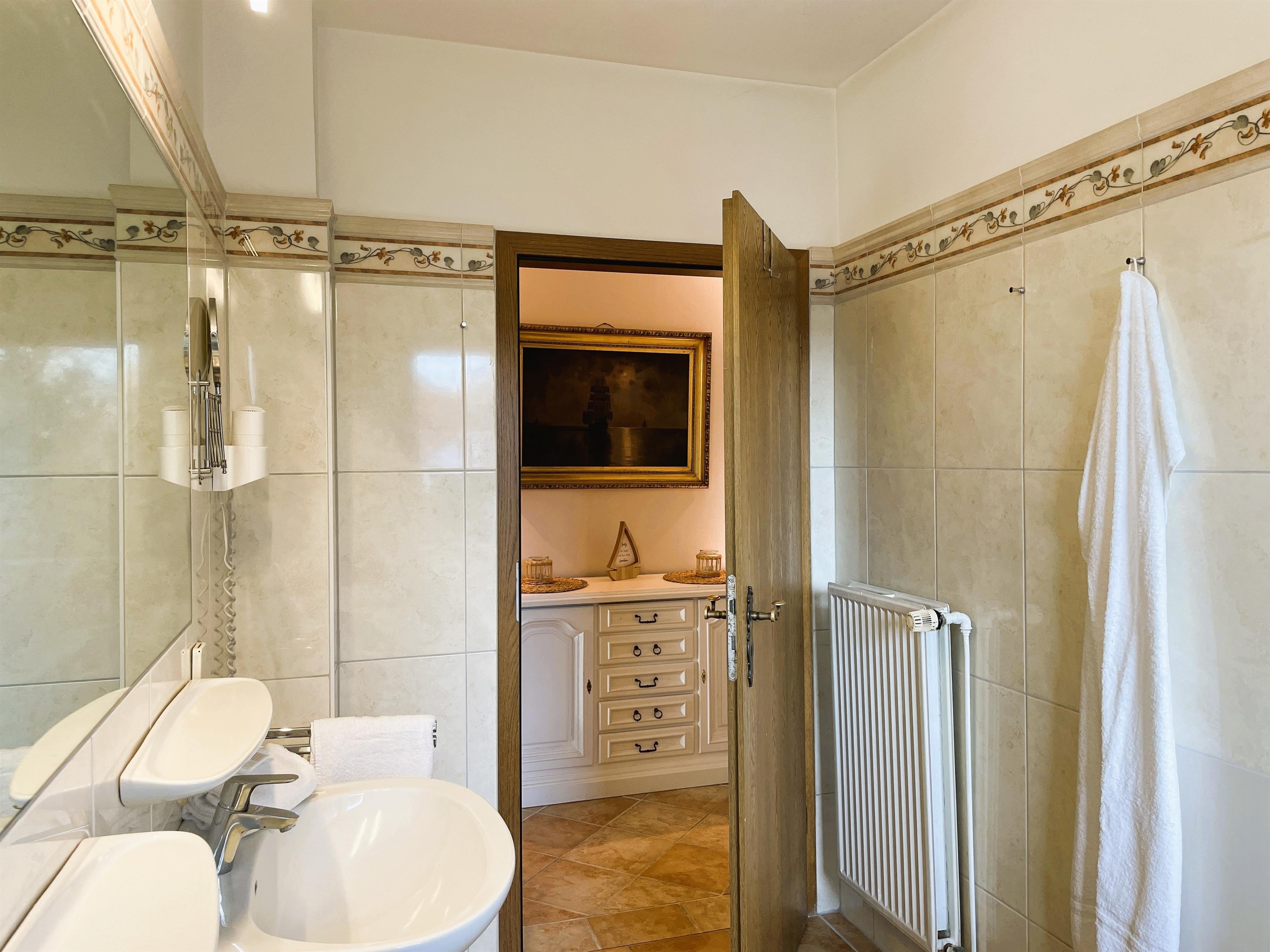Das Herzstück der Wohnung ist das helle Wohnzimmer mit seiner voll ausgestatteten Küchenzeile. Hier können Sie gemeinsam kochen, essen und entspannen. Der Südbalkon lädt zum Verweilen ein und bietet einen wunderbaren Ausblick, besonders schön in den Abendstunden. Über einen zentralen Flur erreichen Sie die beiden Schlafzimmer: eines mit einem bequemen Doppelbett, das andere mit einem Einzel- und einem Etagenbett - alle in Erwachsenengröße. Das geräumige Badezimmer mit Vollbad, WC und zwei Waschplätzen komplettiert den Wohnkomfort. Unsere Ferienwohnung ist rauchfrei und tierfreundlich. Sie bietet kostenloses WLAN, Heizung und einen Privatparkplatz. Erleben Sie einen unvergesslichen Urlaub in unserer Ferienwohnung 5 - Ihr Zuhause fern von Zuhause!