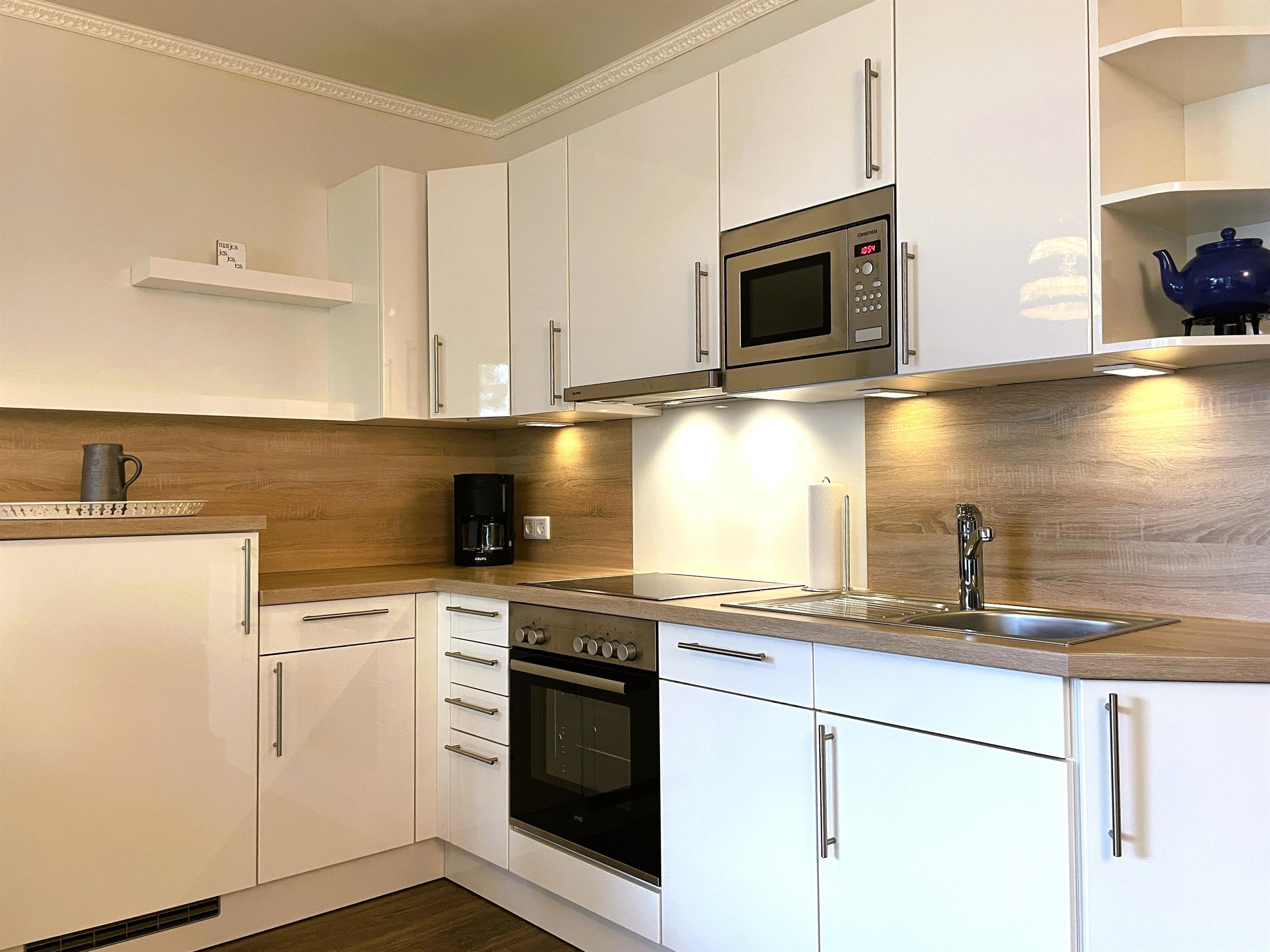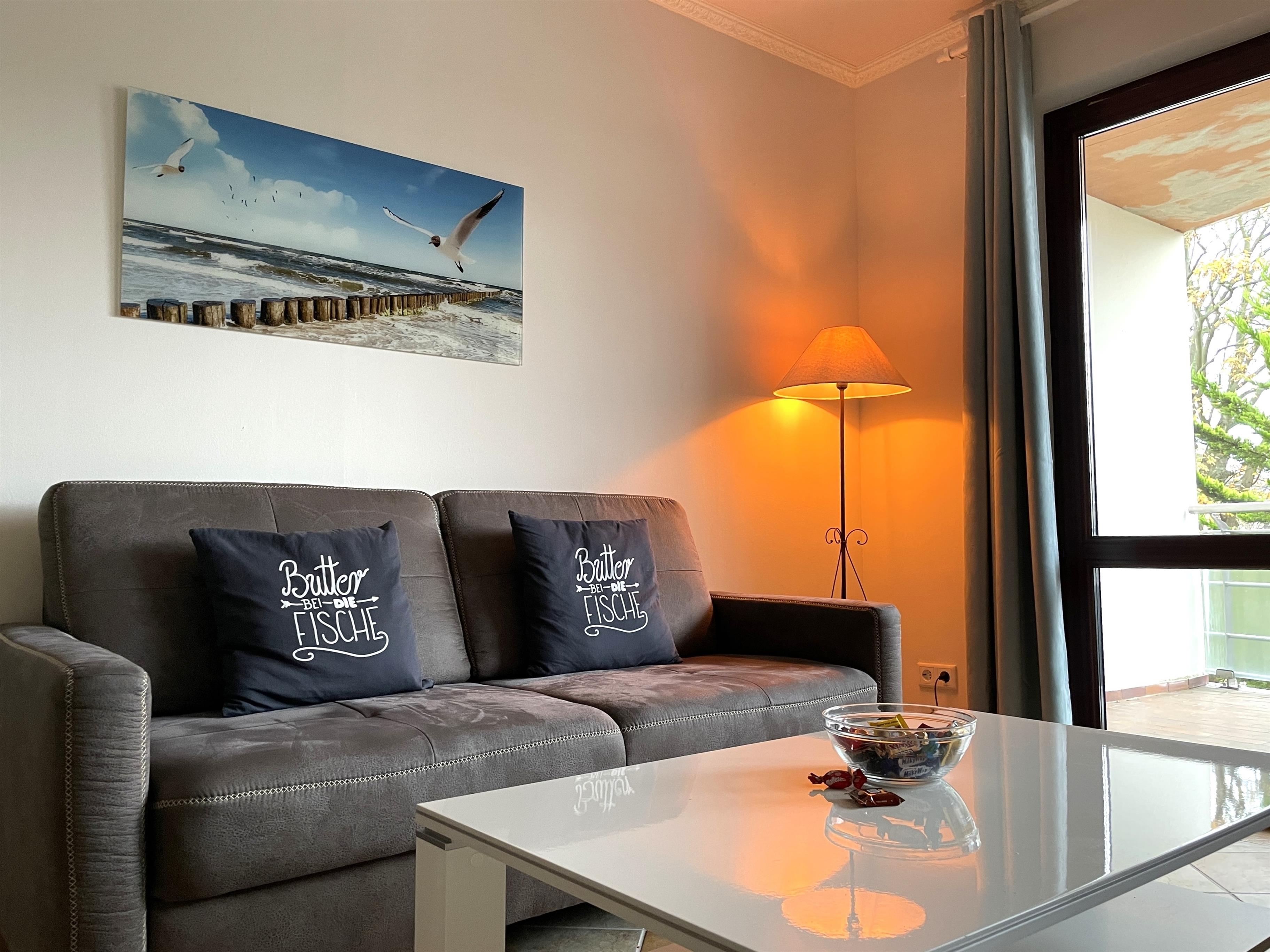 Im hellen Wohnzimmer erwartet Sie eine voll ausgestattete Küchenzeile, die zum gemeinsamen Kochen und Verweilen einlädt. Der sonnige Südbalkon ist der perfekte Ort, um die frische Luft zu genießen und den Tag entspannt ausklingen zu lassen. Über einen zentralen Flur gelangen Sie zu den beiden Schlafzimmern: Eines mit einem bequemen Doppelbett und das andere mit einem Einzel- sowie einem Etagenbett – ideal für Erwachsene. Das geräumige Badezimmer verfügt über eine Wanne, WC und zwei Waschplätze, sodass jeder seinen Platz hat. Die Wohnung ist rauchfrei und tierfreundlich, perfekt für Familien mit Kindern oder Haustierbesitzern. Genießen Sie unvergessliche Tage in der Ferienwohnung 8 im Fischerhuus – Ihr neues Lieblingsdomizil auf Föhr!