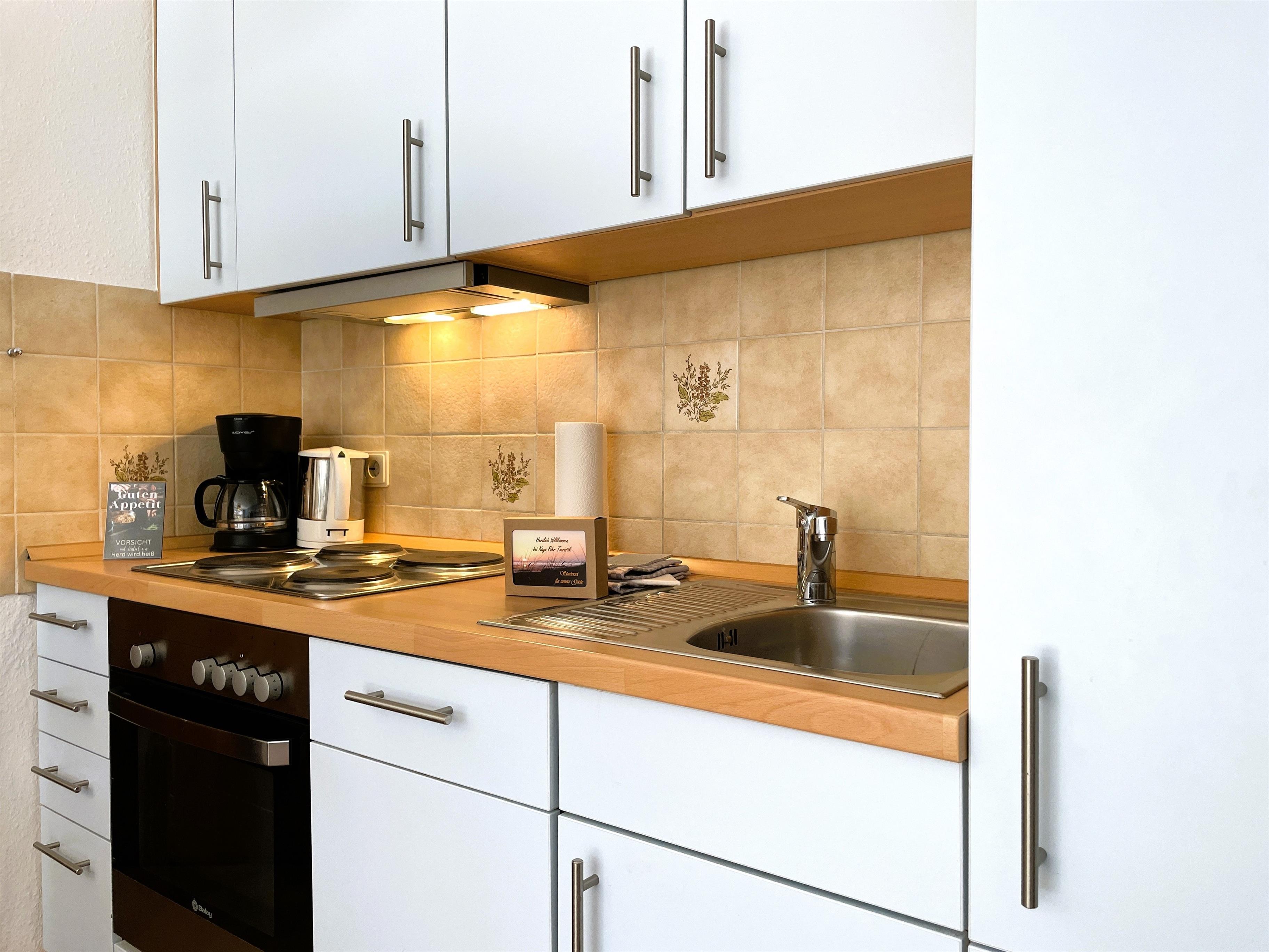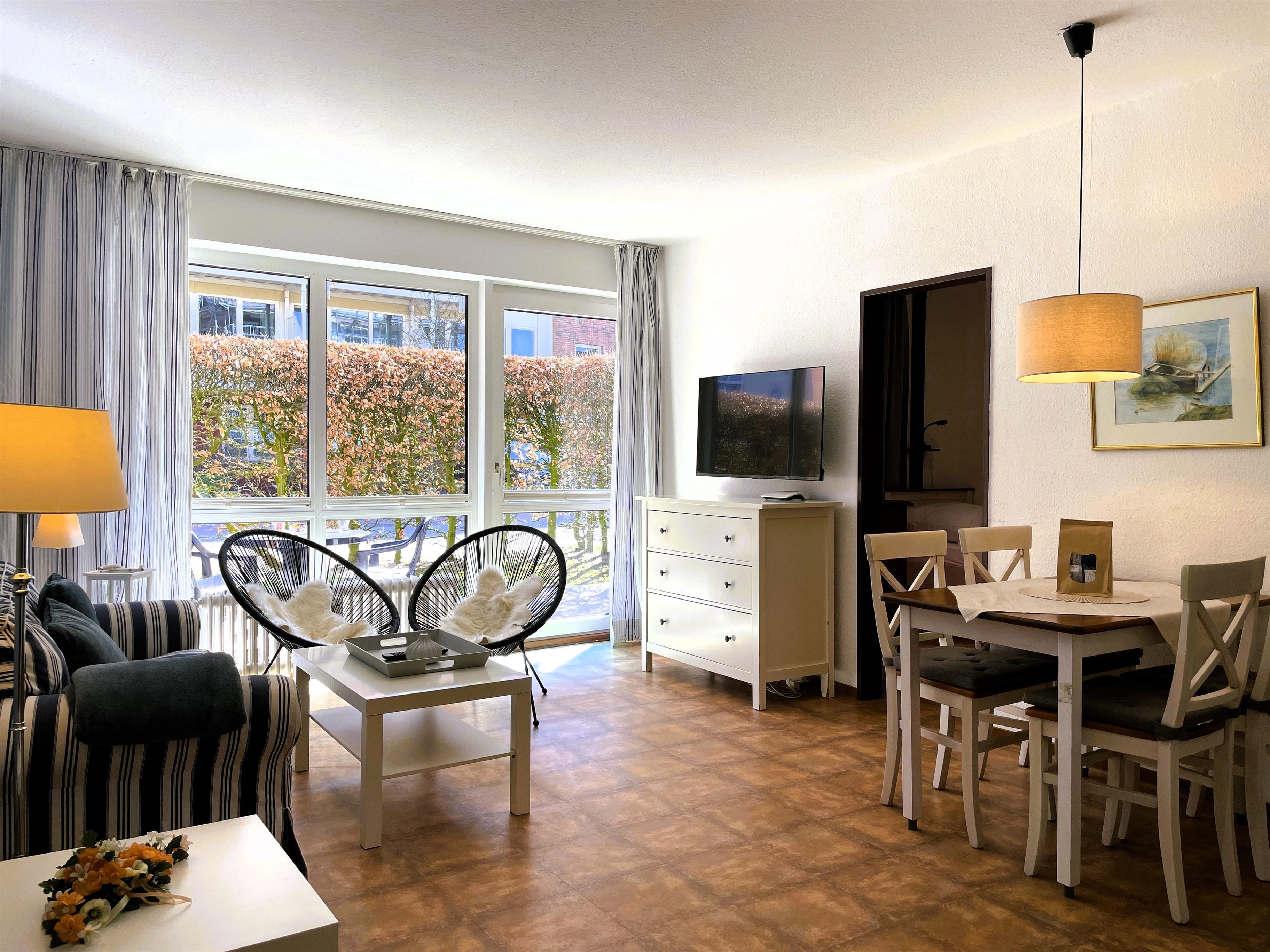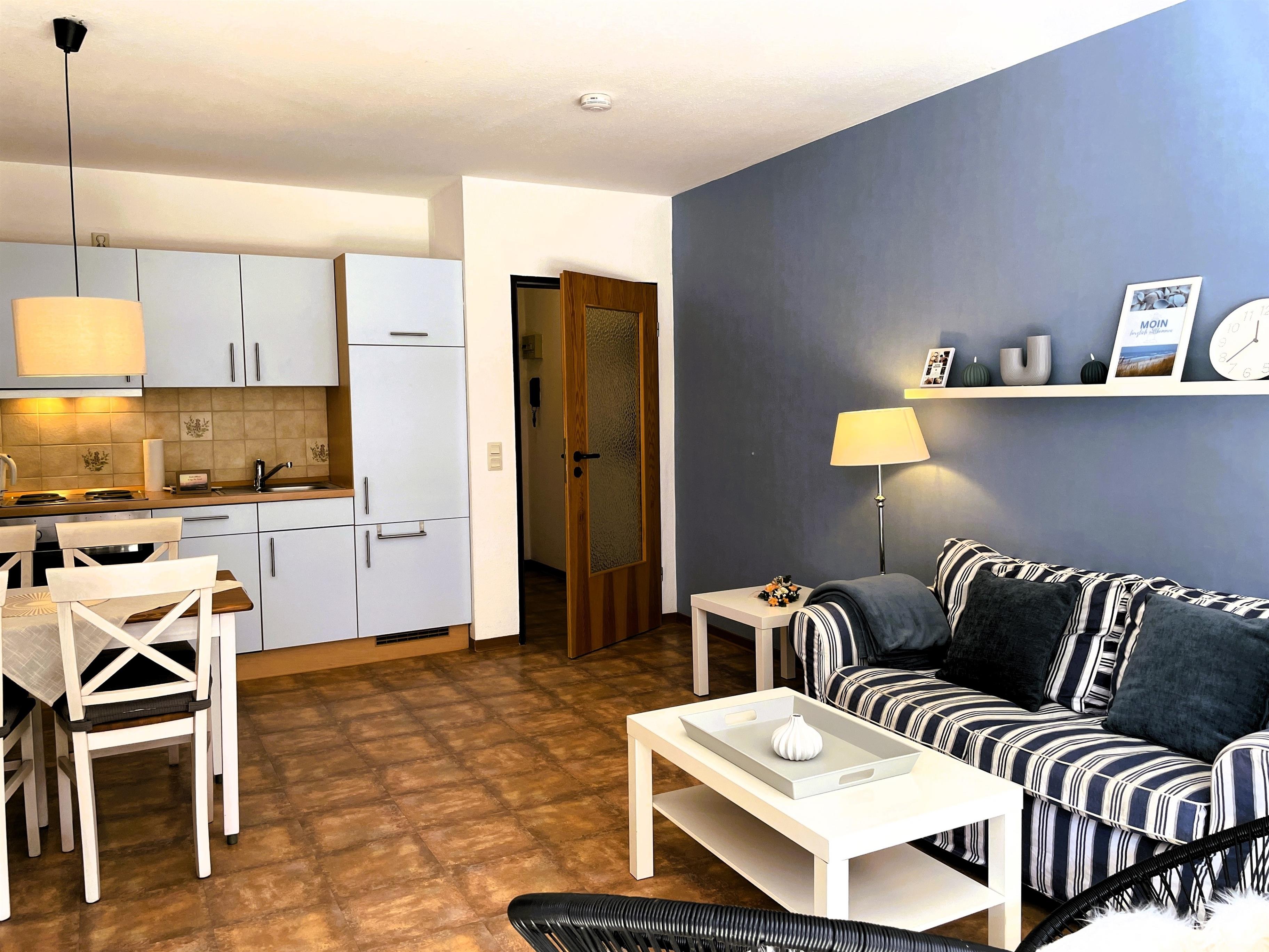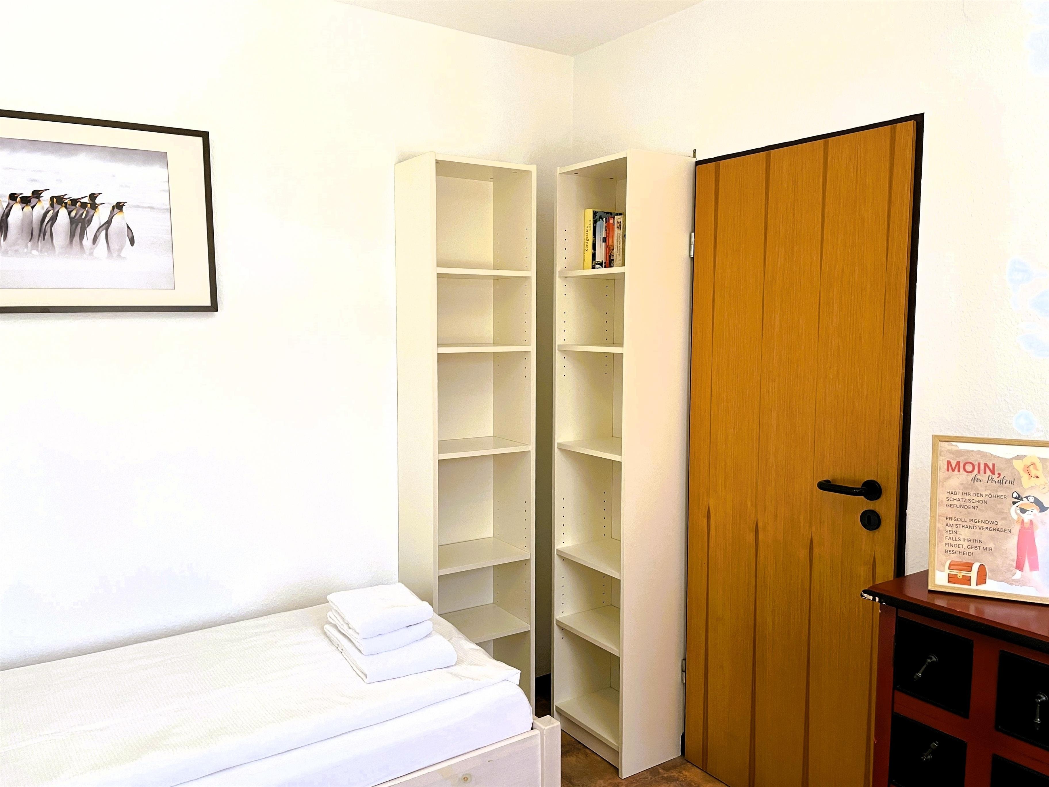 Unser Seeadler 02 ist eine helle EG-Wohnung in der beliebten Lage am Sandwall- unweit der Wyker Innenstadt. Genießen Sie herrliche Urlaubstage in dieser lichtdurchfluteten Wohnung. Mit einem Elternschlafzimmer mit Doppelbett und einem Kinderzimmer mit 2 Einzelbetten, dem Bad mit Dusche und dem einladenden Wohnraum, der das Herzstück der Wohnung bildet, bietet sich die Wohnung ideal für einen Urlaub für 2 bis 4 Personen an. Im Wohnraum erwartet Sie eine gemütliche Sitzecke mit integriertem Esstisch und einer gut ausgestatteten Küchenzeile. Maritime Accessoires geben der Wohnung ihren nordfriesischen Charme. Im Sommer lädt die eigene Terrasse zum Verweilen ein, wenn es Sie mal nicht direkt an den Strand zieht, der nur wenige Schritte entfernt liegt. Buchen Sie unseren Seeadler 02 für erholsame Urlaubstage!