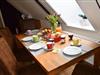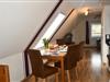 Die Küche ist zum Wohnbereich offen gestaltet und ist mit einem gemütlichen Essplatz und allen nötigen Küchenutensilien vollständig ausgestattet.