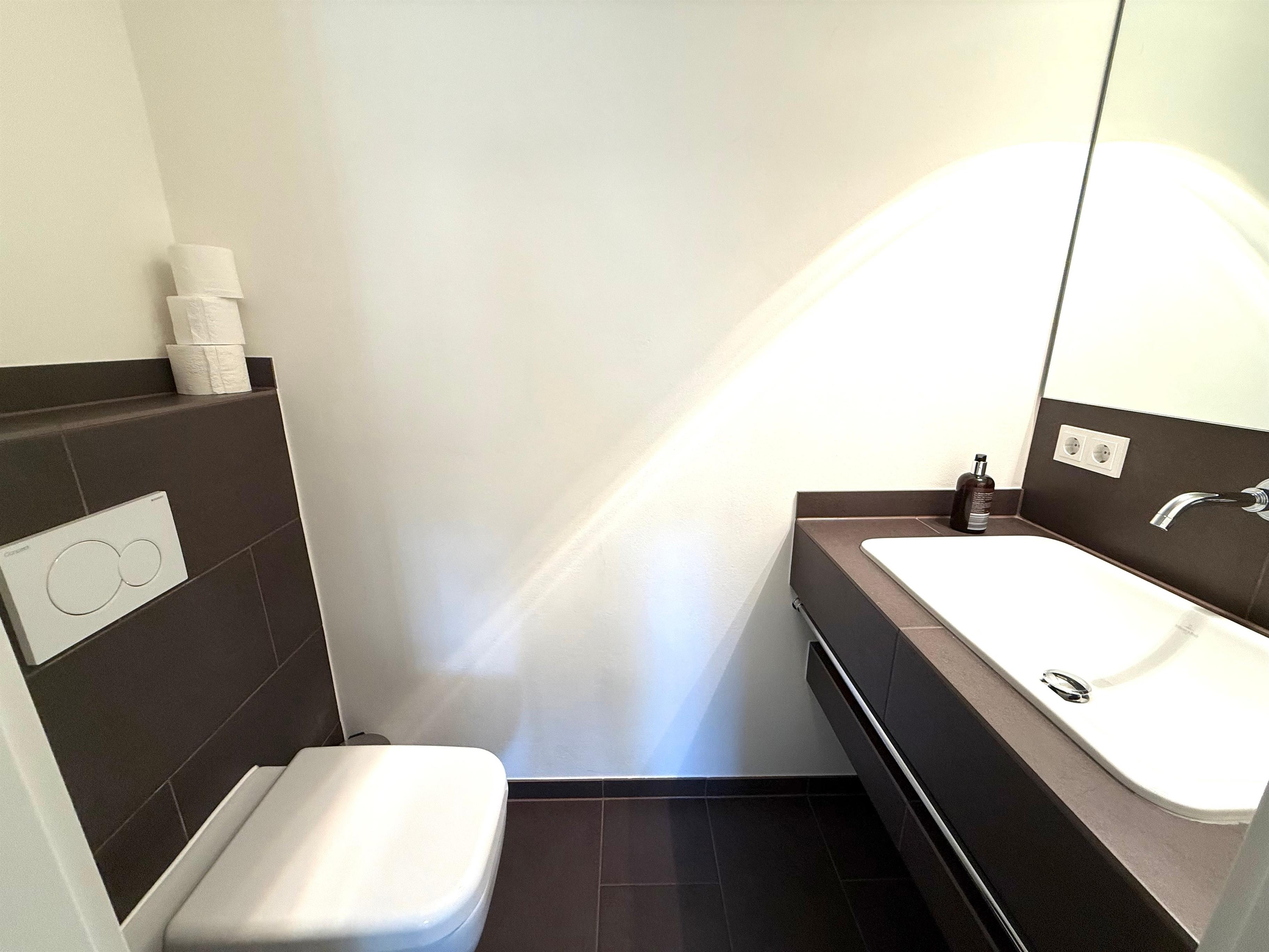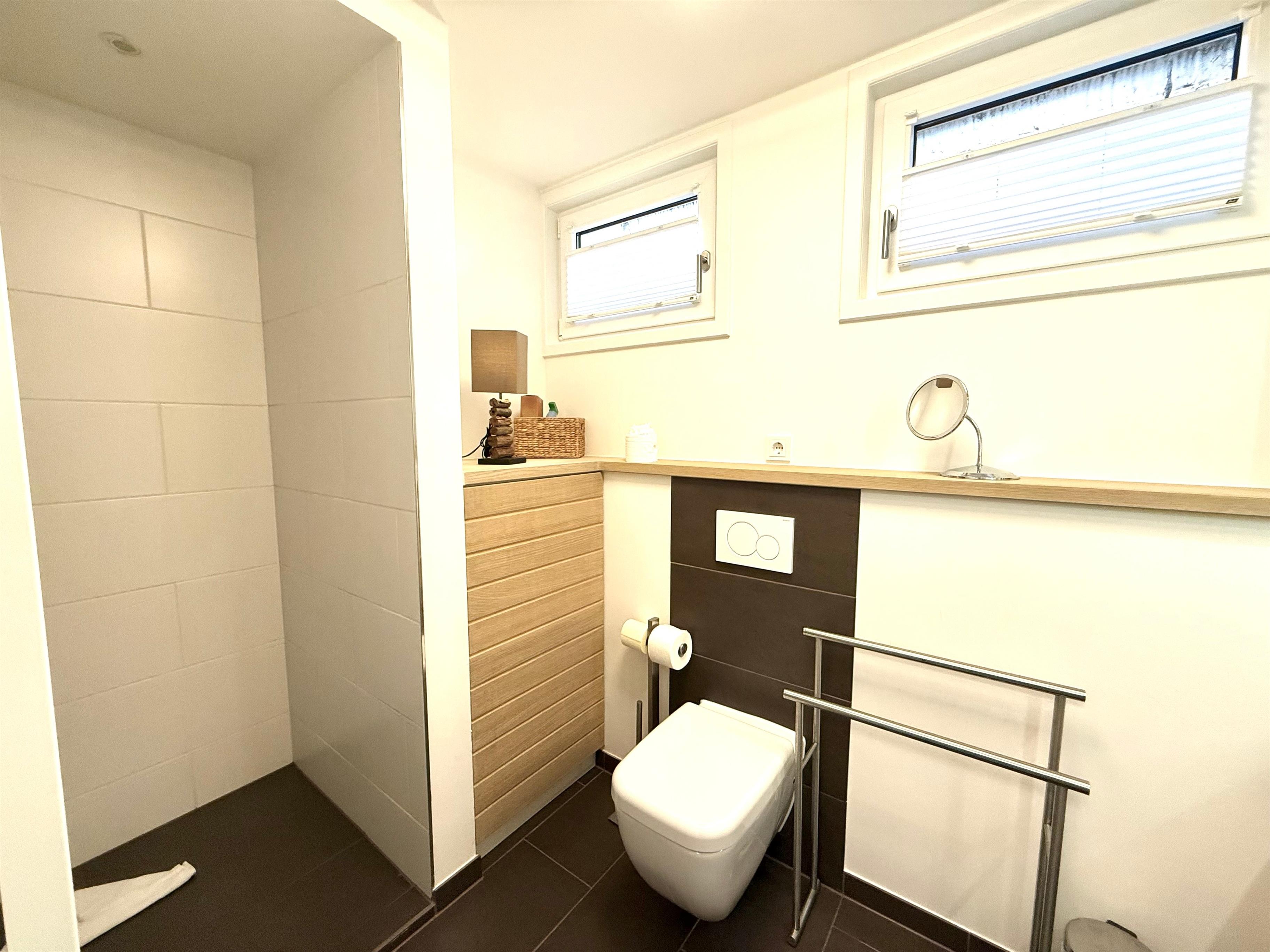 Schlafzimmer und Badezimmer befinden sich im Souterrain, wa svor allem im Sommer ein angenehmes kühles Raumklima bietet.