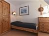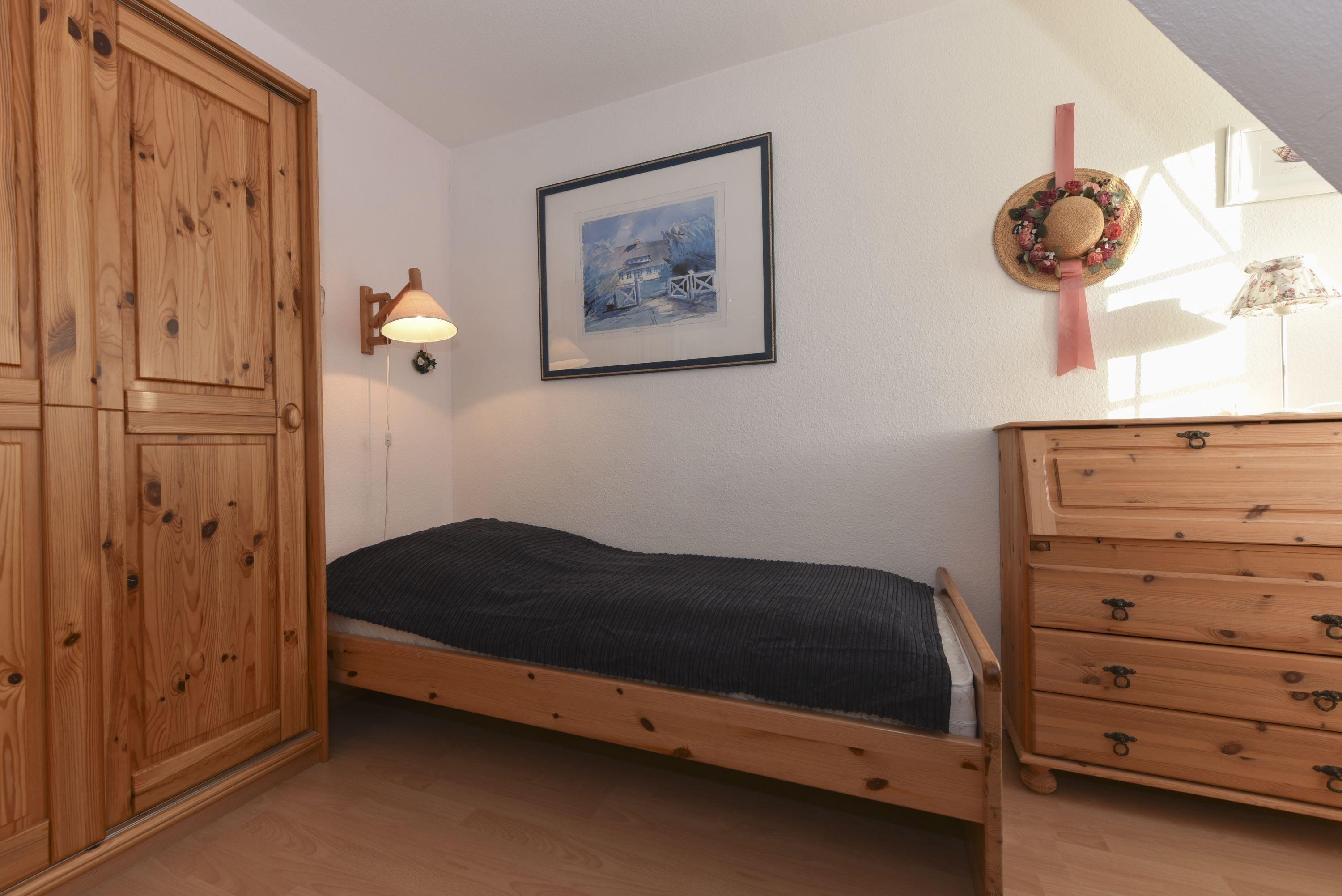 Eine weitere Schlafmöglichkeit bietet ein Einzelbett, das charmant in einer Zimmernische integriert ist.