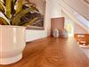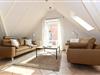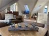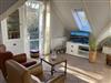 Die obere Etage beeindruckt mit einer offenen und hellen Architektur. Der großzügige Wohnbereich bietet saisonabhängig einen Blick auf die Nordsee und führt zu den beiden Balkonen, die zum Entspannen einladen. Der Wohnbereich teilt sich in zwei gemütliche Zonen: eine mit Ledersofas, ideal zum Entspannen oder für ein Nickerchen, und eine weitere mit bequemen Stühlen, um TV zu schauen oder ein gutes Buch zu lesen. Die Bose-Soundtouch-Anlage sorgt für musikalische Untermalung und macht den Aufenthalt noch angenehmer.