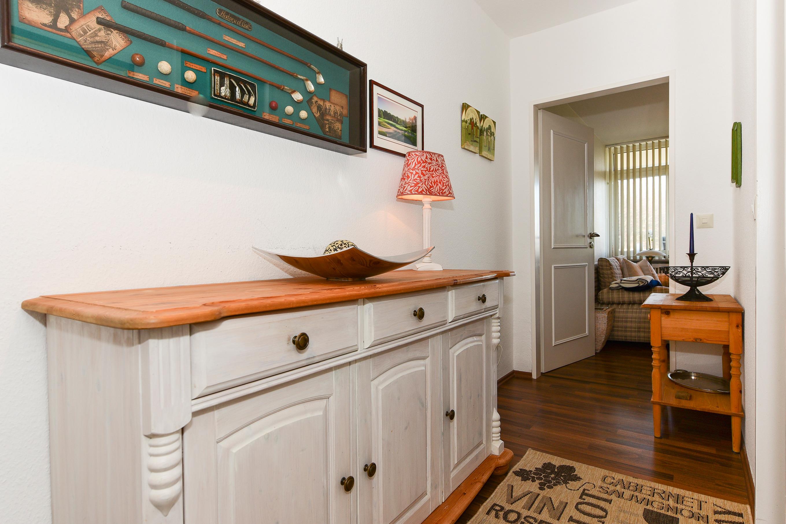 Die Wohnung befindet sich in ruhiger Lage, nur wenige Schritte vom Strand entfernt, und überzeugt durch helle Möbel und dunkles Laminat, die für eine gemütliche Atmosphäre sorgen. Im Wohnzimmer können Sie sich auf modernen Komfort freuen: Ein Flachbildschirm und ein DVD-Player sorgen für Unterhaltung, und das Sofa lässt sich mit wenigen Handgriffen in eine zusätzliche Schlafgelegenheit verwandeln. Der Essbereich für drei Personen fügt sich harmonisch in den Raum ein. Vom Wohnzimmer aus gelangen Sie direkt auf den Balkon, von dem aus Sie den Blick auf die Nordsee genießen können.