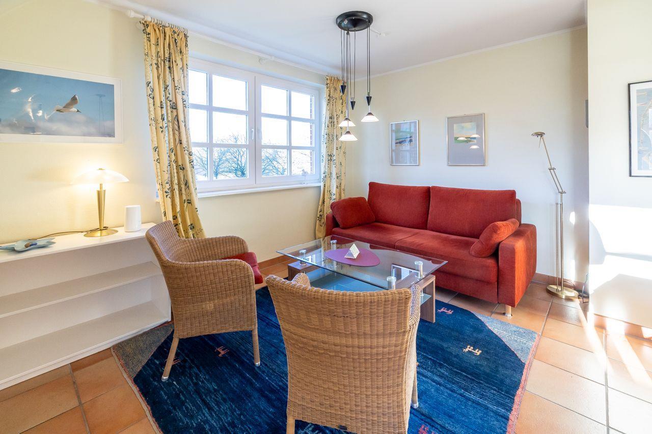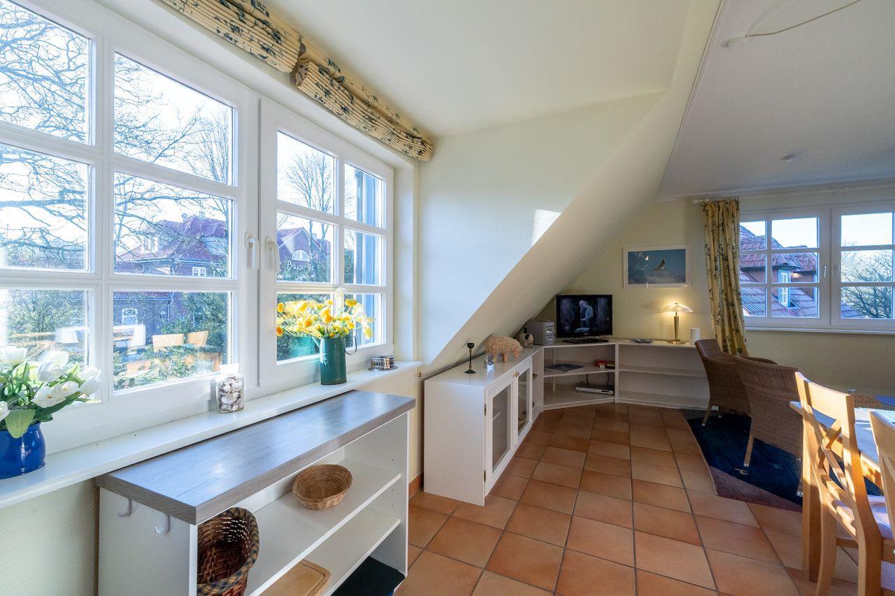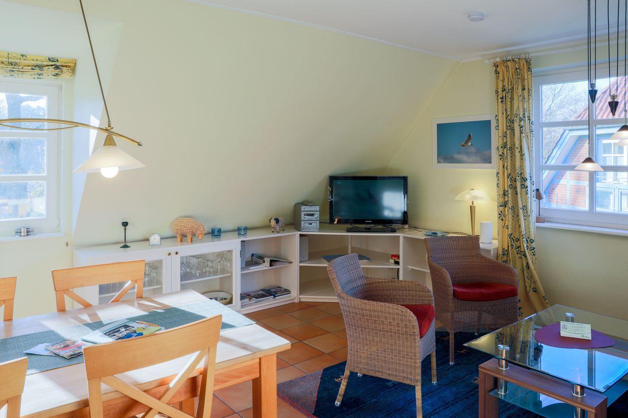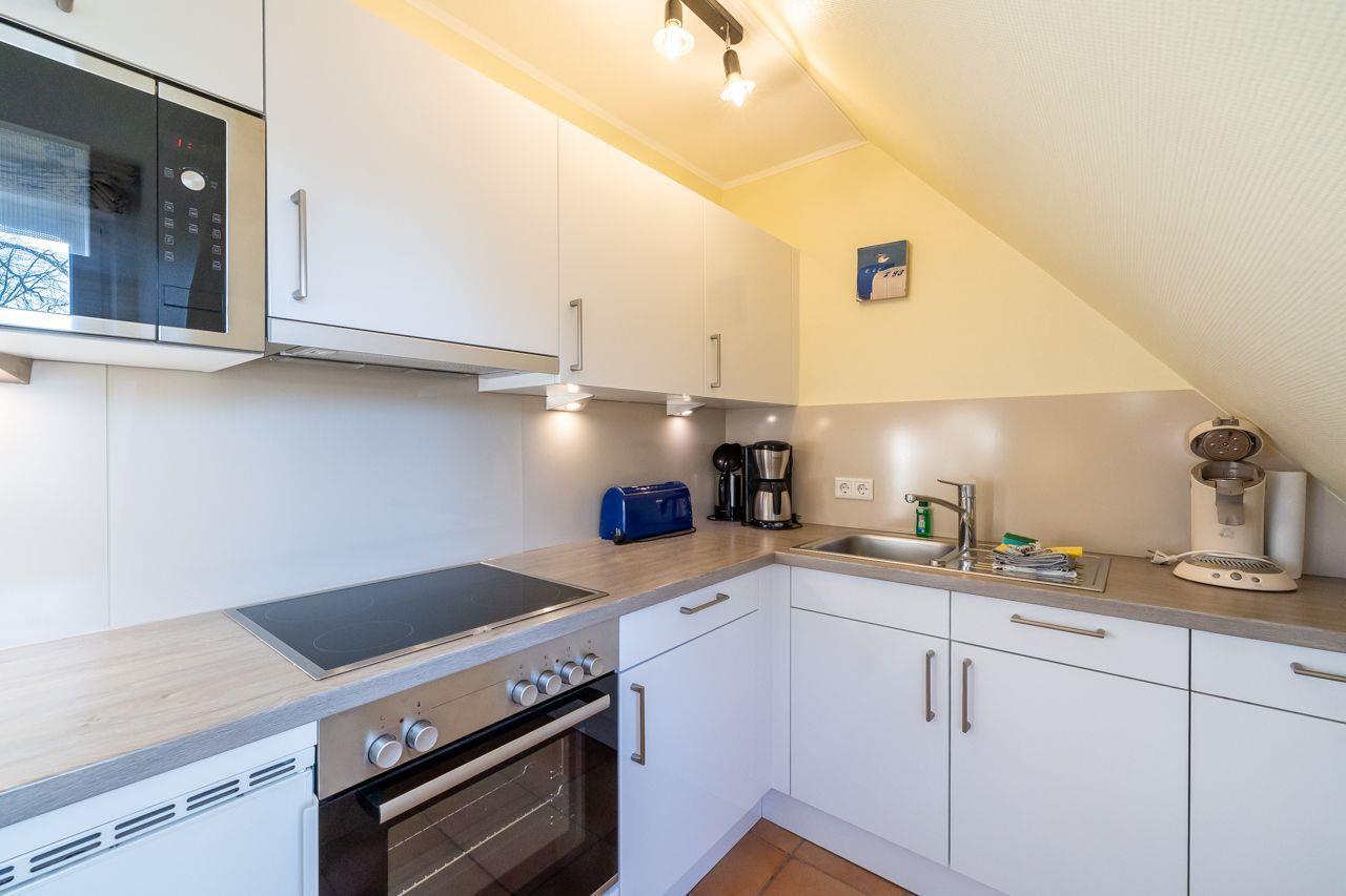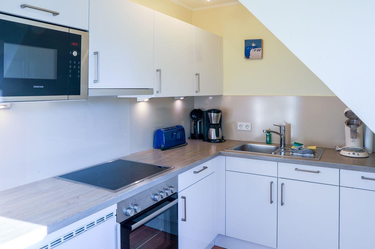 Der Wohnbereich beeindruckt mit einer großen Essecke, einer gemütlichen Sofaecke, SAT-TV und einem CD-/DVD-Player. Hier können Sie entspannte Stunden verbringen und gemütliche Abende genießen. Die neue Küche ist bestens ausgestattet und macht das Kochen zum Vergnügen. Mit einer Geschirrspülmaschine, einer Filter-Kaffeemaschine, einer Kapsel-Kaffeemaschine, einem Toaster, einem Wasserkocher, einem Umluftherd mit Cerankochfeld, einer Mikrowelle und einem Kühlschrank mit Gefrierfach steht Ihnen alles zur Verfügung, um kulinarische Köstlichkeiten zuzubereiten.