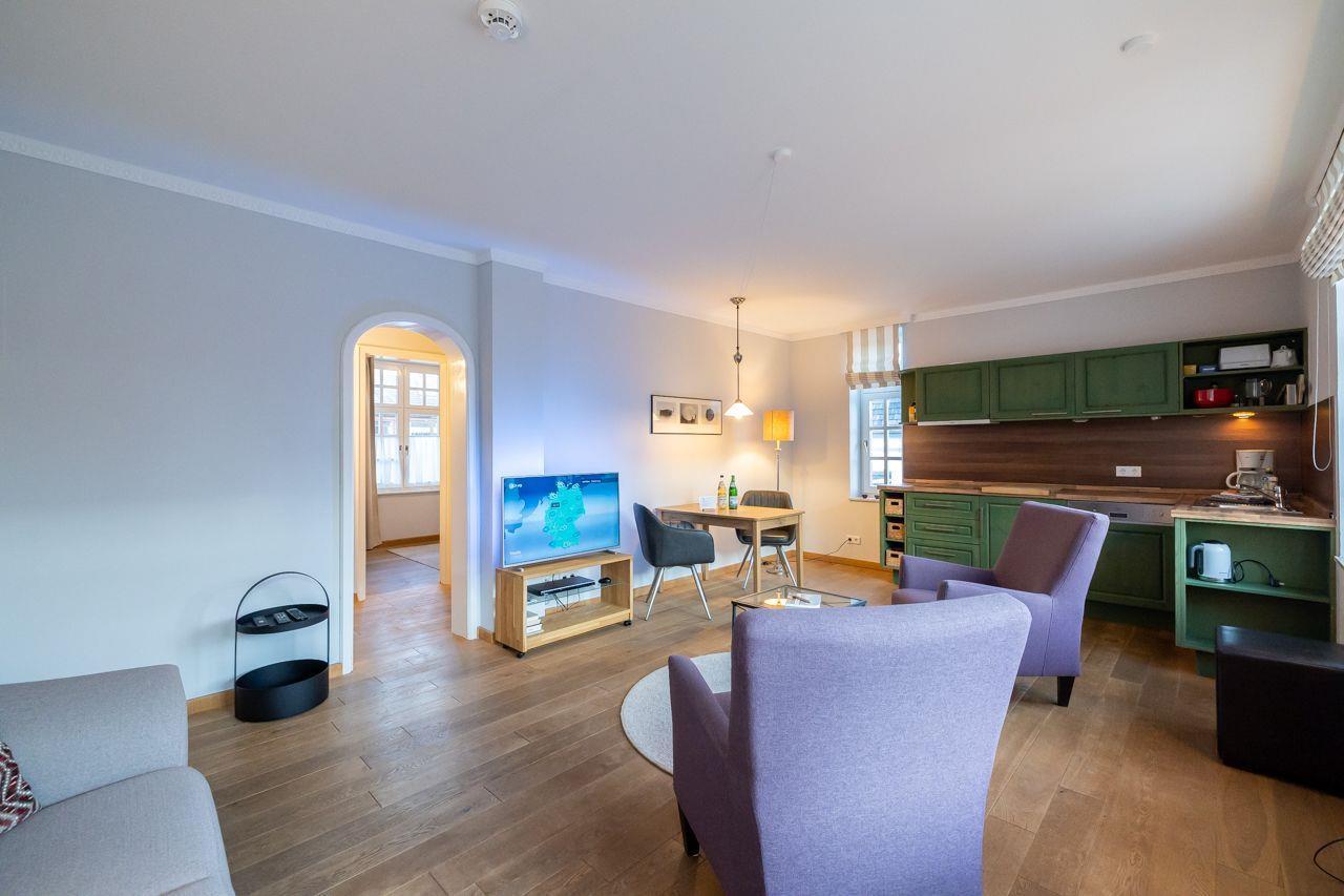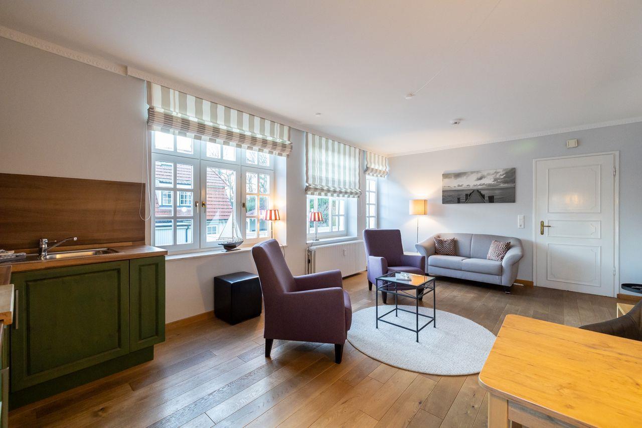Willkommen in der lichtdurchfluteten und gemütlichen 2-Zimmer Wohnung in der wunderschönen Villa Friedericia. Hier erwartet Sie auf großzügigen 50 Quadratmetern ein komfortables Zuhause für Ihren erholsamen Urlaub. Die Wohnung bietet Platz für bis zu 2 Personen und verspricht ein einladendes Ambiente, in dem Sie sich sofort wohlfühlen werden.