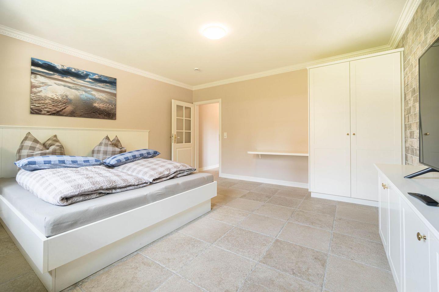 Die Ferienwohnung 1 erstreckt sich über das gesamte Erdgeschoss und bietet durch seine zwei Schlafzimmer ausreichend Platz für bis zu vier Personen zuzüglich einer Kleinkinderaufbettung.