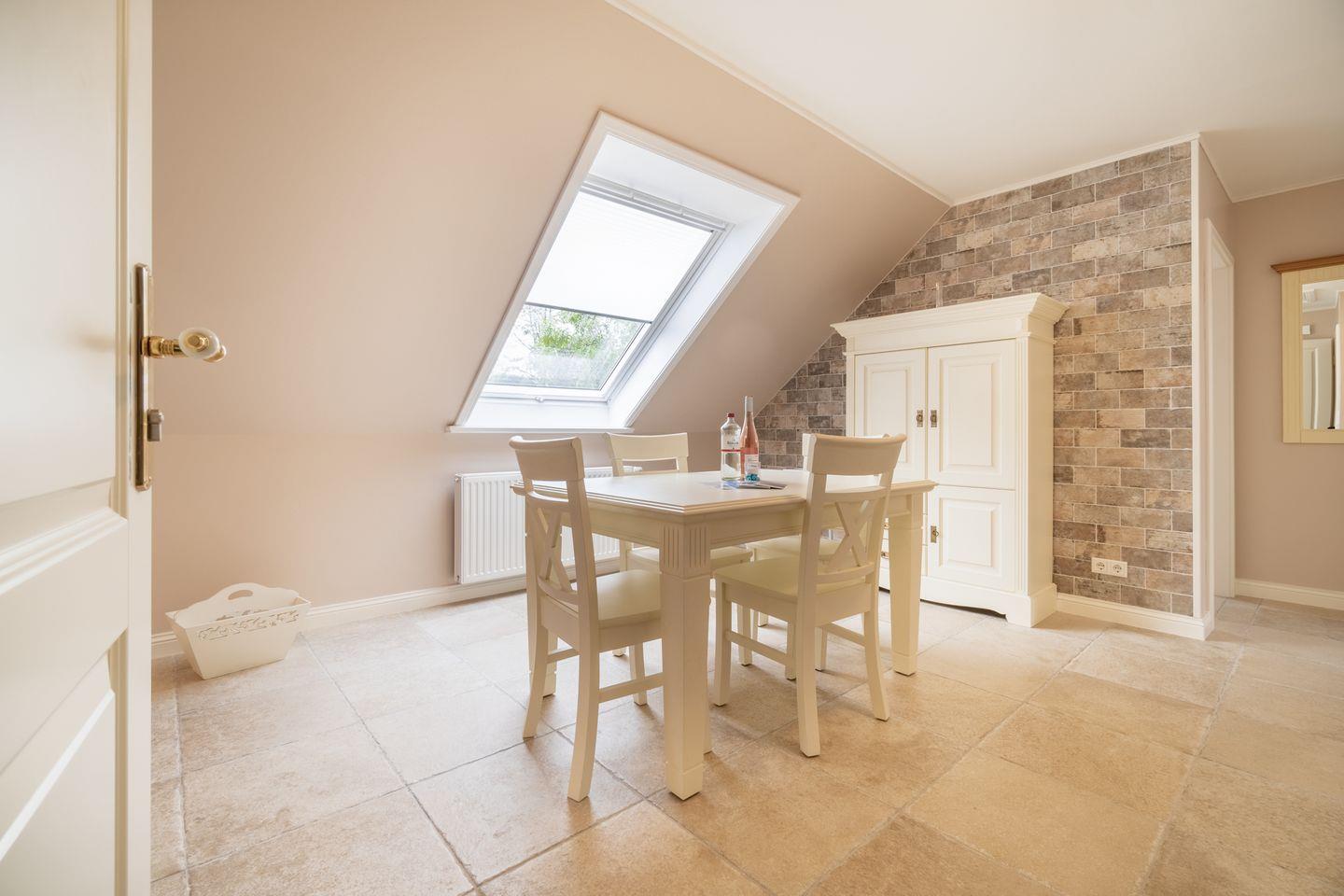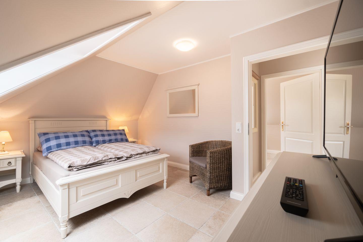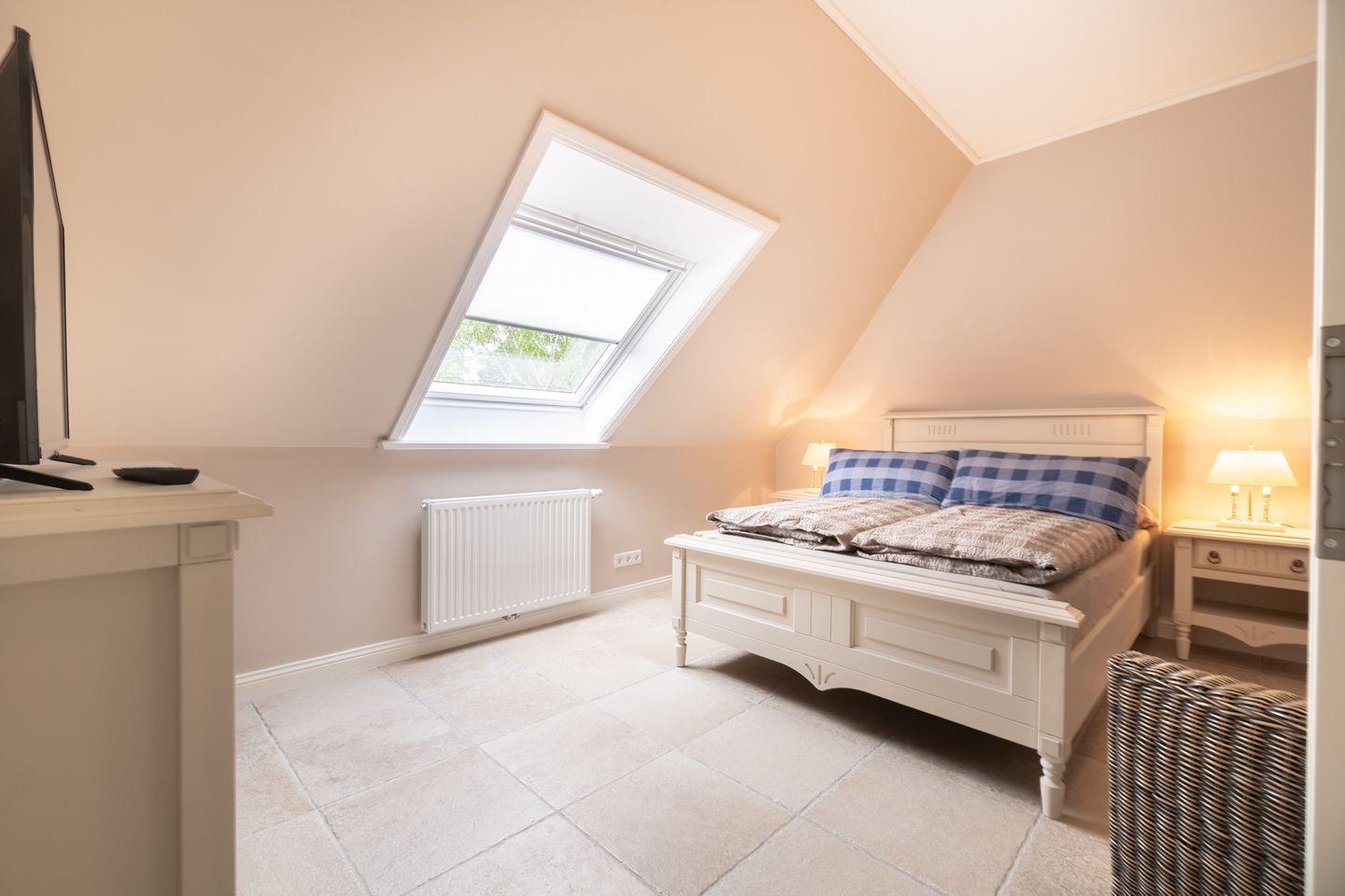 Die Ferienwohnung 2 erstreckt sich über das gesamte Obergeschoss und bietet durch seine zwei Schlafzimmer ausreichend Platz für bis zu vier Personen zuzüglich einer Kleinkinderaufbettung.