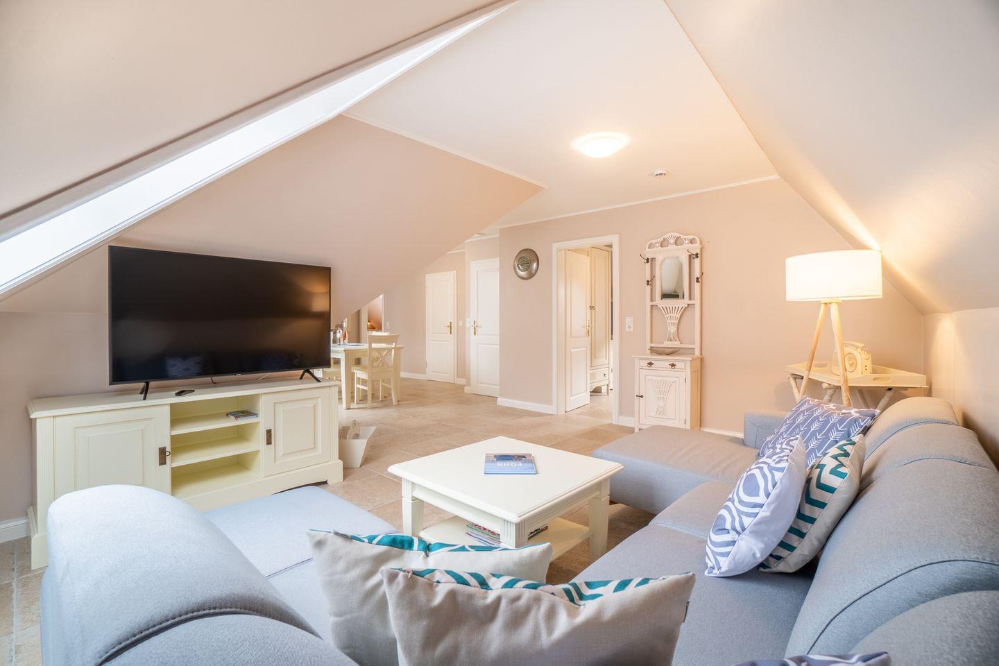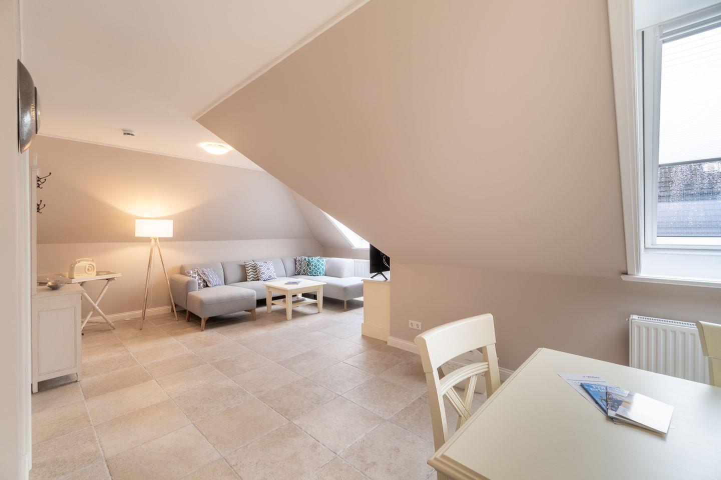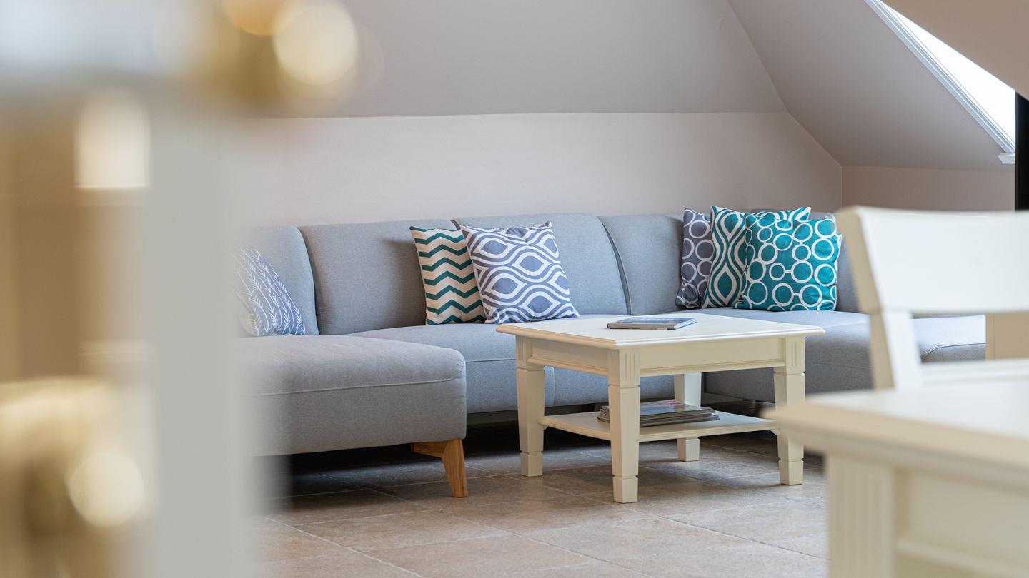 Die Ferienwohnung 2 erstreckt sich über das gesamte Obergeschoss und bietet durch seine zwei Schlafzimmer ausreichend Platz für bis zu vier Personen zuzüglich einer Kleinkinderaufbettung.