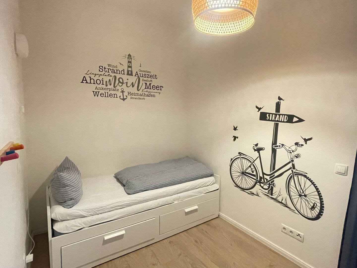 Die Wohnung verfügt über zwei Schlafzimmer, eines mit einem bequemen Doppelbett (180*200) und das andere mit einem Tandembett (2*80*200). Der Flachbildfernseher und der Internetzugang sorgen dafür, dass Sie auch während Ihres Urlaubs immer auf dem neuesten Stand bleiben.