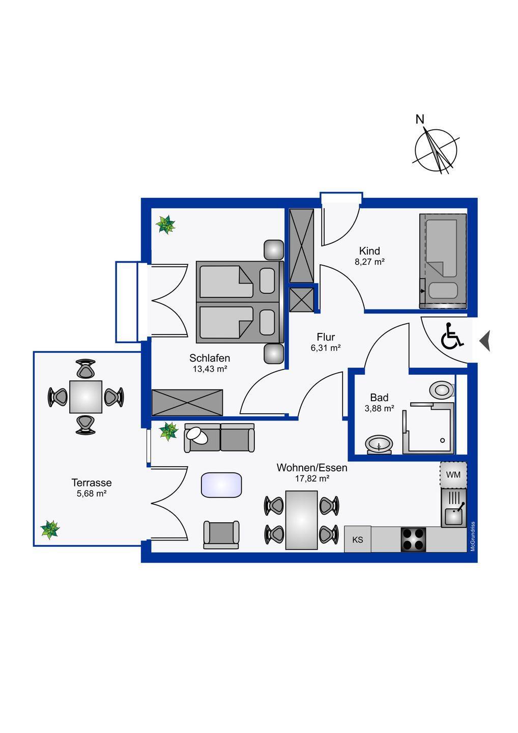 Die barrierearme Ferienwohnung Ehm befindet sich ebenerdig in einem modernen Gebäudekomplex auf einem 1,03h großen, grünen Gelände und lädt zu erholsamen Urlauben ein – perfekt für Paare oder kleine Familien. Sie ist liebevoll skandinavisch eingerichtet und bietet auf 55 m² Platz für bis zu 4 Pers. plus Baby. Kurze Wege zum Strand, zur Promenade und zu Restaurants machen sie zur idealen Basis für entspannte Tage. Die gemütliche Terrasse mit kleinem Garten ist schön von einer Hecke eingefriedet.