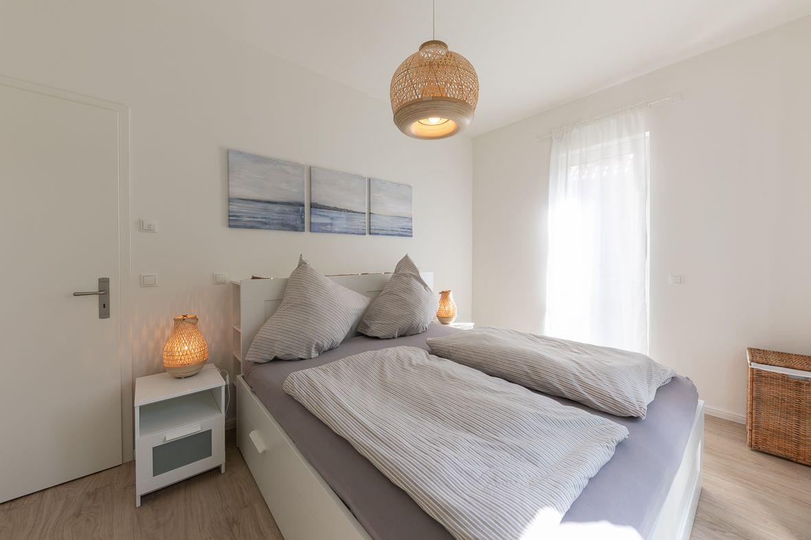 Die Wohnung verfügt über einen modernen Eingangsbereich im westlichen Neubau, der direkt in die gut ausgestattete Küche mit Ceranfeld, Backofen und Kaffeemaschine führt. Der offene Wohn- und Essbereich ist geschmackvoll eingerichtet und lädt zum Entspannen ein. Natürlich darf der Flachbildfernseher und der Internetzugang nicht fehlen, damit Sie auch im Urlaub auf nichts verzichten müssen. Zum Schlafen stehen Ihnen ein Schlafzimmer mit Doppelbett (180*200cm) sowie ein Schlafzimmer mit einem Tandembett, das zu einer Liegefläche mit 160*200cm erweitert werden kann, zur Verfügung. Alle Zimmer sind gemütlich und modern eingerichtet und bieten genügend Platz. Das helle und moderne Duschbad ist mit einer ebenerdigen Dusche ausgestattet und lässt keine Wünsche offen.
