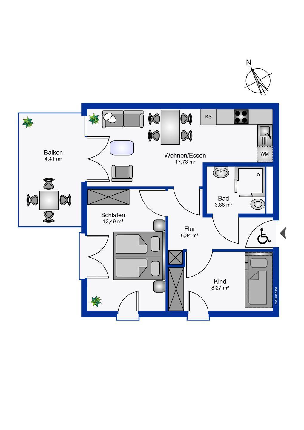 Die barrierearme Ferienwohnung Fenja befindet sich in einem modernen Gebäudekomplex auf einem 1,03h großen, grünen Gelände und lädt zu erholsamen Urlauben ein – perfekt für Paare, Freunde oder die kleine Familie. Sie ist liebevoll skandinavisch eingerichtet und bietet auf 55 m² reichlich Platz für bis zu 4 Personen plus Baby. Kurze Wege zum Strand, zur Promenade und zu Restaurants machen sie zur idealen Basis für entspannte Tage. Der gemütliche Balkon lädt zum Verweilen ein.