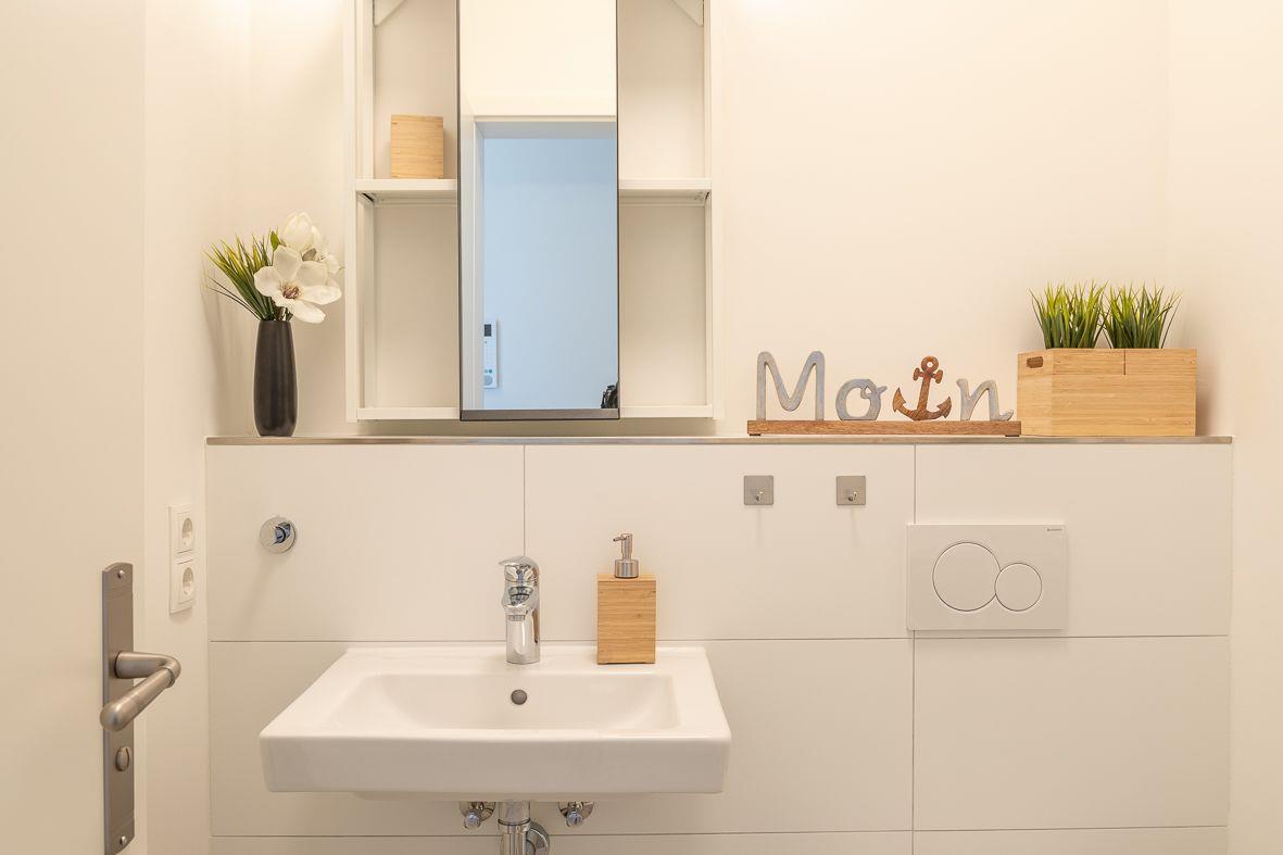Vom Wohn-Ess-Küchenbereich aus haben Sie Zugang zu Ihrem eigenen Balkon, der nach Osten ausgerichtet ist und perfekt zum Frühstücken in der Morgensonne geeignet ist. Auf dem Gelände selbst gibt es zahlreiche Möglichkeiten, um den Urlaub zu genießen. Ein kurzer Spaziergang führt Sie zum 350 m entfernten Strand mit barrierefreiem Zugang, wo Sie die Sonne und das Meer genießen können. Für Abenteuerlustige ist die Föhrer Kartbahn "Föhrring" in der Nähe und auch der Föhrer Flugplatz ist in unmittelbarer Nähe. Wenn Sie Lust auf einen Spaziergang im Wald haben, müssen Sie nur die Straße überqueren. Der Spielplatz "Piratennest" wartet dort schon auf unsere jüngeren Gäste.