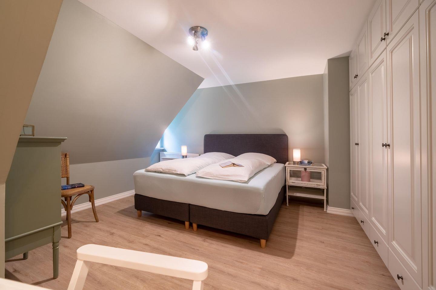 Das reetgedeckte Hausteil Luettliv-Huus II verfügt über 2 Schlafzimmer und 3 Bäder und bietet somit komfortabel Platz für bis zu 4 Personen zuzüglich einer Kleinkinderaufbettung. Auch bis zu 2 Hunde sind herzlich willkommen.