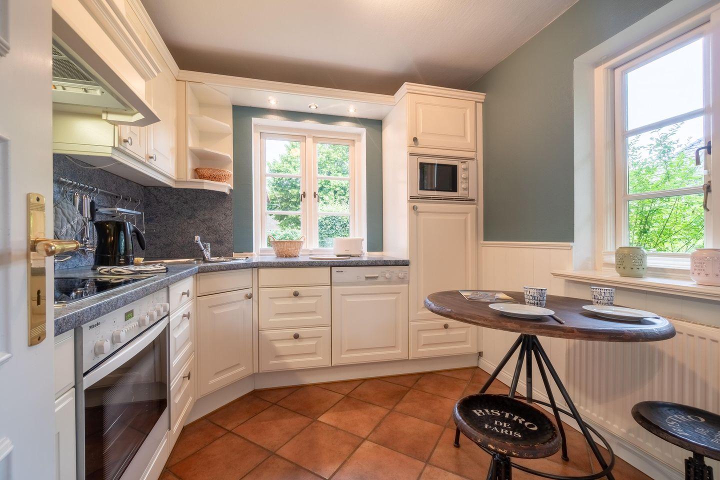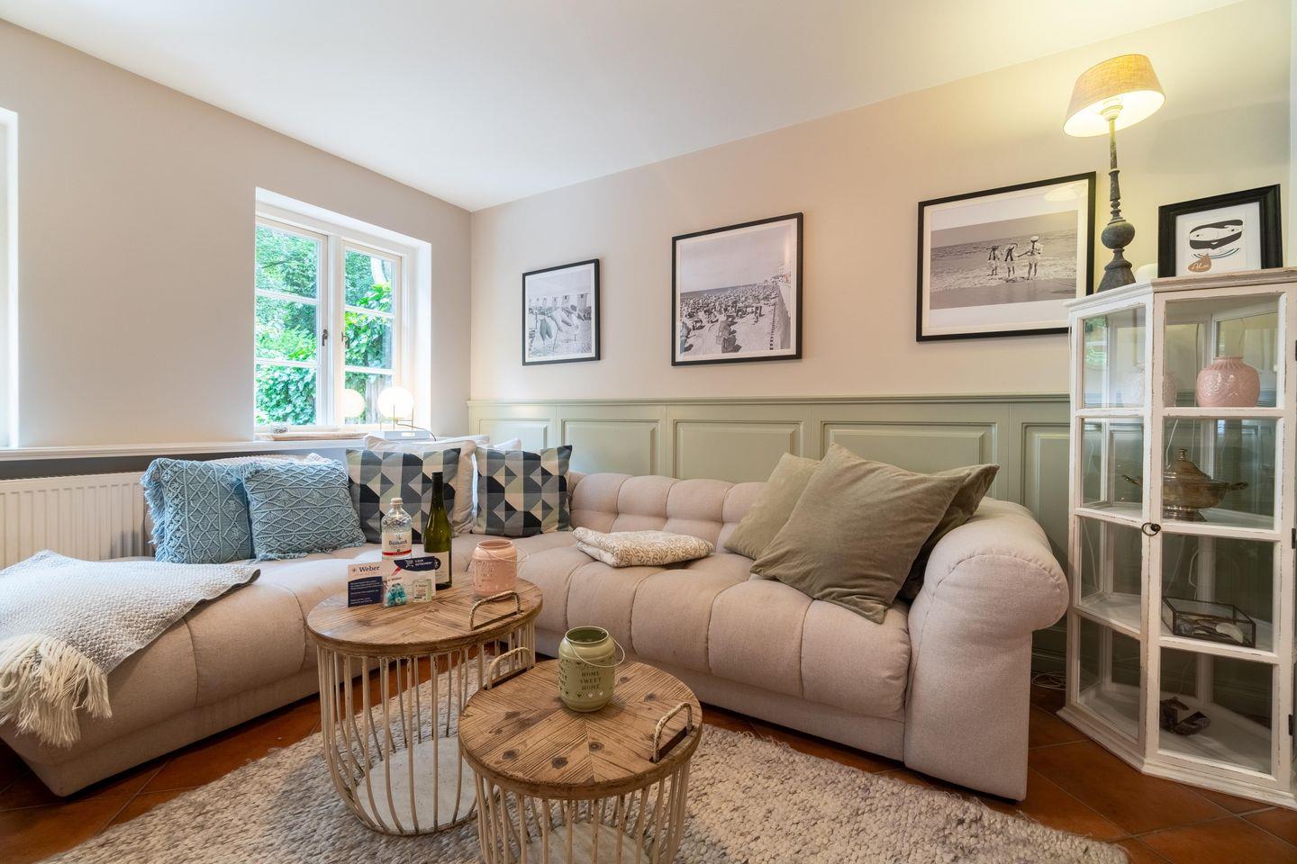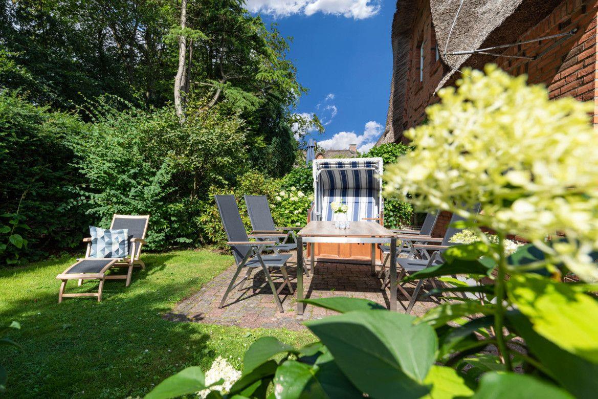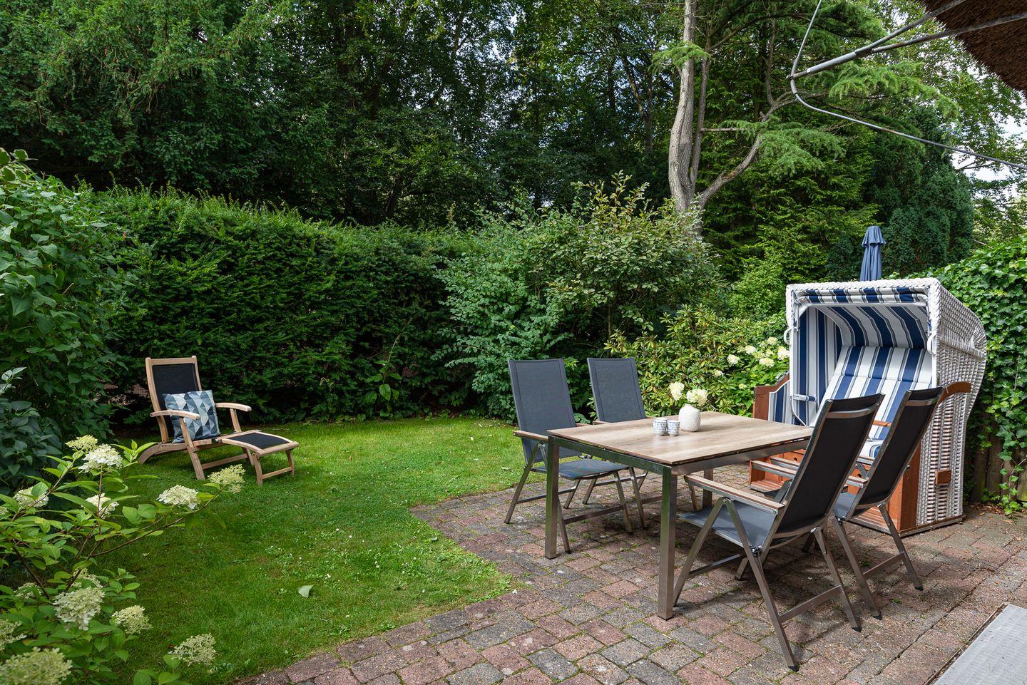 Zu den Highlights der im Jahr 2021 renovierten Ferienunterkunft zählen wir den Original Mylin-Kachelofen, die Südterrasse im Garten und die strandnahe Lage.