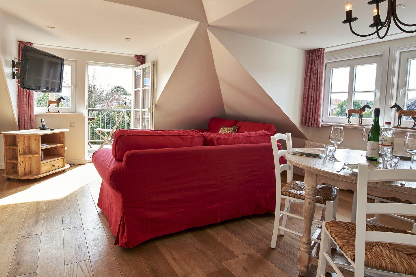 Zu den Highlights der Ferienunterkunft zählen wir u. a. die strandnahe Lage und den hauseigenen Balkon sowie das raffinierte Raumkonzept.