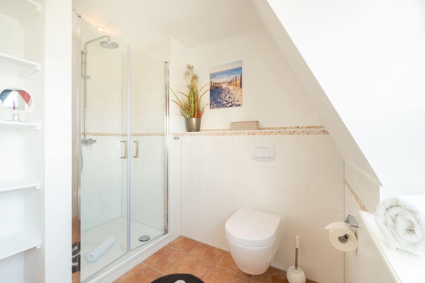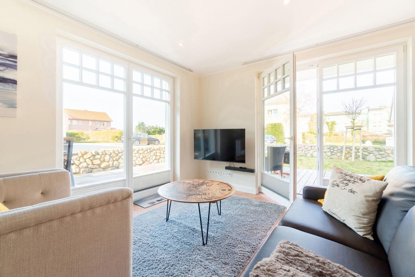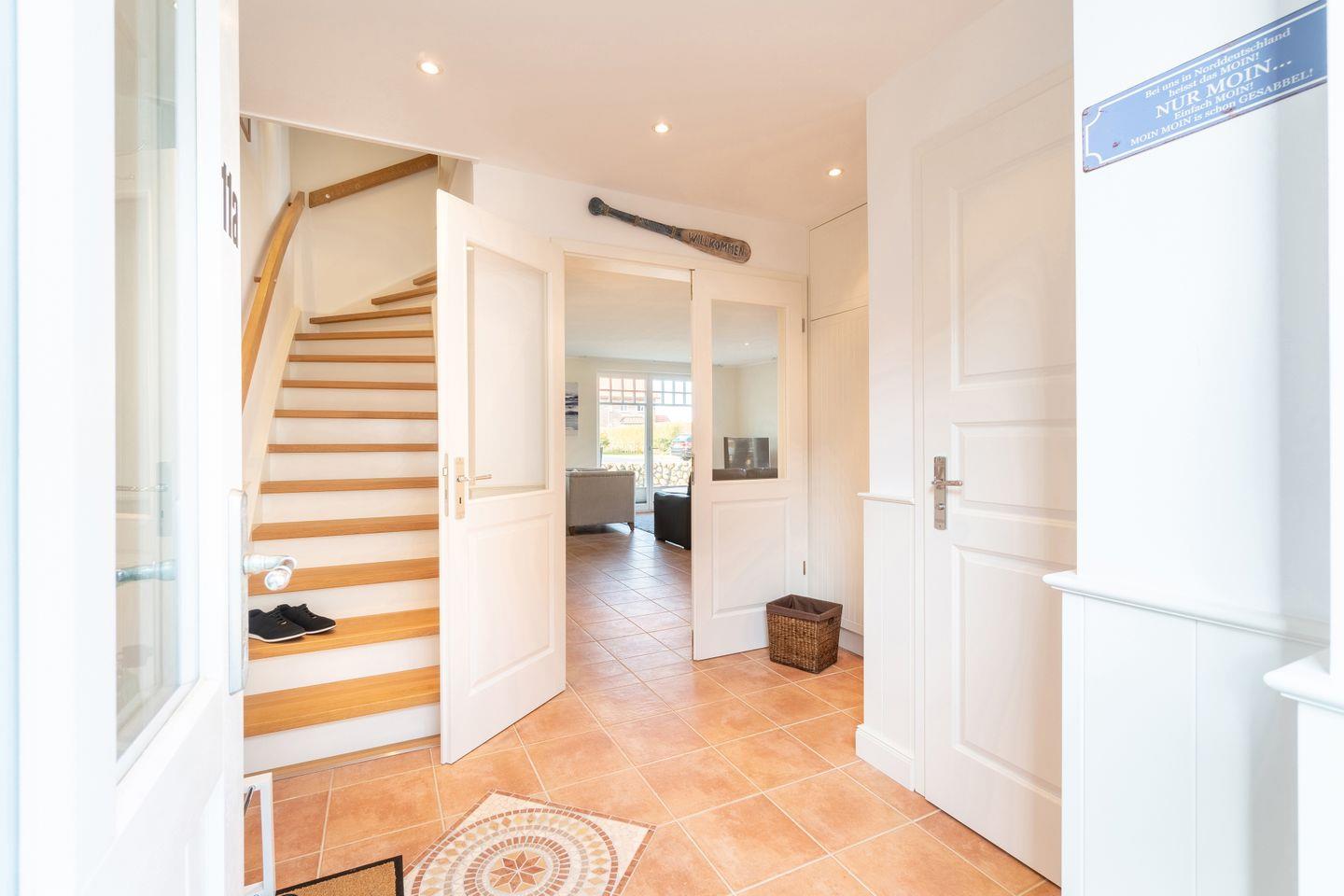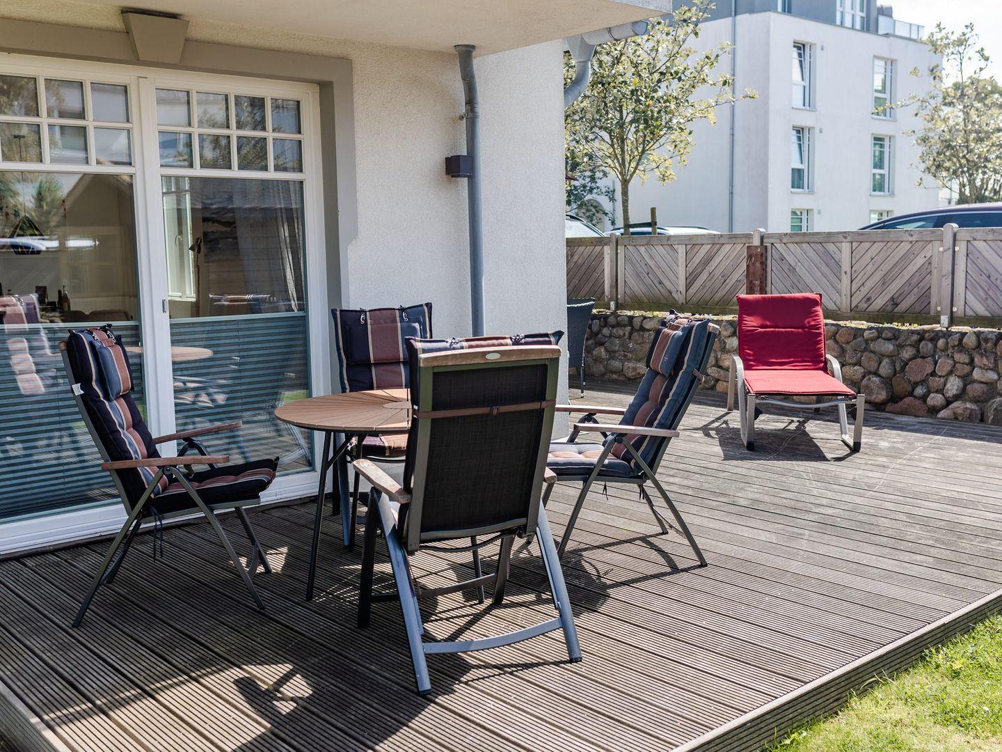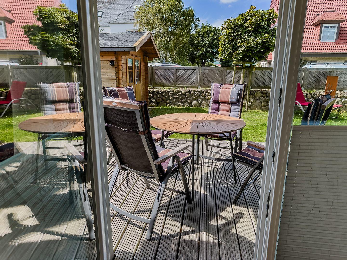 Im Außenbereich befinden sich eine Terrasse mit Strandkorb im Garten, sowie ein PKW-Stellplatz. Zudem steht Ihnen ein Saisonstrandkorb direkt am Strand zur Verfügung, im Strandabschnitt 13-19.