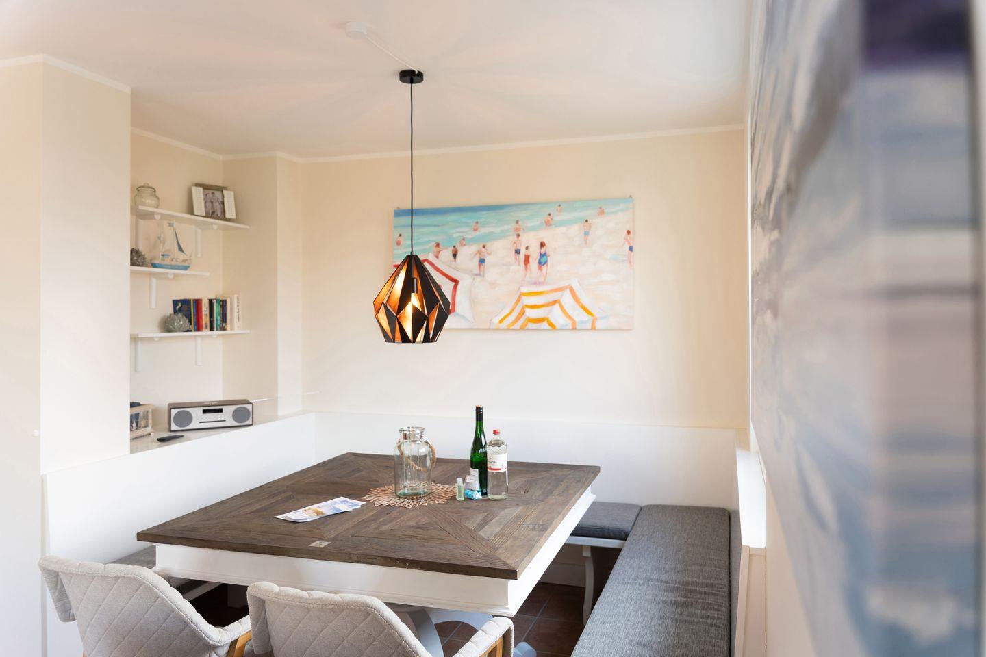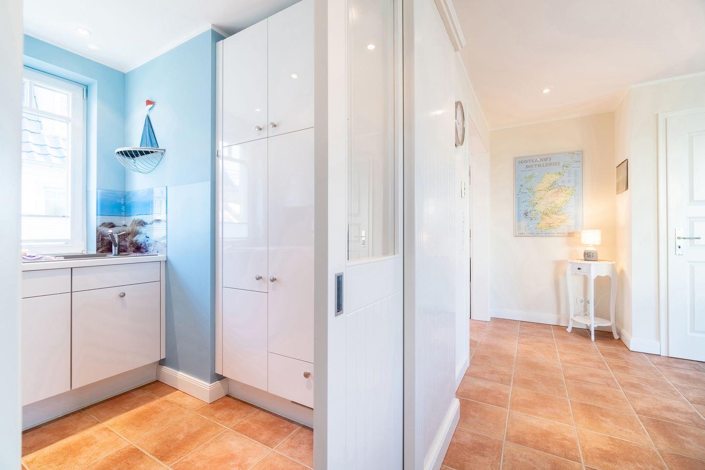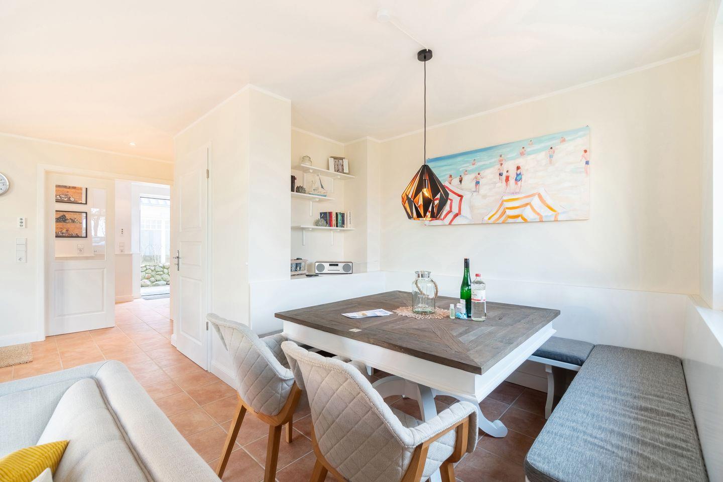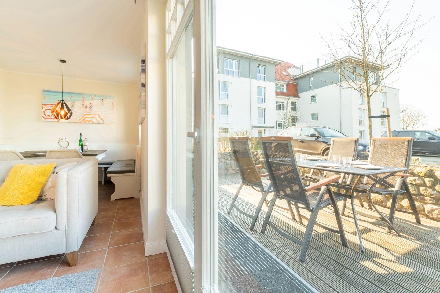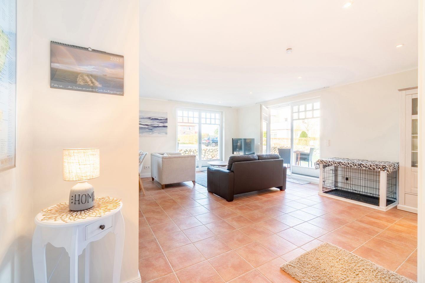 Im Außenbereich befinden sich eine Terrasse mit Strandkorb im Garten, sowie ein PKW-Stellplatz. Zudem steht Ihnen ein Saisonstrandkorb direkt am Strand zur Verfügung, im Strandabschnitt 13-19.