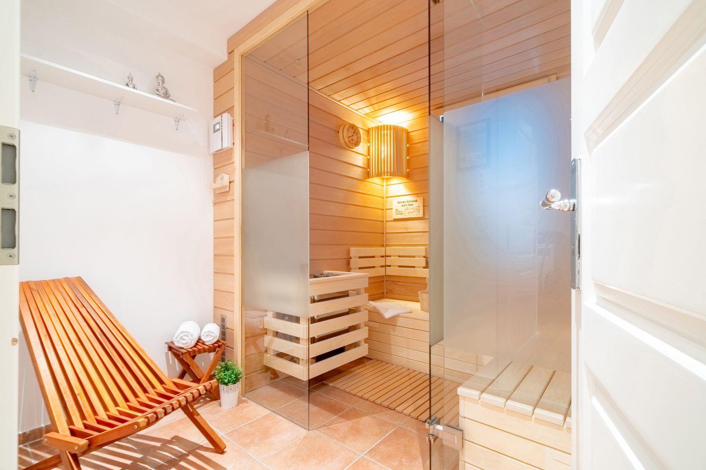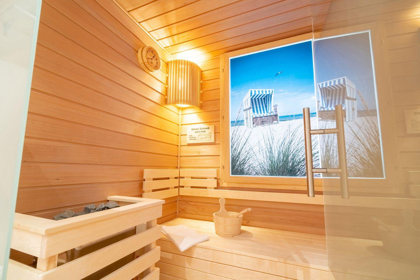 Zu den Highlights der Ferienunterkunft zählen wir u. A. die hauseigene Sauna, die Terrasse, die Schlafzimmer mit eigenem Balkon sowie die strandnahe Lage.