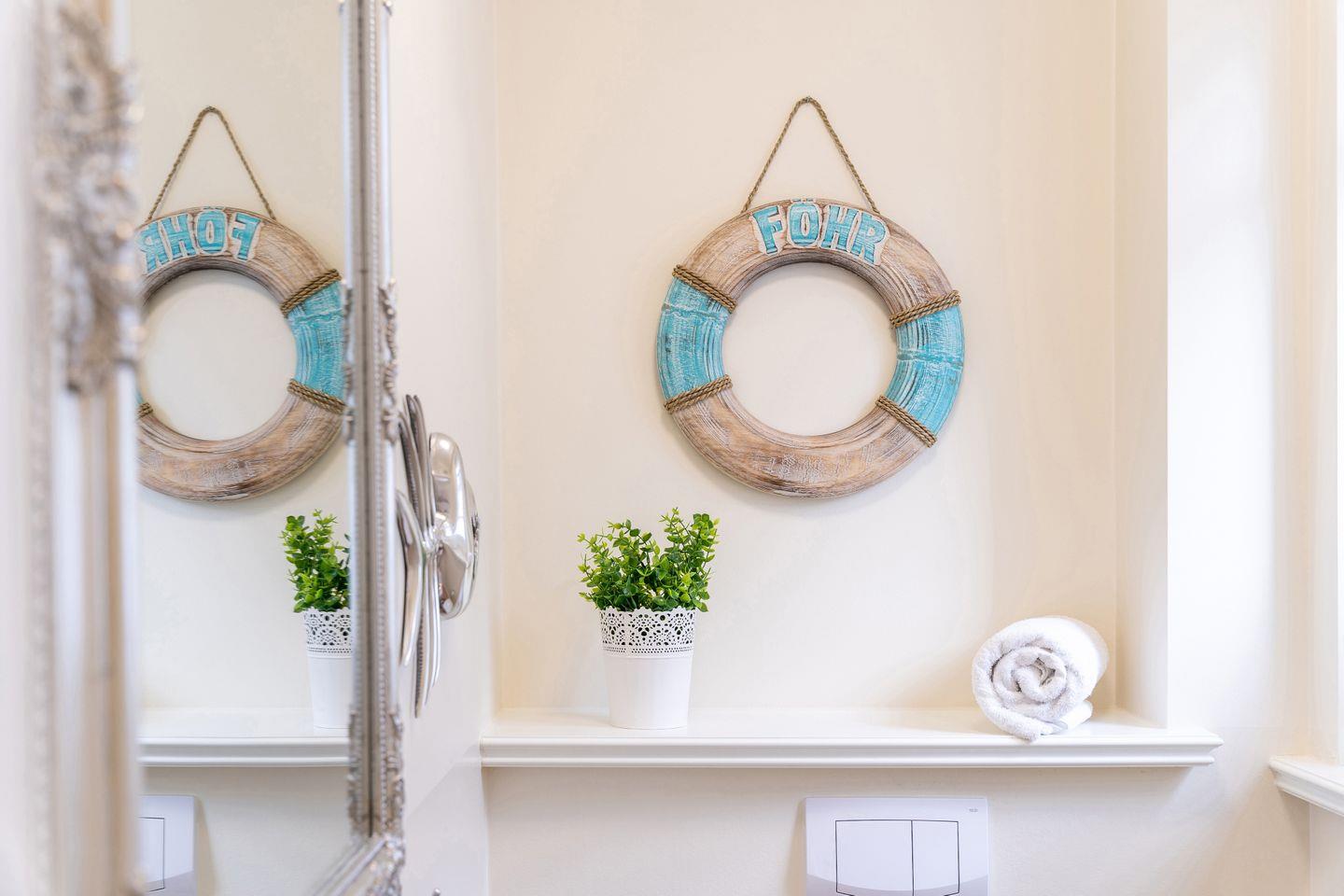 Bei Begrüßung erwartet Sie neben einer Flasche Wein und Wasser ein Präsentkorb im Einkaufswert in Höhe von 75 €, der ausschließlich Produkte der Insel Föhr in Abhängigkeit der Jahreszeiten und Verfügbarkeiten bereithält, individuell für Sie zusammengestellt.