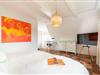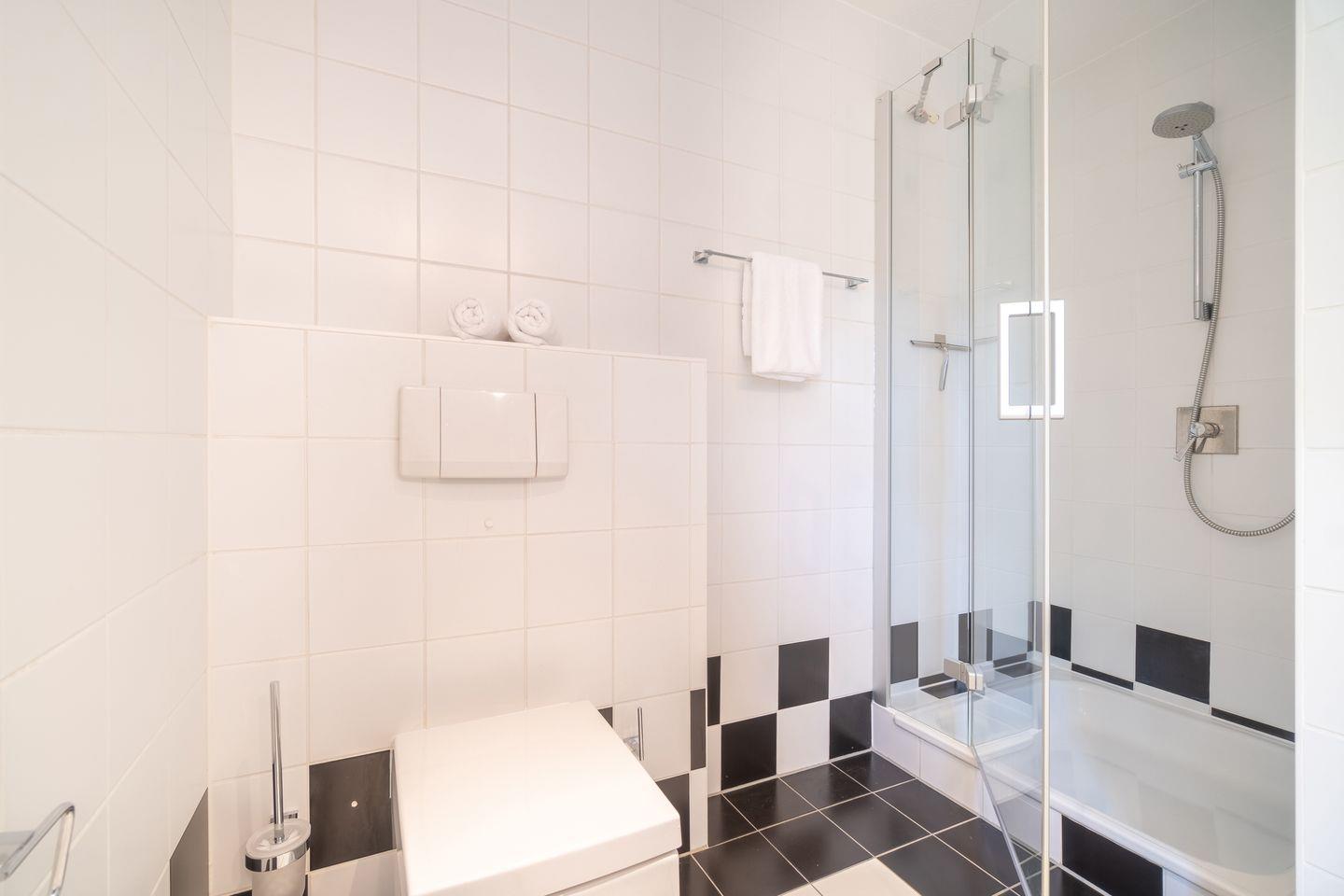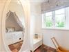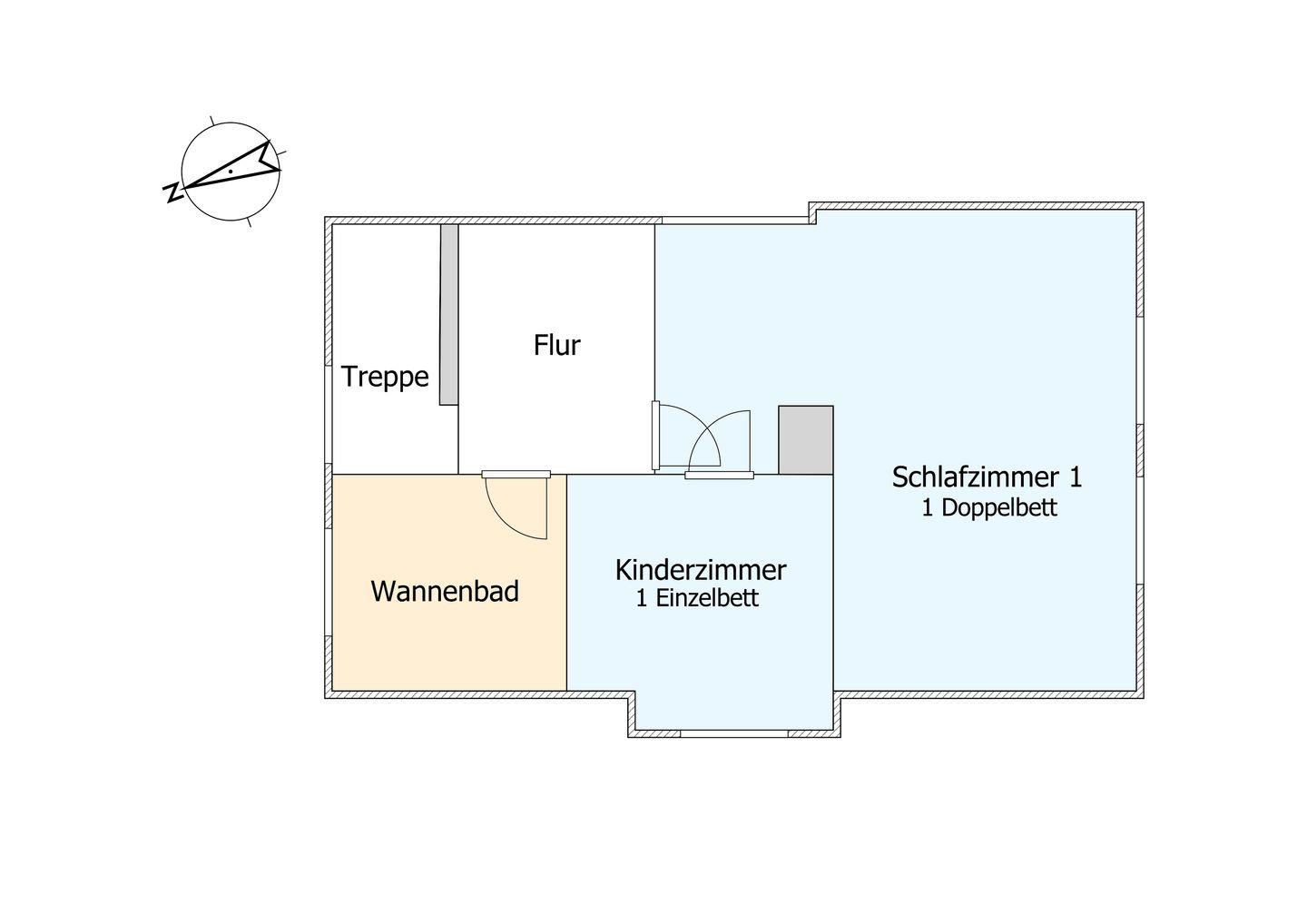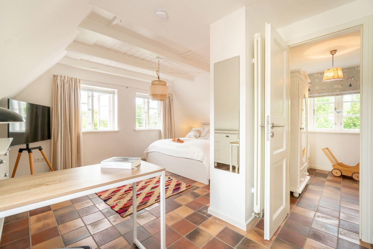 Das Obergeschoss verfügt über ein Doppelbett-Schlafzimmer mit eigenem Fernseher und Arbeitsbereich sowie ein Kinderzimmer mit Alkovenbett, welches über das Doppelbett-Zimmer zu erreichen ist. Zudem befindet sich im Obergeschoss ein weiteres Badezimmer, ausgestattet mit einer Badewanne.