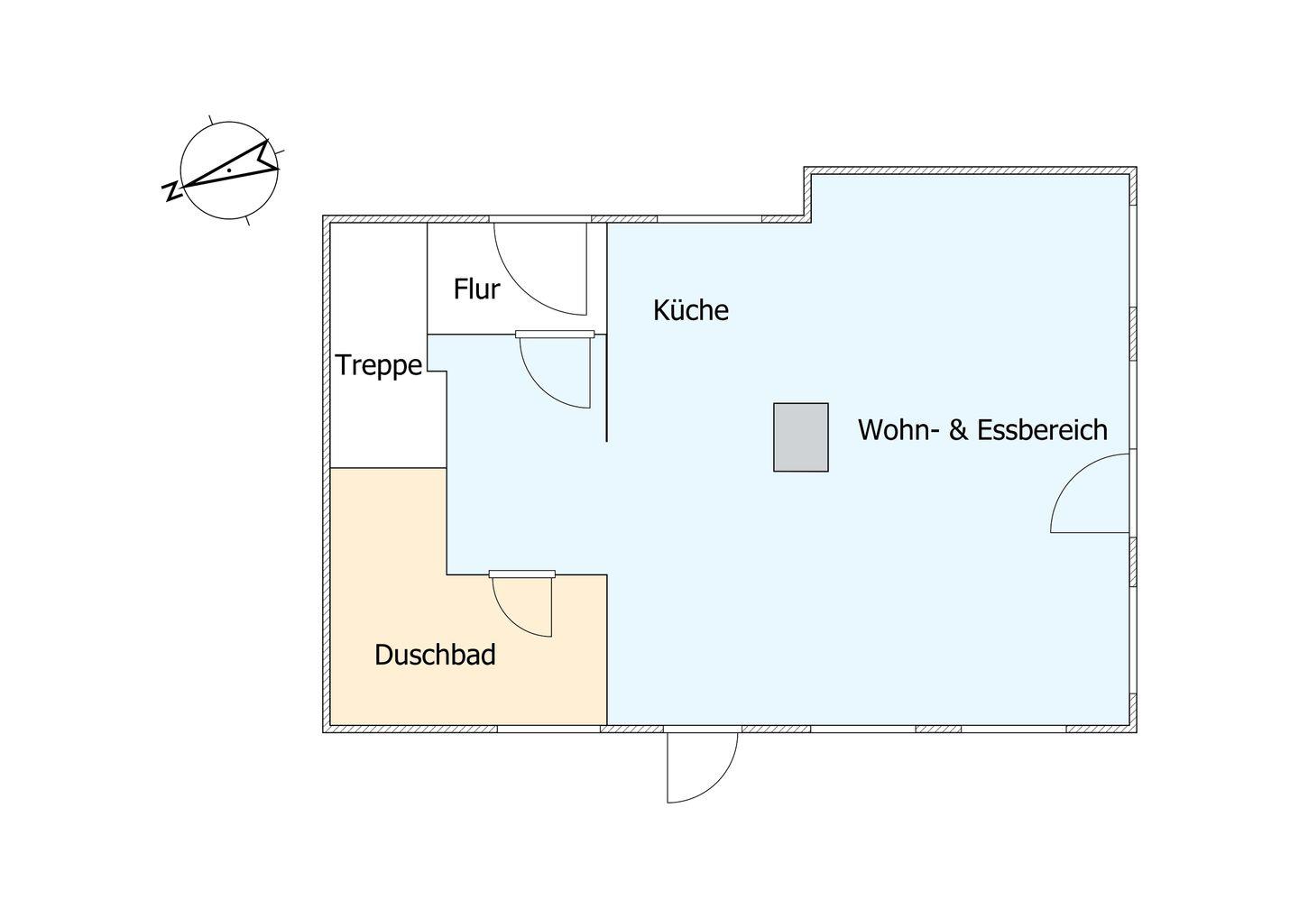 Im Erdgeschoss befinden sich der großzügige Wohn- und Essbereich mit offener Küche sowie ein Duschbad. Über den Wohnbereich haben Sie direkten Zugang auf die Terrasse und in den Garten.