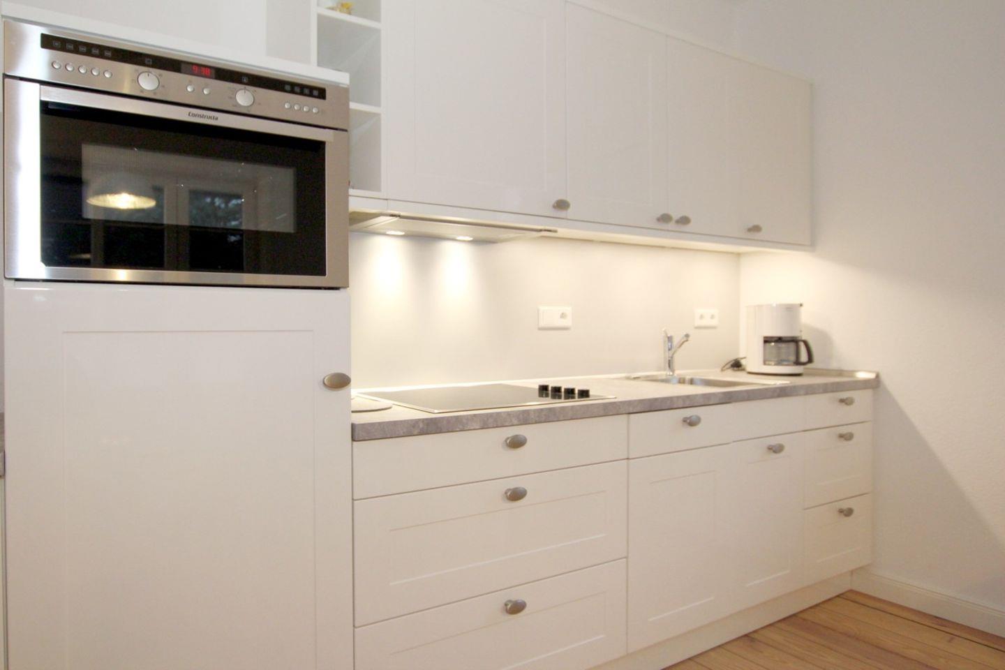 2-Zimmer-Nichtraucherwohnung im Hochparterre mit Südbalkon. WOHNZIMMER mit Couch, 2 Stühle, Esstisch und KÜCHENZEILE. Wohnzimmer, Flur und Schlafzimmer mit hochwertiger Einrichtung. Küchenzeile im Wohnzimmer mit allem Komfort (Backofen-Mikrowellen-Kombinationsgerät). SCHLAFZIMMER: Doppelbett (1,60 x 2 m) und Kleiderschrank. BAD mit Dusche und WC (kein Fenster/Kleinraumentlüfter). KELLER: Münzwaschmaschine und -trockner. Der Garten hinter dem Haus kann mitgenutzt werden. Parkplatz für 4 Wohnungen am Haus und ansonsten an der Straße gegenüber. Einkaufsmöglichkeiten und Strand nur wenige Minuten entfernt. Zum Zentrum und Wellenbad sind es ca. 10 Minuten Fußweg.